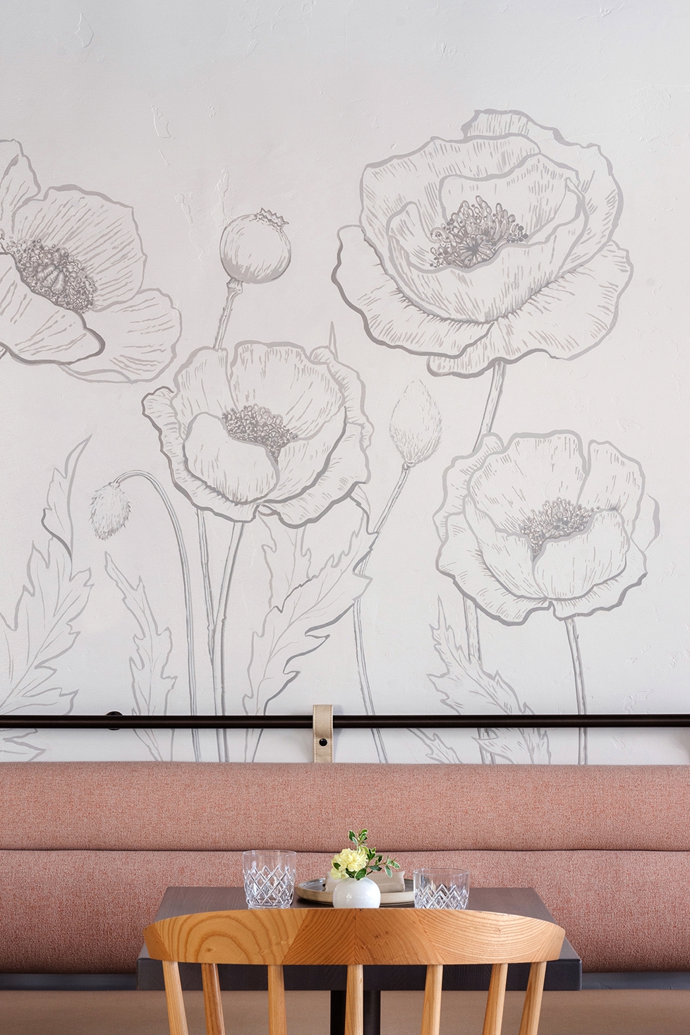To keep the one room space visually interesting the design has been layered. The eye keeps discovering new angles and details as the patrons move through the place.