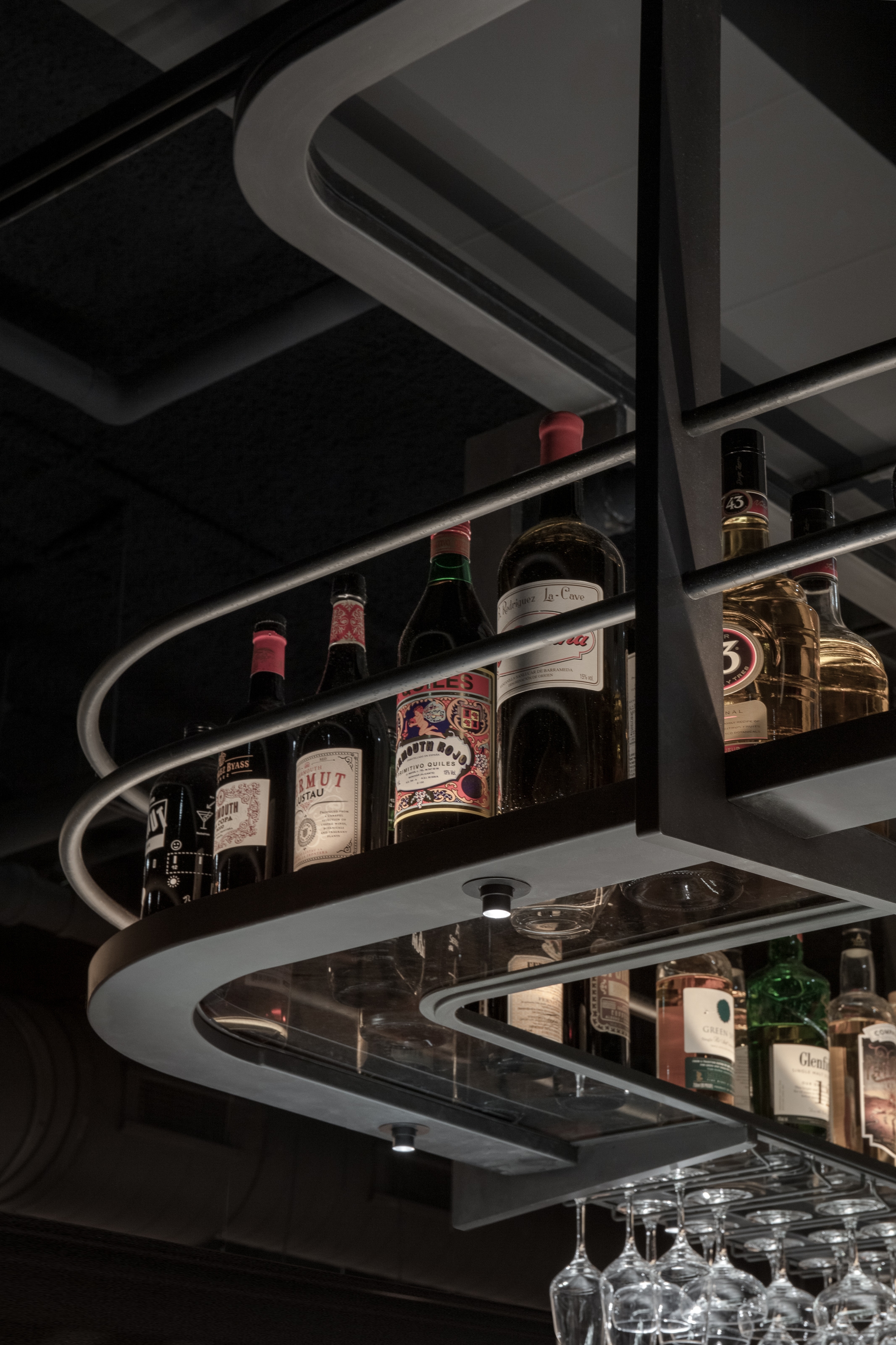 All light fixtures have been custom designed to create a variety of lighting atmospheres but also as a reminder of the eclecticism of Boqueria.