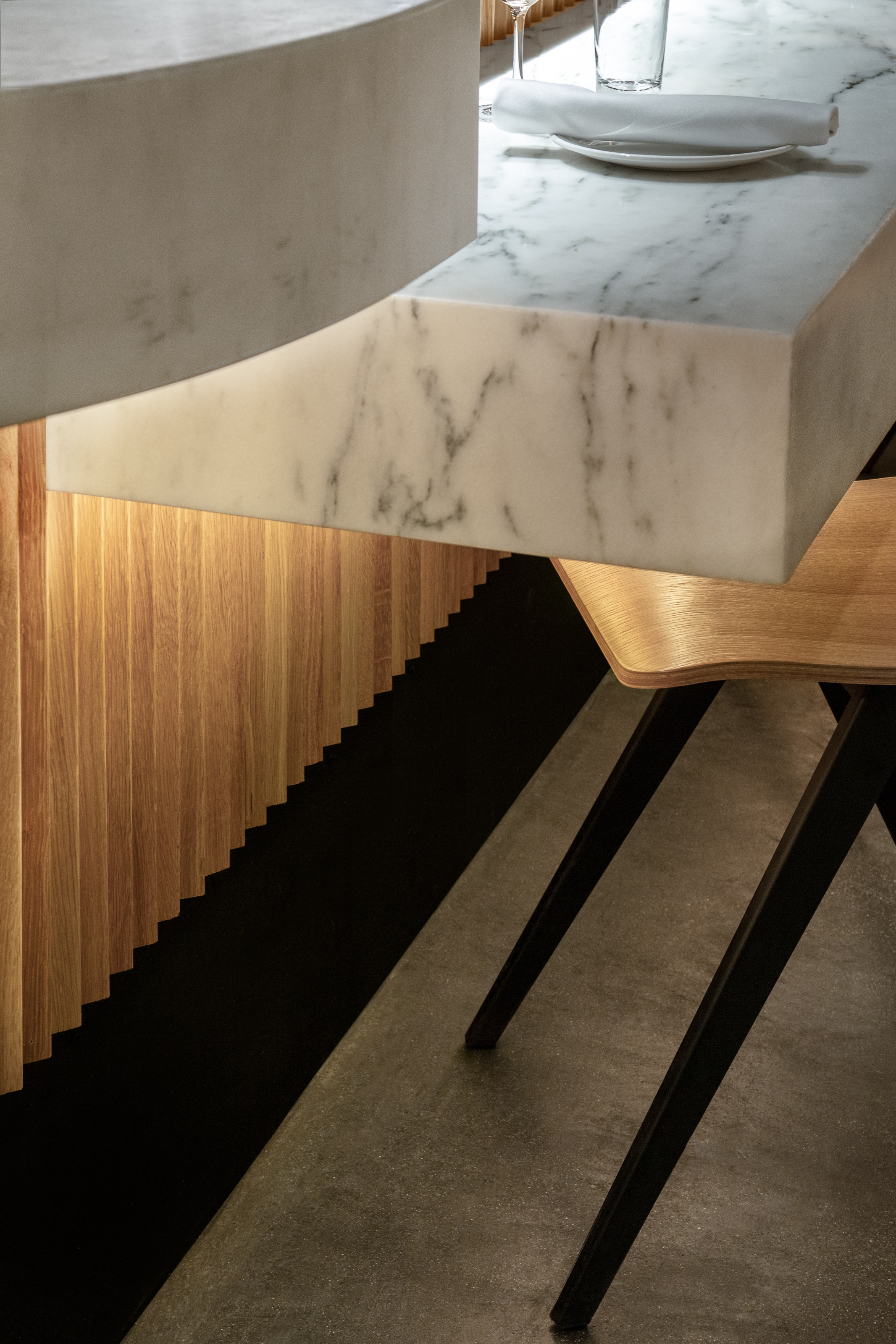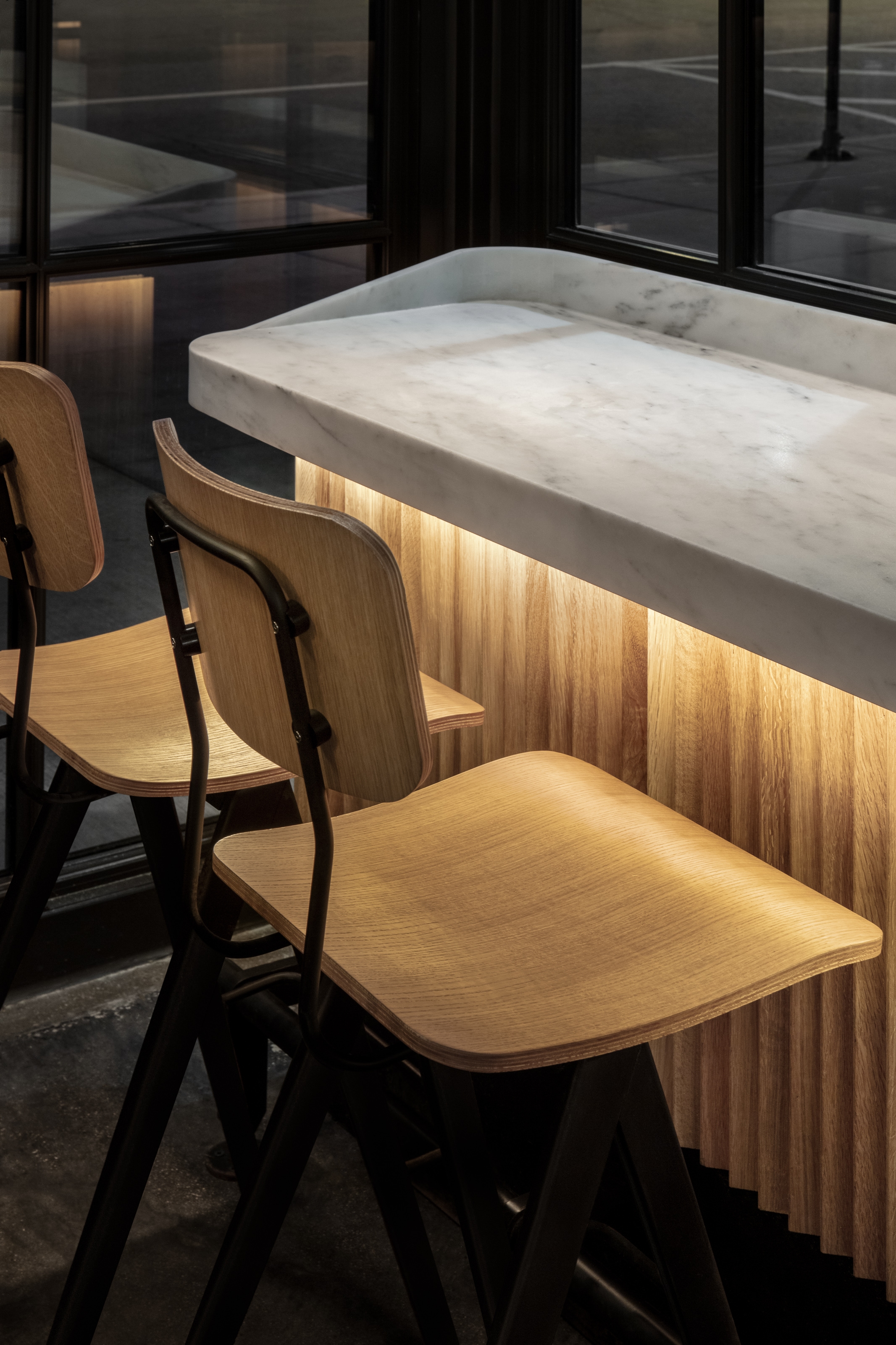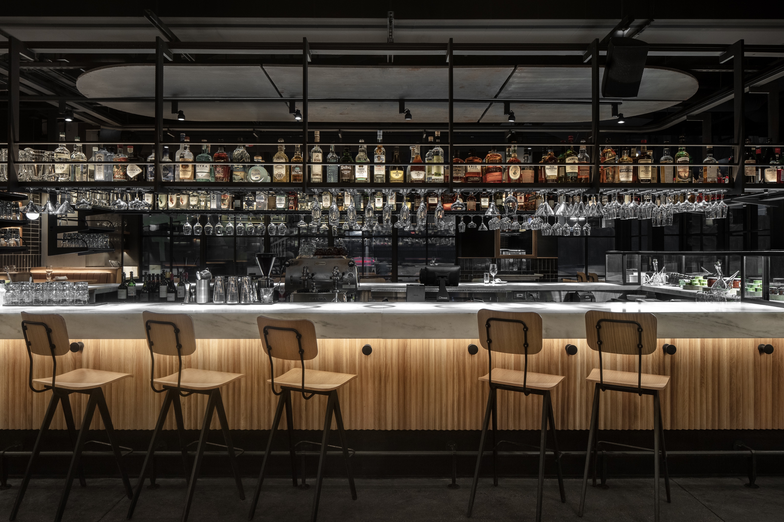 Prevailing materials are wood and black tiles, both not only reminiscent of the original Boqueria but also because of the feelings associated with them. One taking on a nice patina over time, the other providing a feeling of permanence & protection throughout the space.