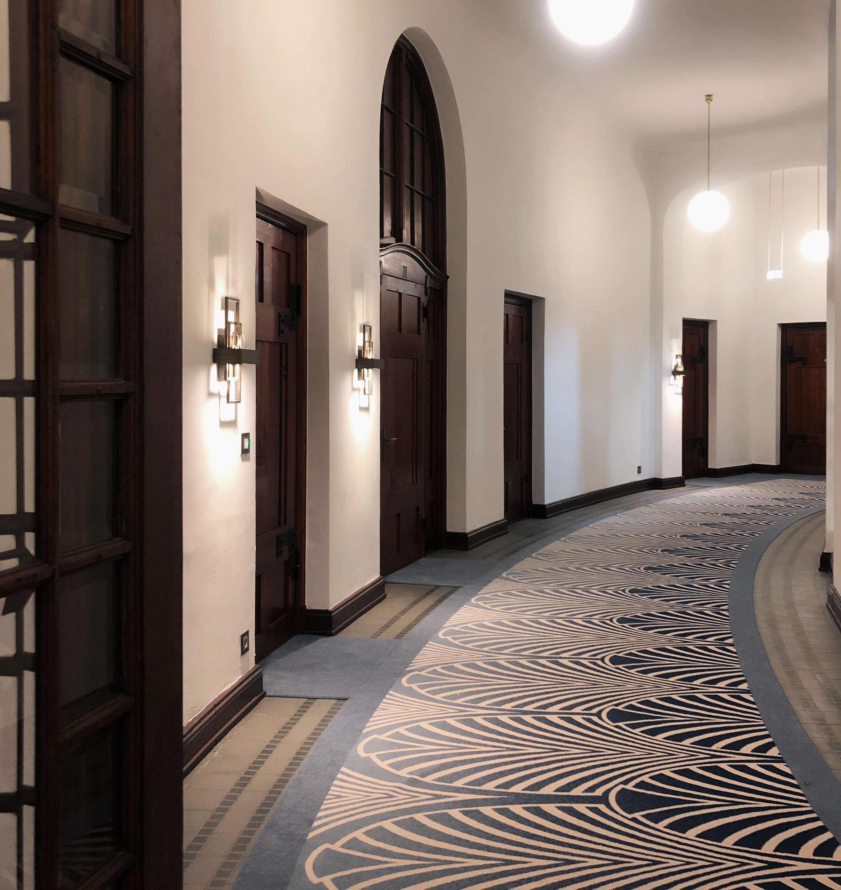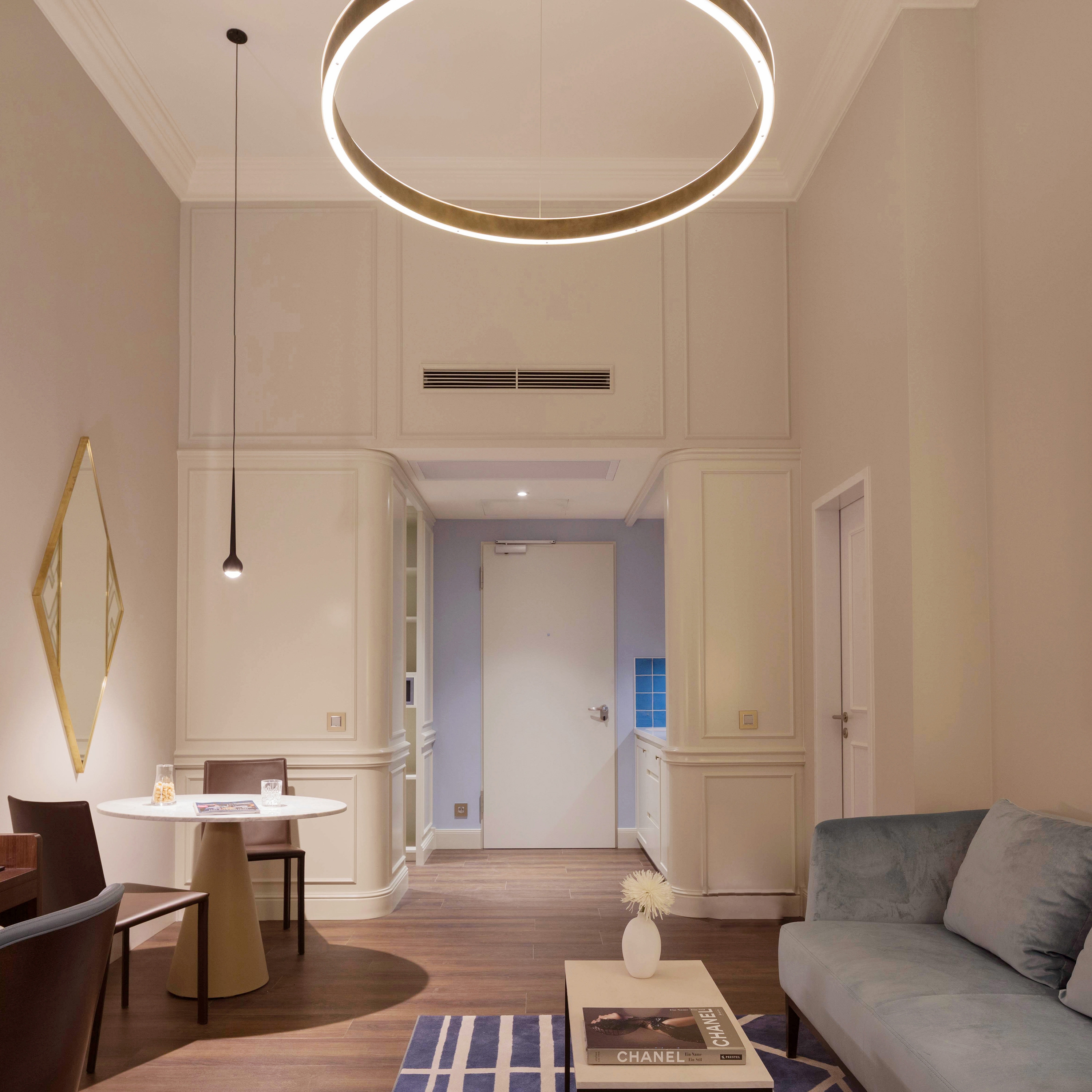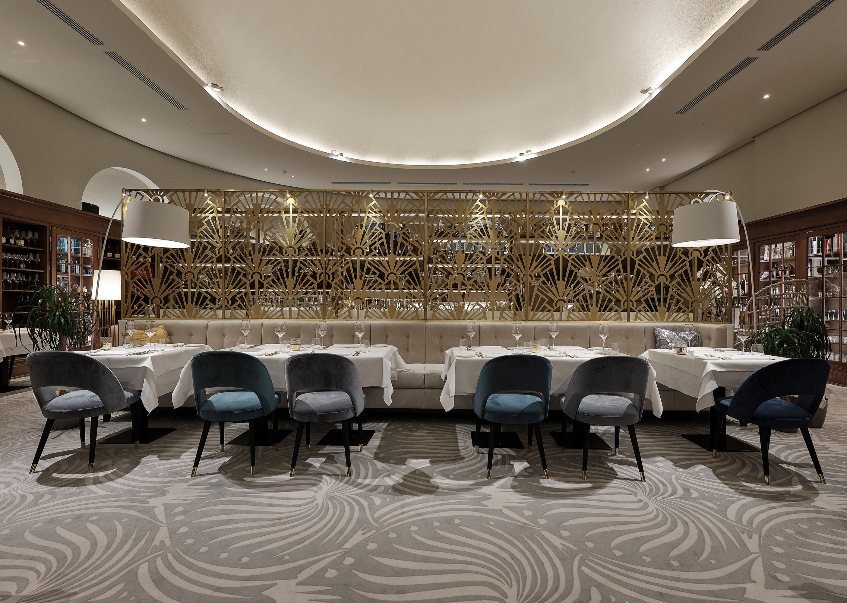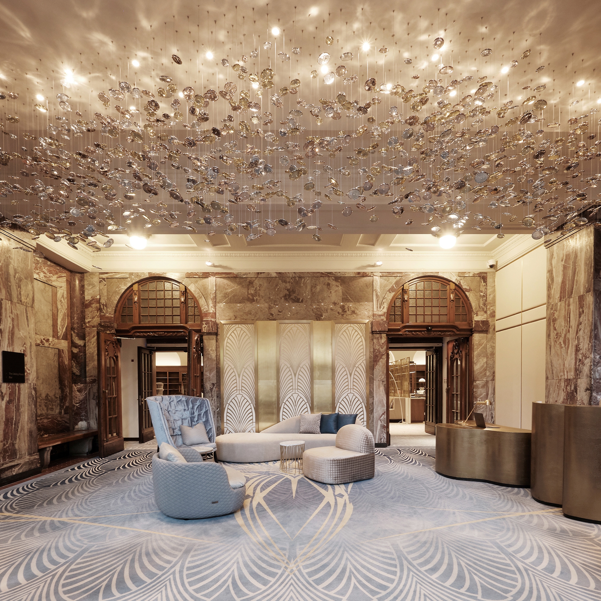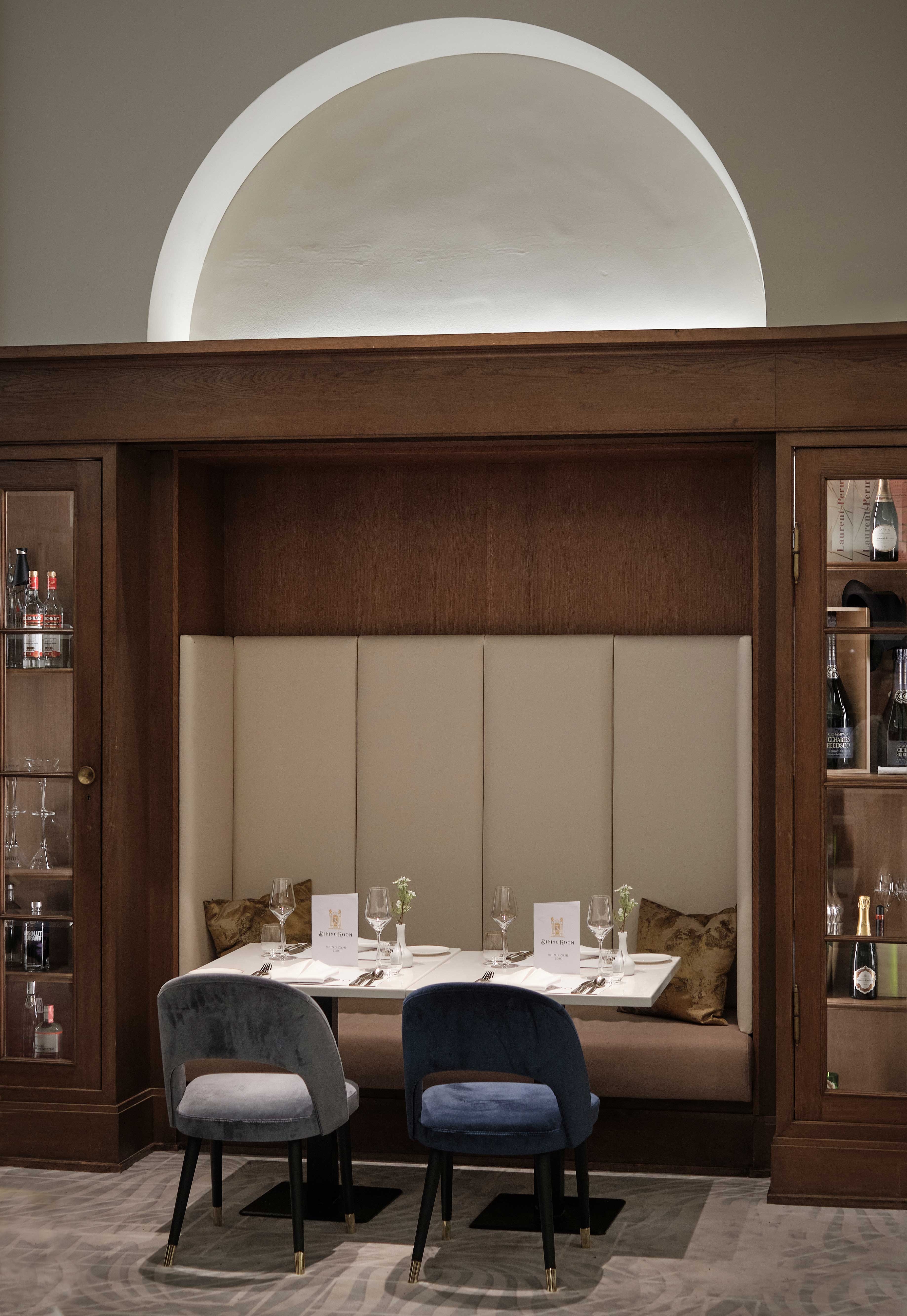 Architectural treasures are best restored, not destroyed. When converting Hamburg’s historic tax office into Germany’s first Fraser Suites, select design details were preserved to highlight the protected 1910 landmark’s past: 100-year-old Art Deco floor tiles were a surprise discovery, while restored 1950s corridor pendant lights reference the last extensive renovation. Inspiration from the Roaring Twenties adds inviting elegance, while playful floral and geometric patterns soften the imposing, awe-inducing architecture of the former legal building. Soothing blue tones further relax the mood and allude to the maritime culture of the nearby harbour. The restaurant and bar were created from the oval-shaped library with banquettes inset amongst the bookshelves. A huge challenge was transforming government offices into 154 guestrooms that, despite 98 diverse layouts, maintain a cohesive design language. Some have high ceilings; some are two-storey maisonettes; and others are at water level. A potential problem became a virtue: the atypical footprints with added kitchenettes have the individuality of traditional private apartments and feel calming and personalised for long-term stays.