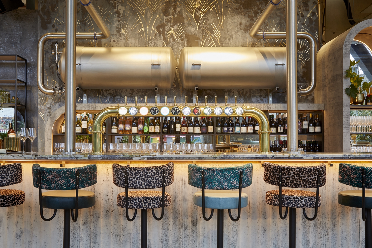Our design challenges included zoning such a huge, light-filled space, with super high ceilings, creating zones and nooks. The design of the venue’s huge hero bar was also a major challenge of scale, needing to incorporate not one but two cocktail stations, a dedicated tank beer zone, wine tasting section, a working, live bakery and dedicated pizza oven.