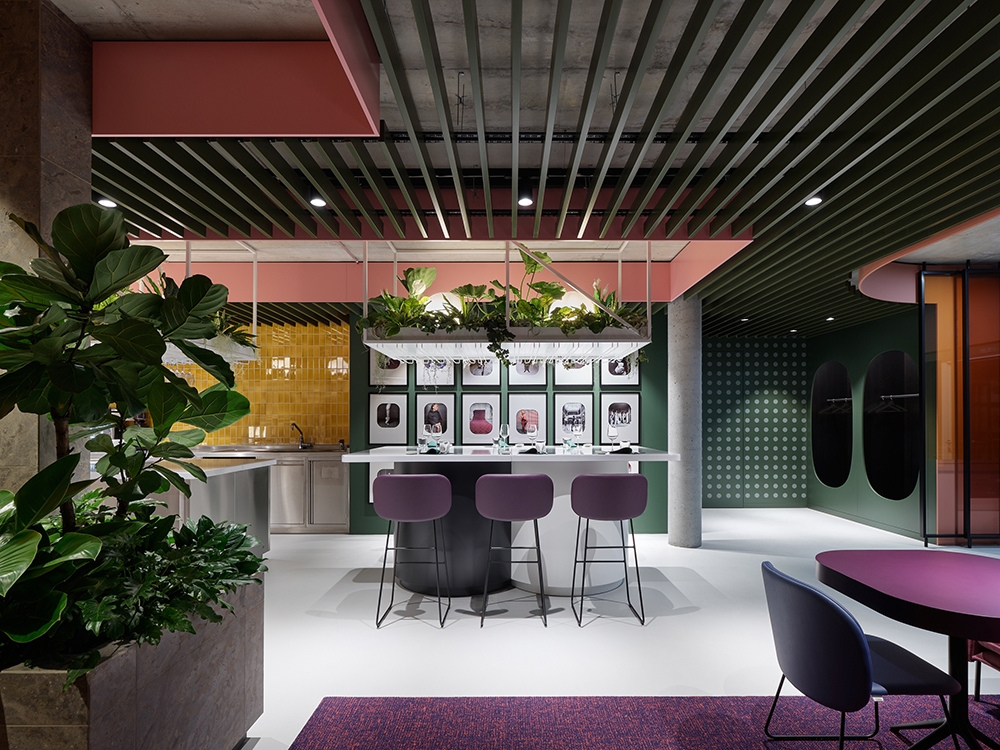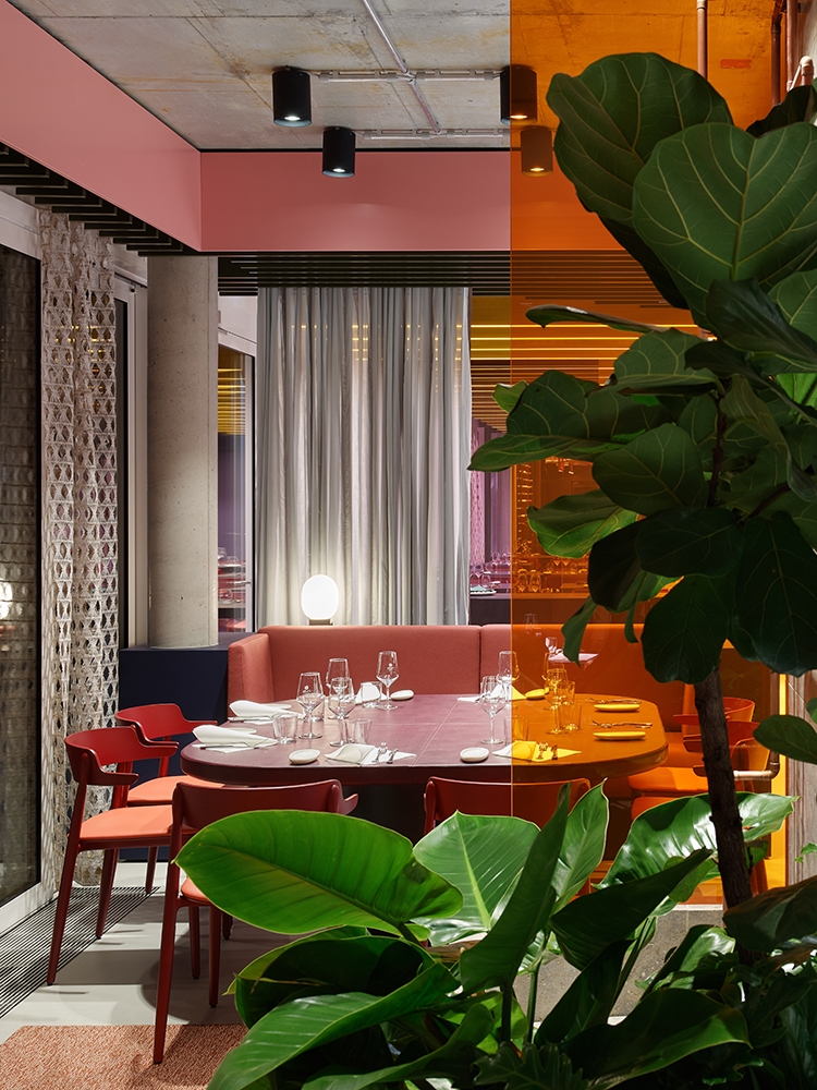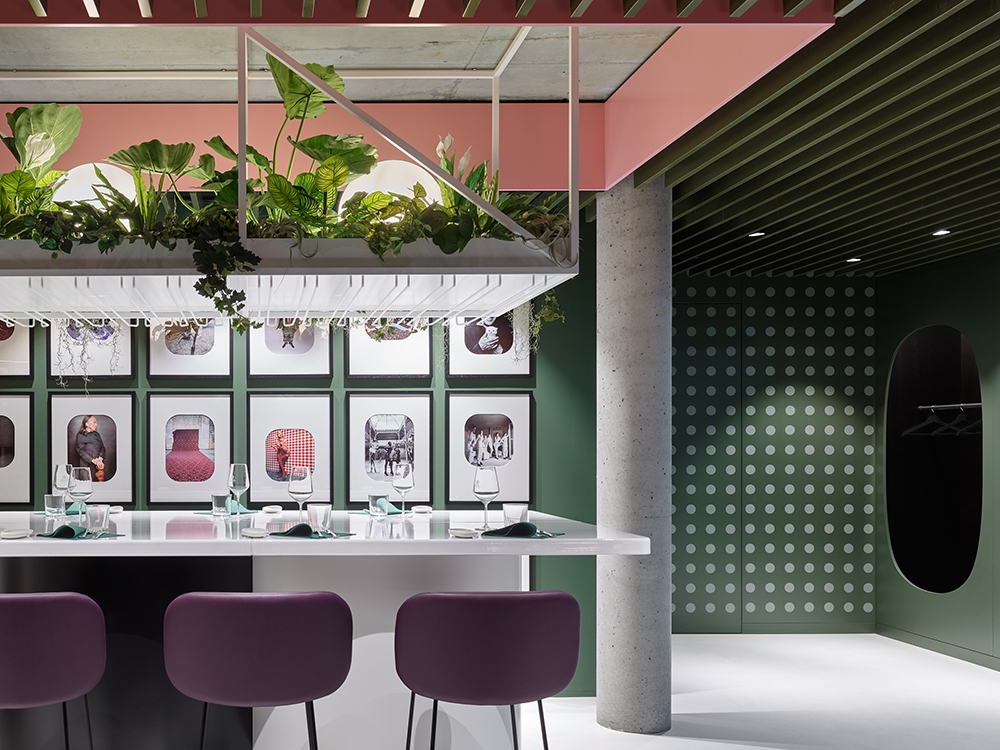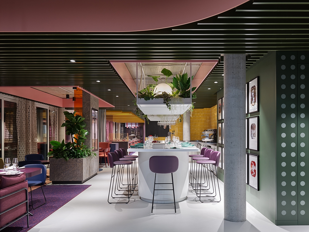 Object Carpet is a renowned carpet supplier. The restaurant is located at the centre of its new Object Campus. The idea behind the campus is to create synergies, and the restaurant follows suit: La Visione consciously positions itself between different worlds in every respect. It is an Italian restaurant, but also a co-working space, slash team meeting place, and a bar for everyone. Above all, it is a point of contact for Object Carpet to engage with the world.