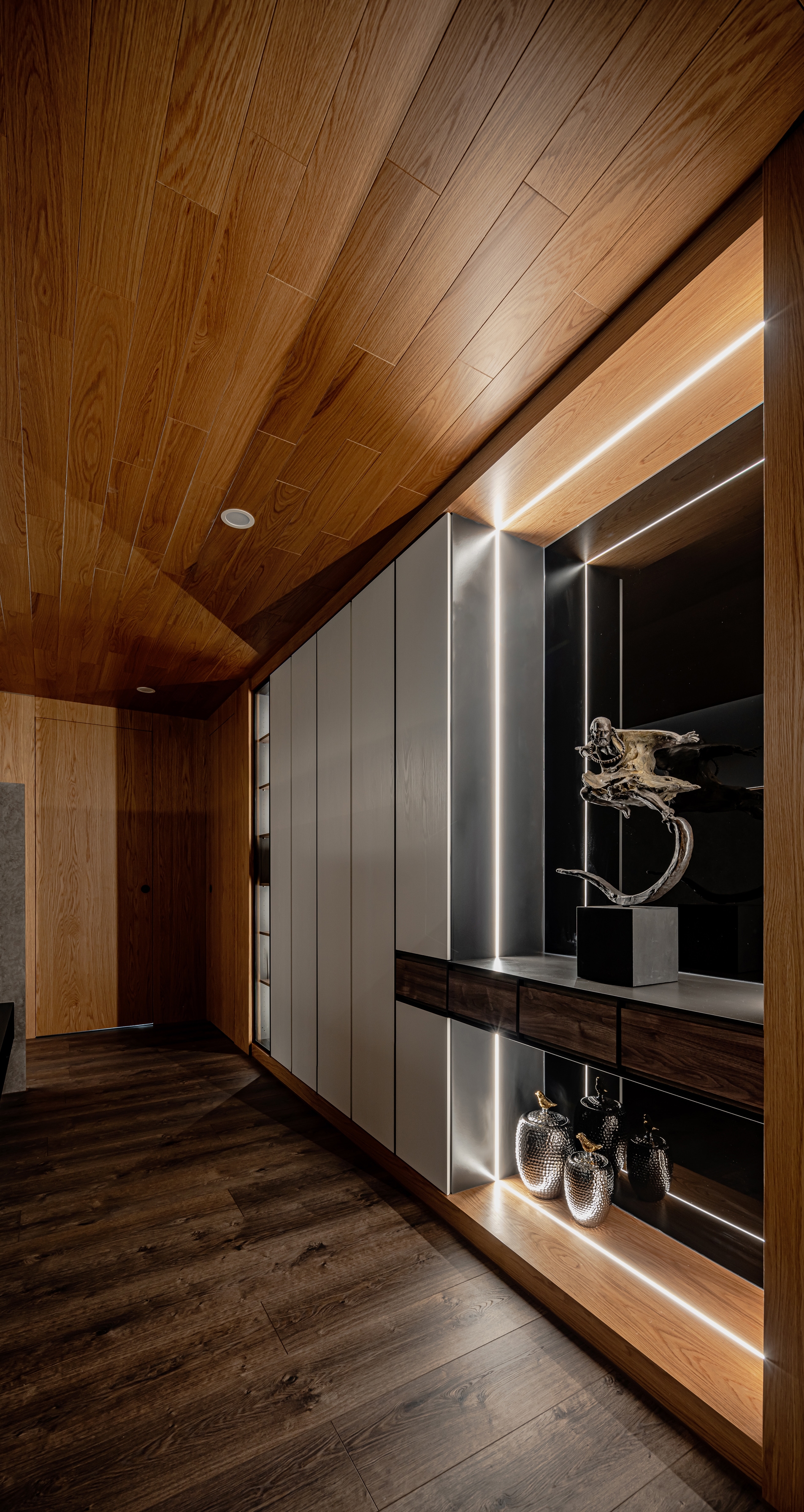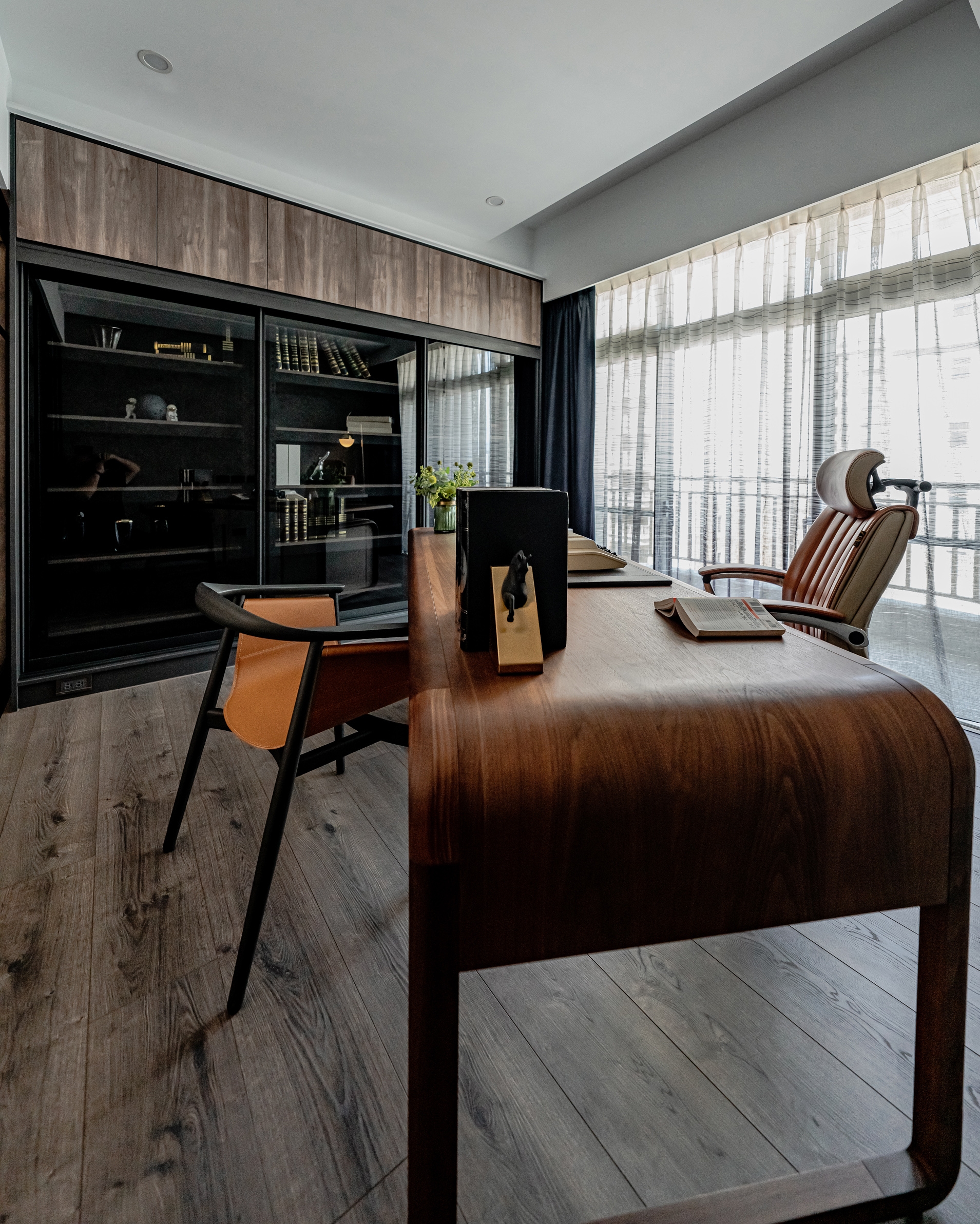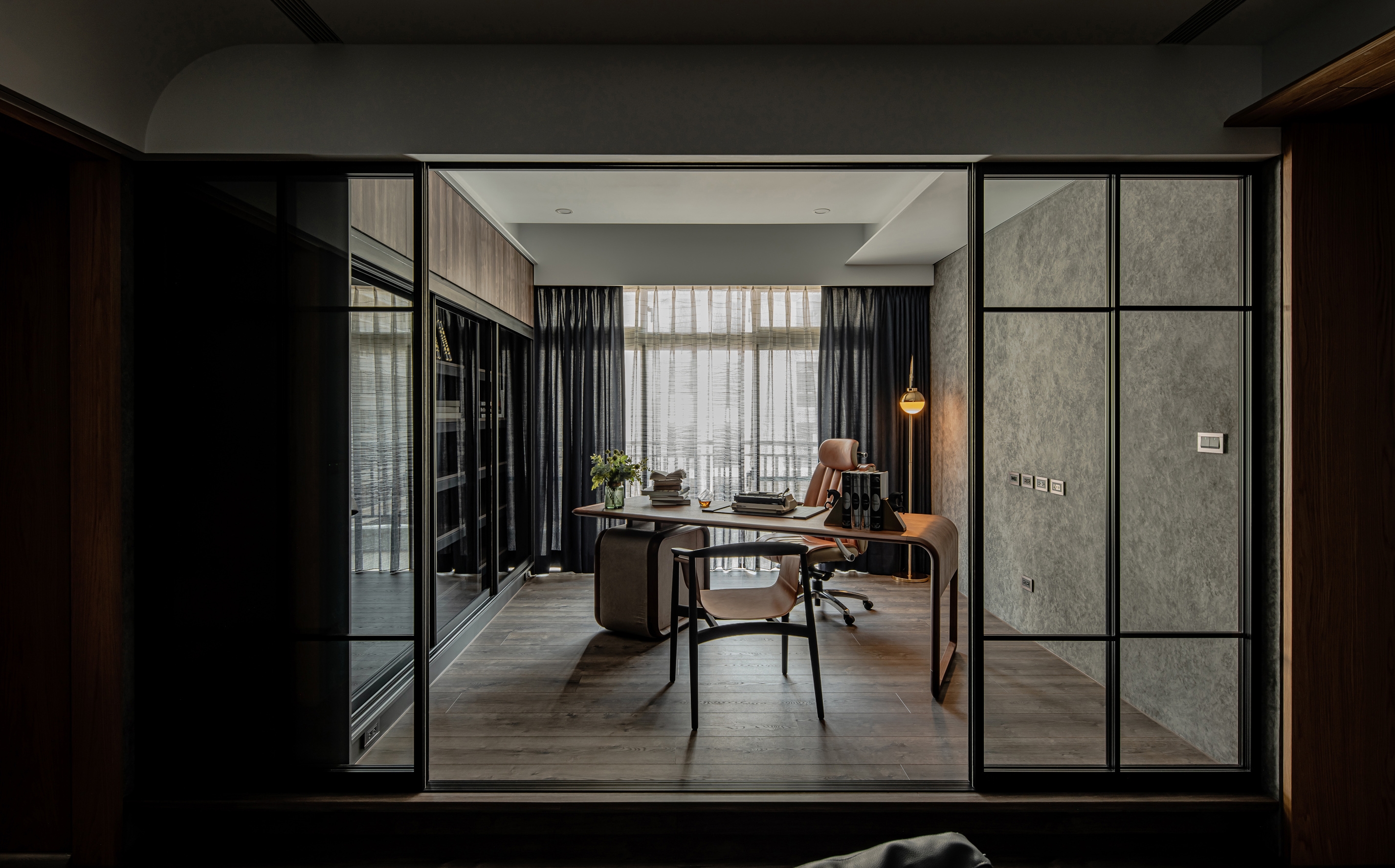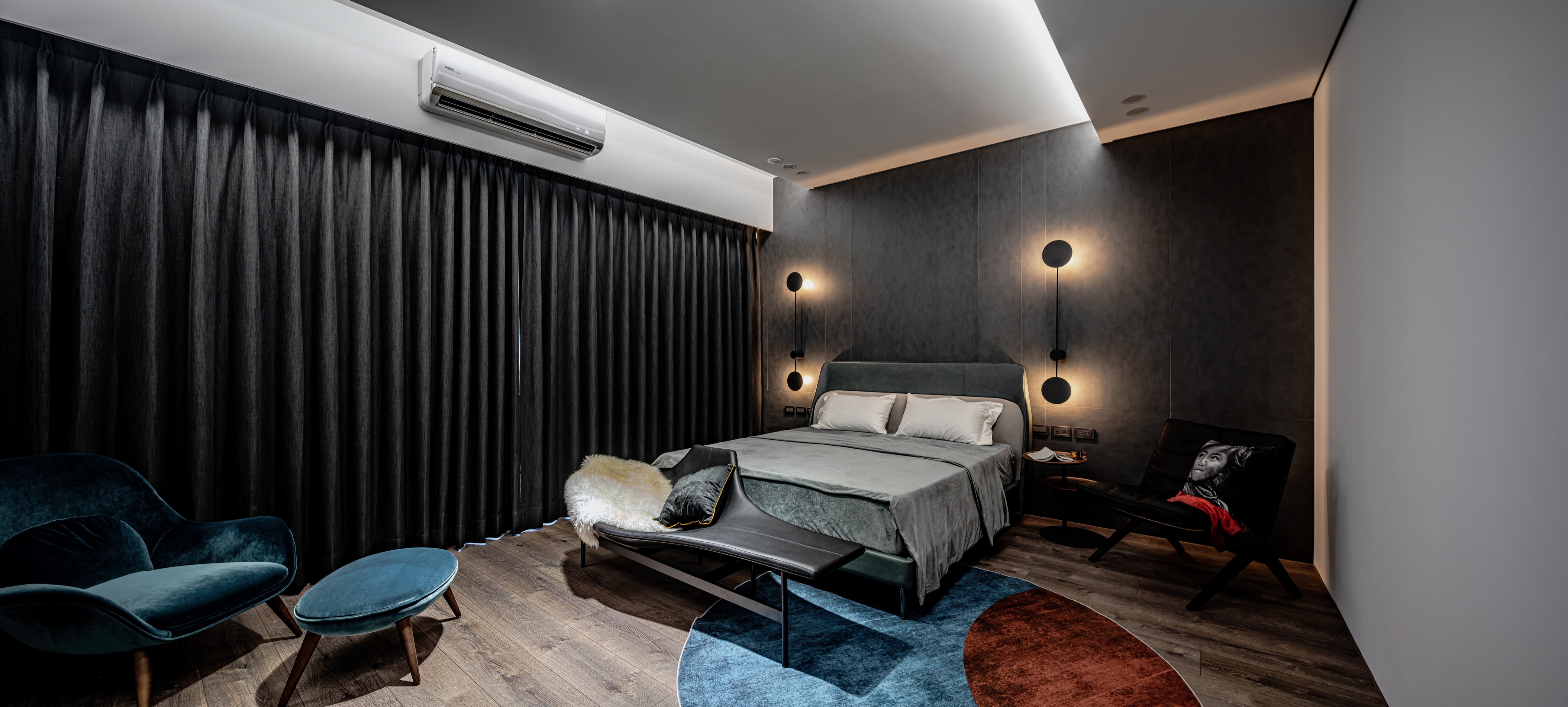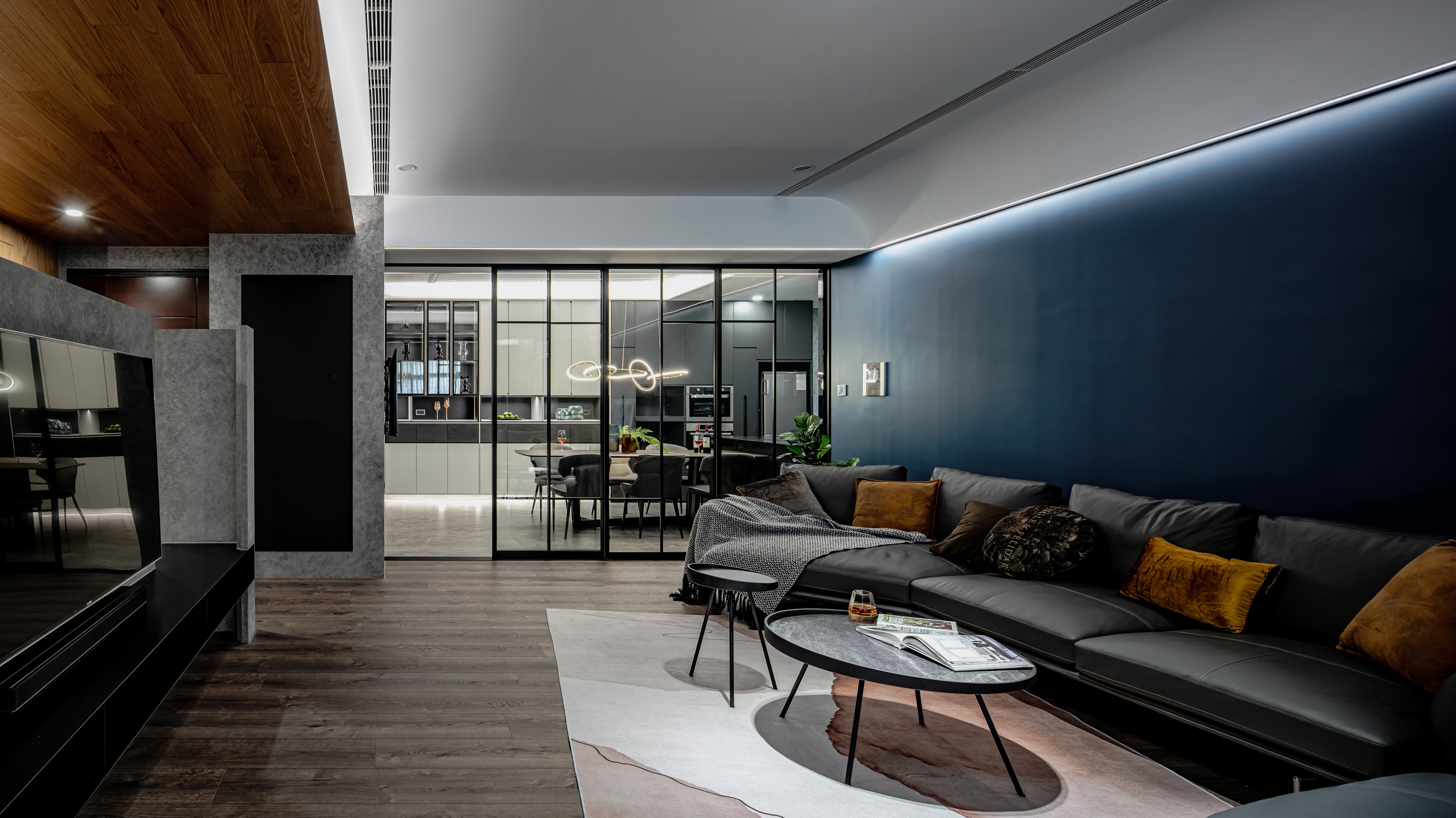 Home is a permanent haven for the family where unite the people as a whole. In this case, the designer uses the idea of concentric circles to interpret the spatial movement, aiming to link family boundary through the design, through the guidance of space, to increase more interaction and communication between family members. The design of concentric circles is used to link all the spaces, and the half-wall design and glass sliding doors are used to open up the vision of the space. The half-circle design on both sides of the TV wall symbolizes the embrace and care of the family. The living room with TV is placed in the center of the apartment to solve the problem of sunlight reflecting on the TV during the day, while leaving the natural light to the study by the window. The designer uses the living room as the center of the circle to connect the spaces and unite family members, making full use of natural lighting, penetrating materials, circular spatial movement, and height differences to create a circulating and highly interactive home space, allowing family members to converge in the living room, the center of the family, no matter where they come from.