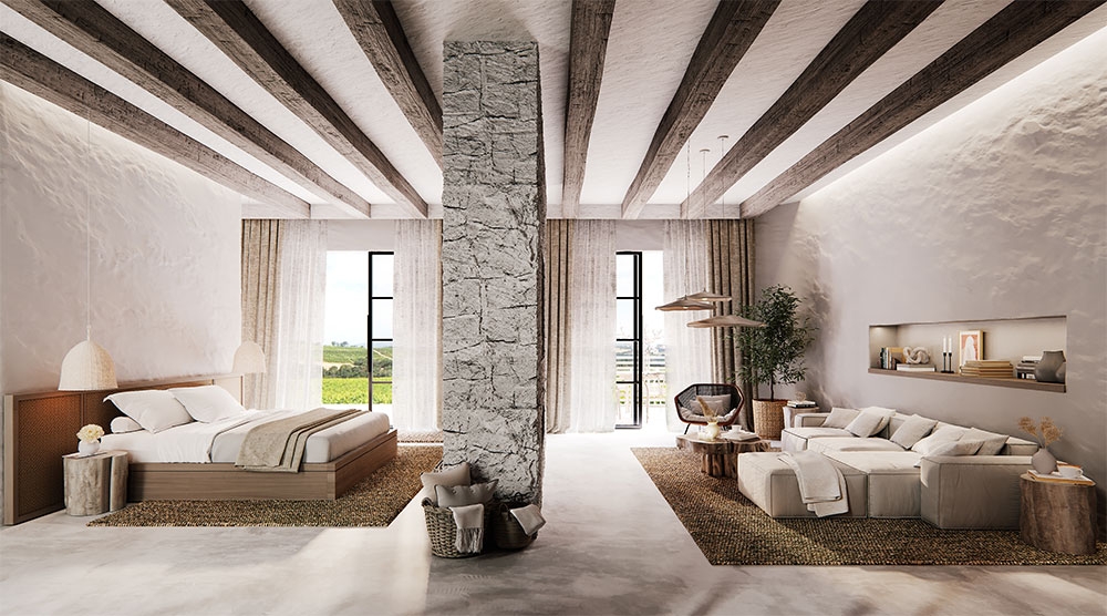 The Nuraxi Retreat is a Boutique Hotel embodying a unique experience. Situated in the heart of an active vineyard in Sardegna, Italy. The Nuraxi Retreat Boutique Hotel designed within the five-star Italian vineyard Vigne Rada is with established distribution into the US and Germany and several awards won internationally. Nuraxi infuses Ancient Wisdom & Modern innovation combined to create a unique experience of food, wine, body, mind, connection. The Nuraxi retreat’s goal is to re-boot the system, inspire the senses, reconnect to your primal self. The project comprises luxurious hotel suites, villas that are distributed within a patch of an ancient forest, a farm to table restaurant, tasting rooms, and an infinity pool overlooking the vineyard. It also has state of the art shepherd’s huts, and spa & wellness facilities nestled among the vineyards.