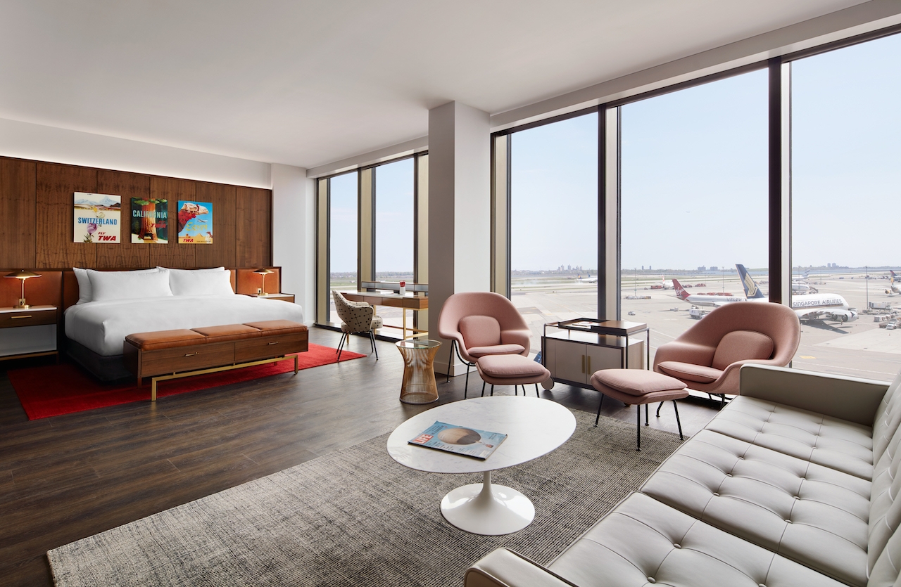 From the moment they step into one of the 512 guest rooms, suites, and select public spaces designed by Stonehill Taylor, visitors to the TWA Hotel will find themselves immersed in the ethos of 1962's rich culture, architecture, sights, sounds, and ambiance.