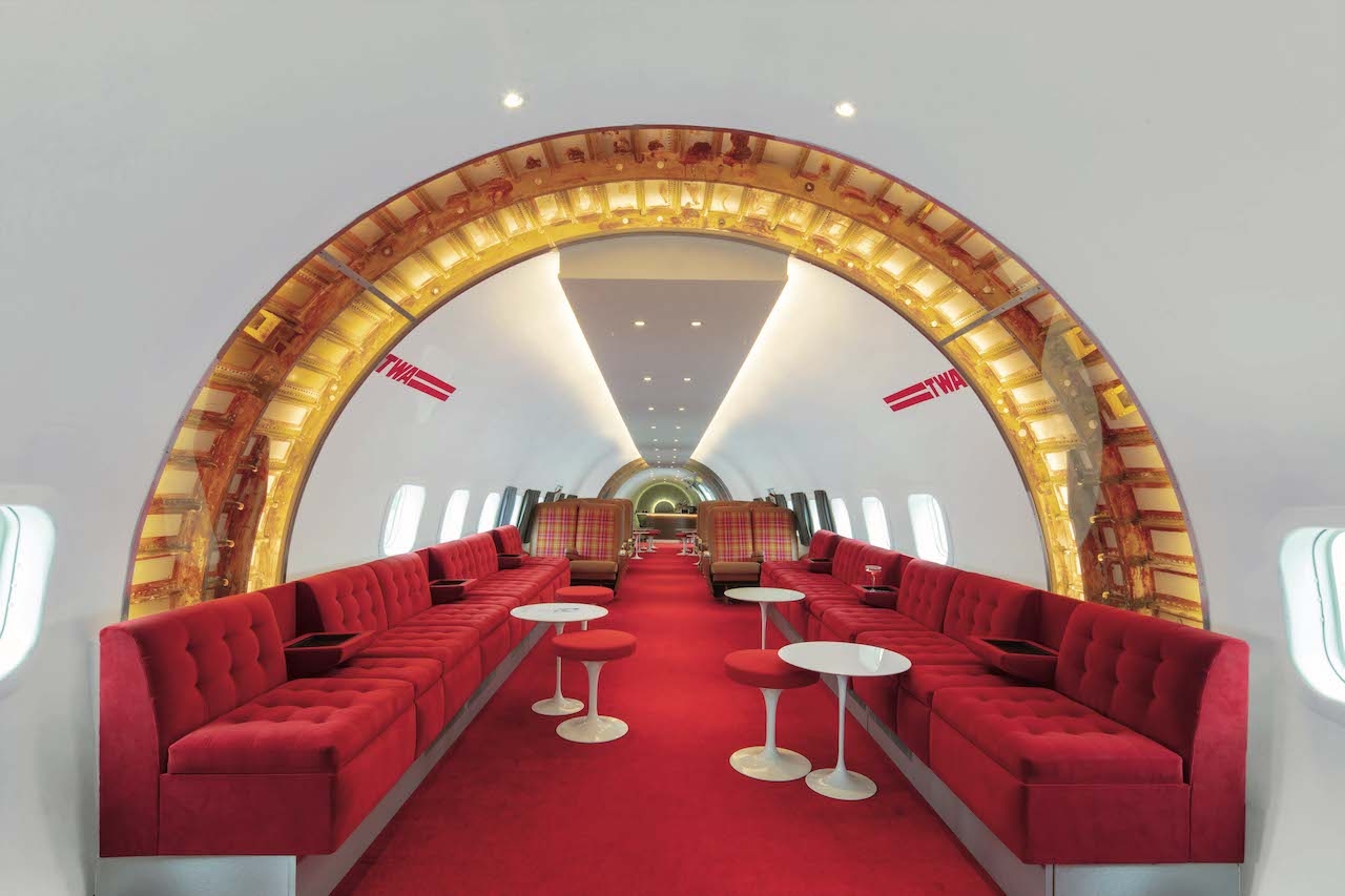 The Sunken Lounge was reconstructed from original shop drawings and 1960’s photographs that honor and revitalize the original space. Its expansive glass curtain walls afford views to the restored L-1649A Lockheed Constellation plane—now a cocktail lounge named Connie—that sits on the tarmac adjacent to the Sunken Lounge, also designed by Stonehill Taylor.