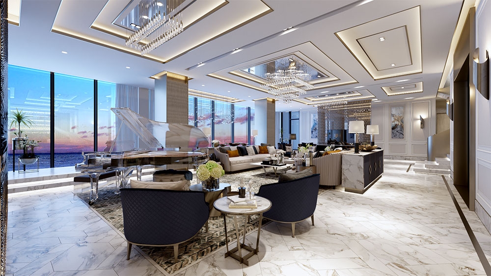 The suite also introduces a feature, which brings back reminders of the Arabic hospitality through different elements of the Arabic Majlis. A sea view, “Arabic coffee corner” is yet another feature in this luxurious suite.