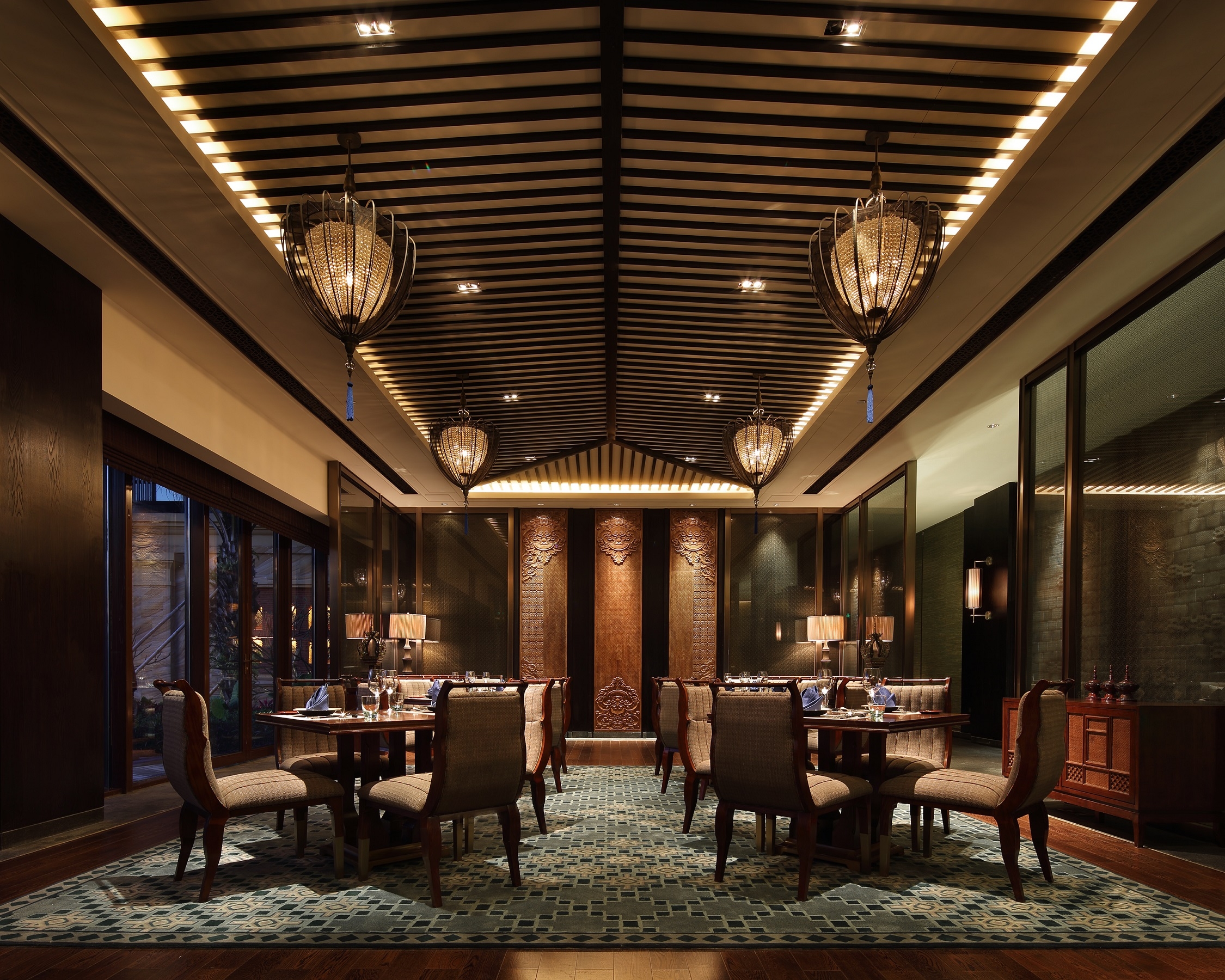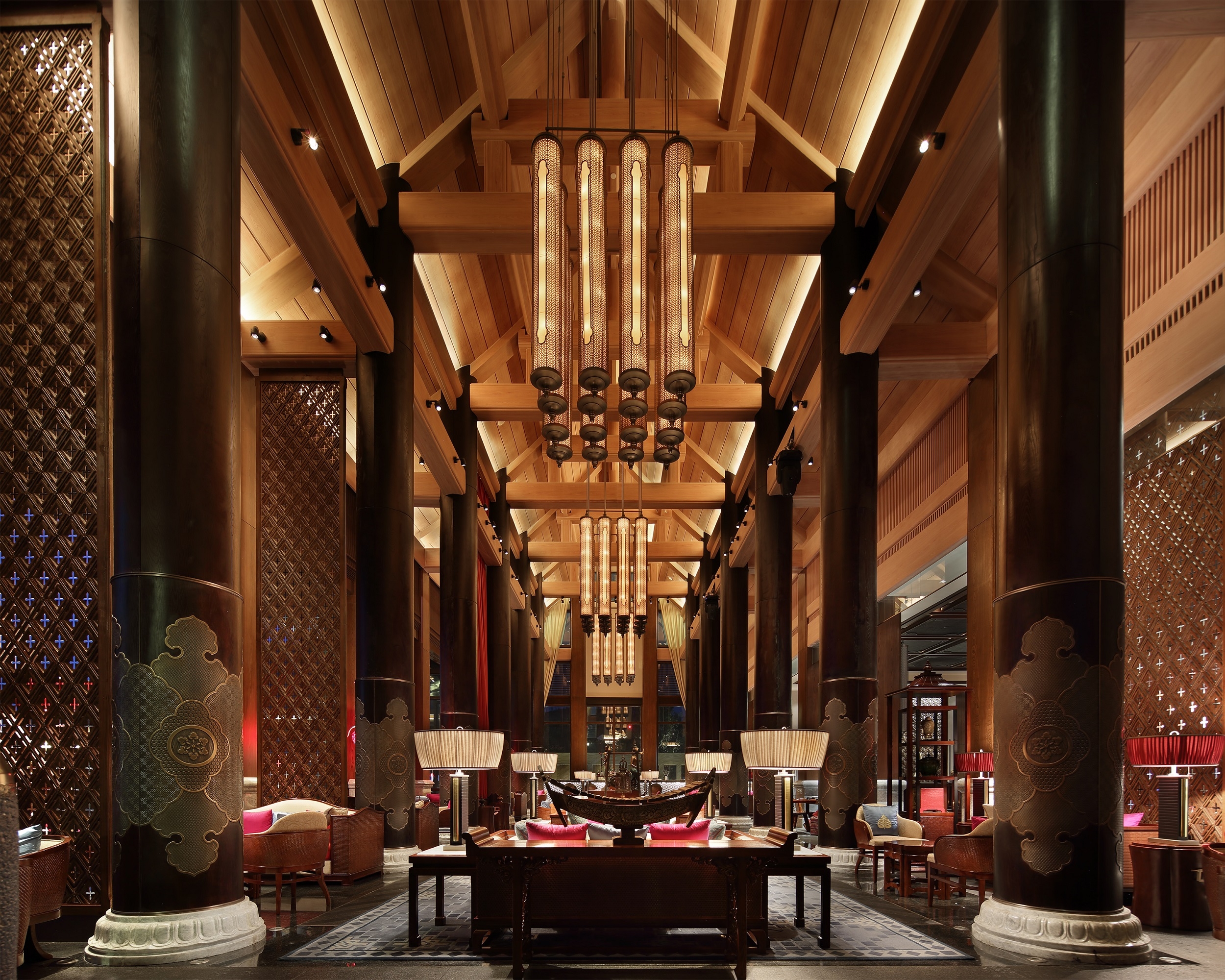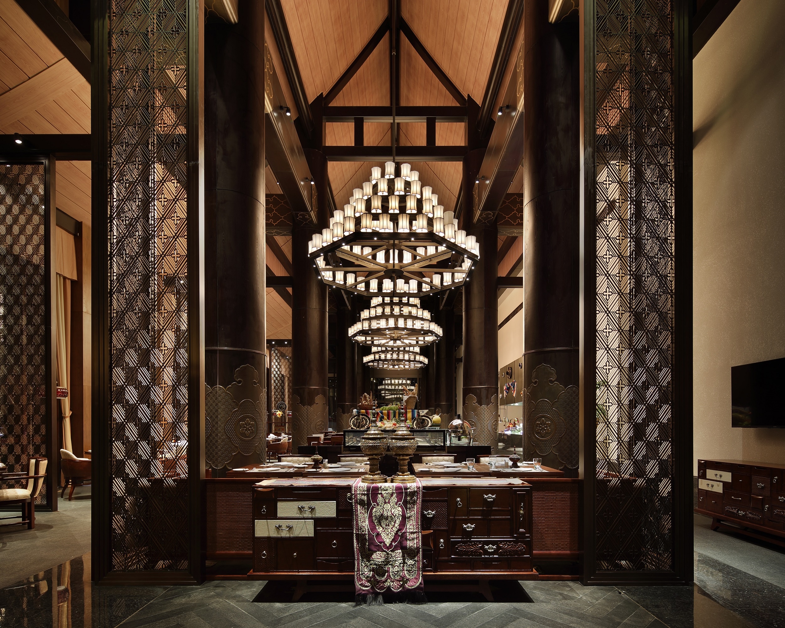 Wanda Vista Resort Xishuangbanna was designed to become a hidden sanctuary in one of China’s most beautiful landscapes. It was influenced by the unique architectural style of Dai culture, characterized by a luxurious and romantic sensibility. The 21 independent Dai-style villas, with 14 kinds of rooms including suites, queen-sized-bed rooms and twin-beds rooms, deliver different living experiences for each stay. Each room is equipped with swimming pool and elaborately designed private garden full of exotic plants to provide privacy and safety for the guests. Yet Dai elements are evident from the details such as the unique patterns on an elaborate corner of a desk, or lamps.