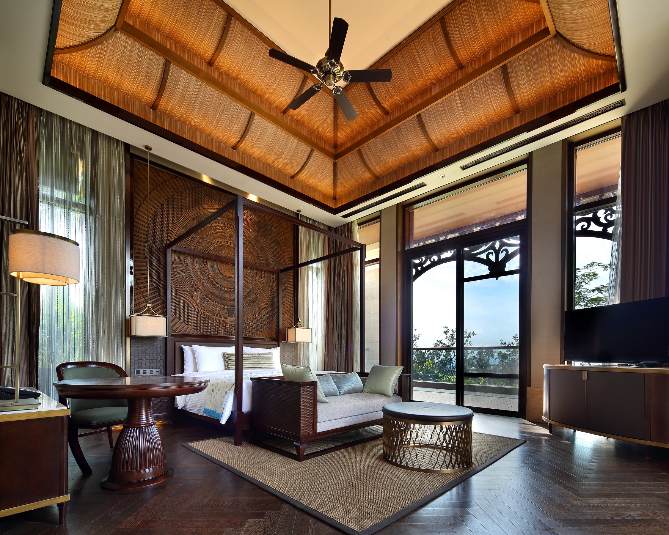 Each room comes with its own garden and swimming pool. The foliage in the gardens underwent meticulous landscaping, with a variety of rare trees adorning the vista and combining effortlessly into the resort's general environment, providing guests with a leisurely space that allows them to feel close to nature and enjoy their own secret retreat. Twin doors lead into the garden adding to guests' feeling of security and privacy.