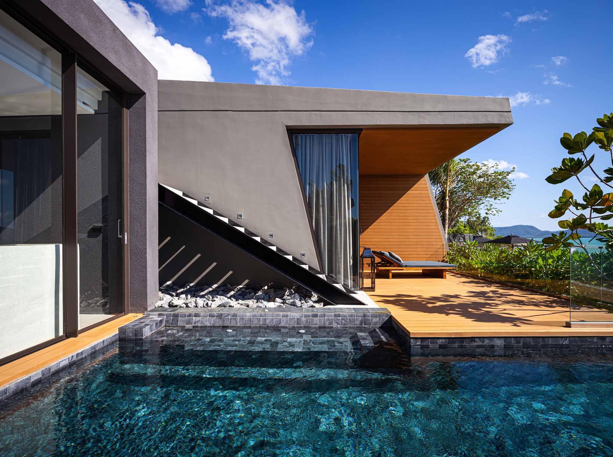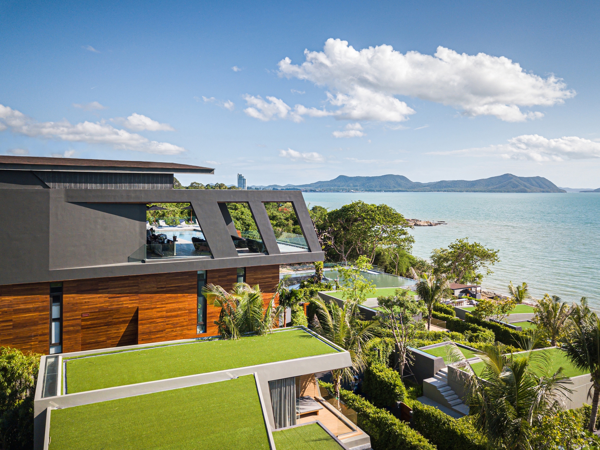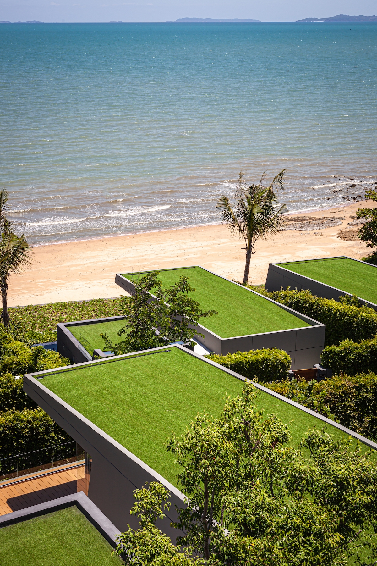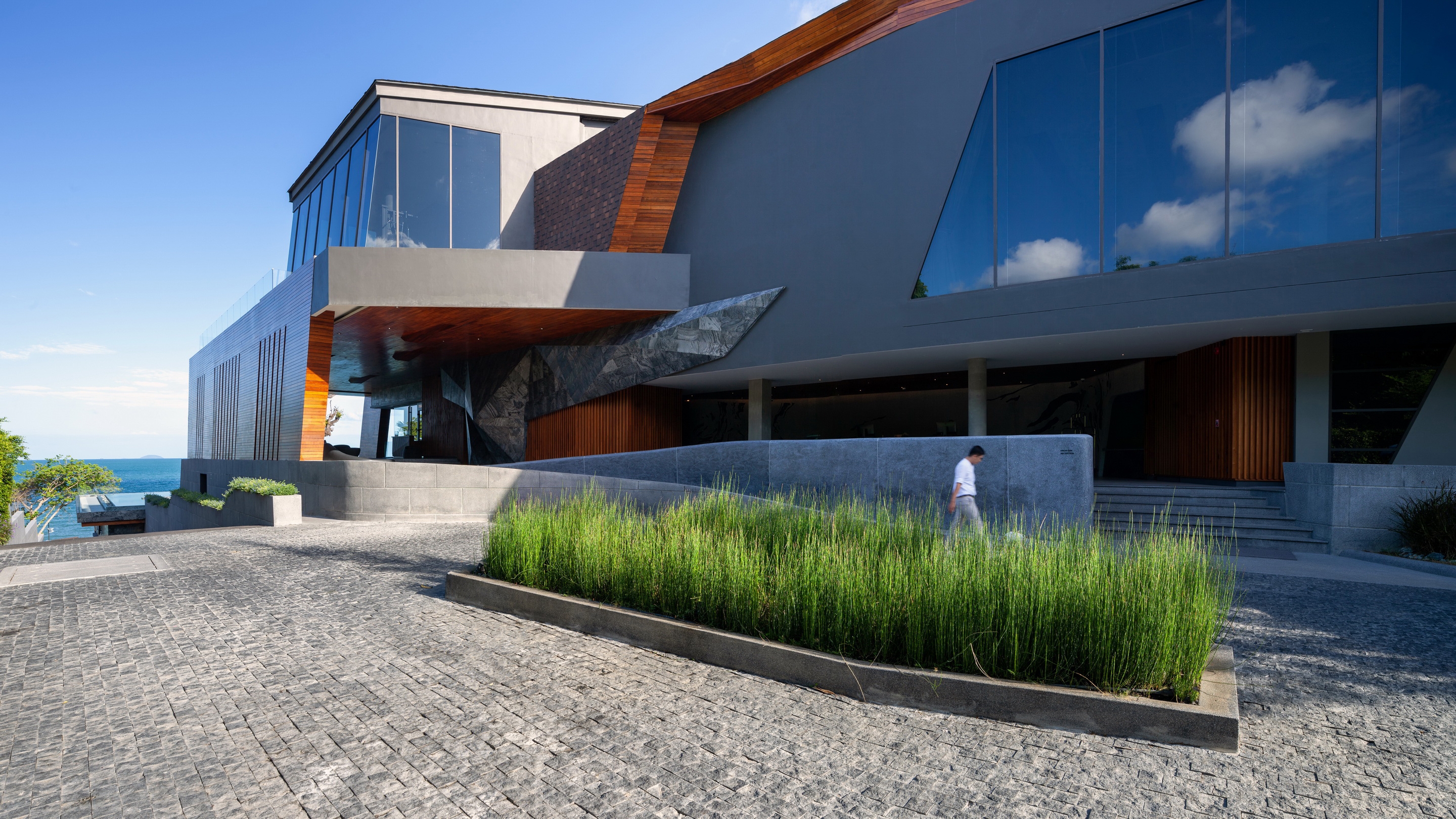Located on Na Jomtien beach, not far from fishermen’s village, the resort rests on a 12m-high granite hill inclining down to the sea, where Ang Sila stonemasonry community is nearby. Inspired by the stone hillside site and the craftsmanship of the Ang Sila stonemason, Mason’s architecture is metaphorically sculpted into the slope using material integration of granite stone and concrete. The resort consists of 35-unique-pool-villas and its facilities, including restaurant, spa, fitness, pool and beachside bar. In descending the slope, the cave-like villas are carved on one third of the 48,000 square-meter site, maximizing the sea view, while keeping tranquility and privacy within. The pool villas are divided into 4 room types: Garden, Duplex, Beachside and Beachfront Pool Villa. Each type is located in descending contours with a sea view. Local materials such as granite, terrazzo, and teak wood are used throughout the project. The interior has been crafted from the Ang-Sila sculptors. Black and white film photographs, by Chatchakad Waikawee during the construction period, are used as decoration to reflect the design and construction process from start to finish.