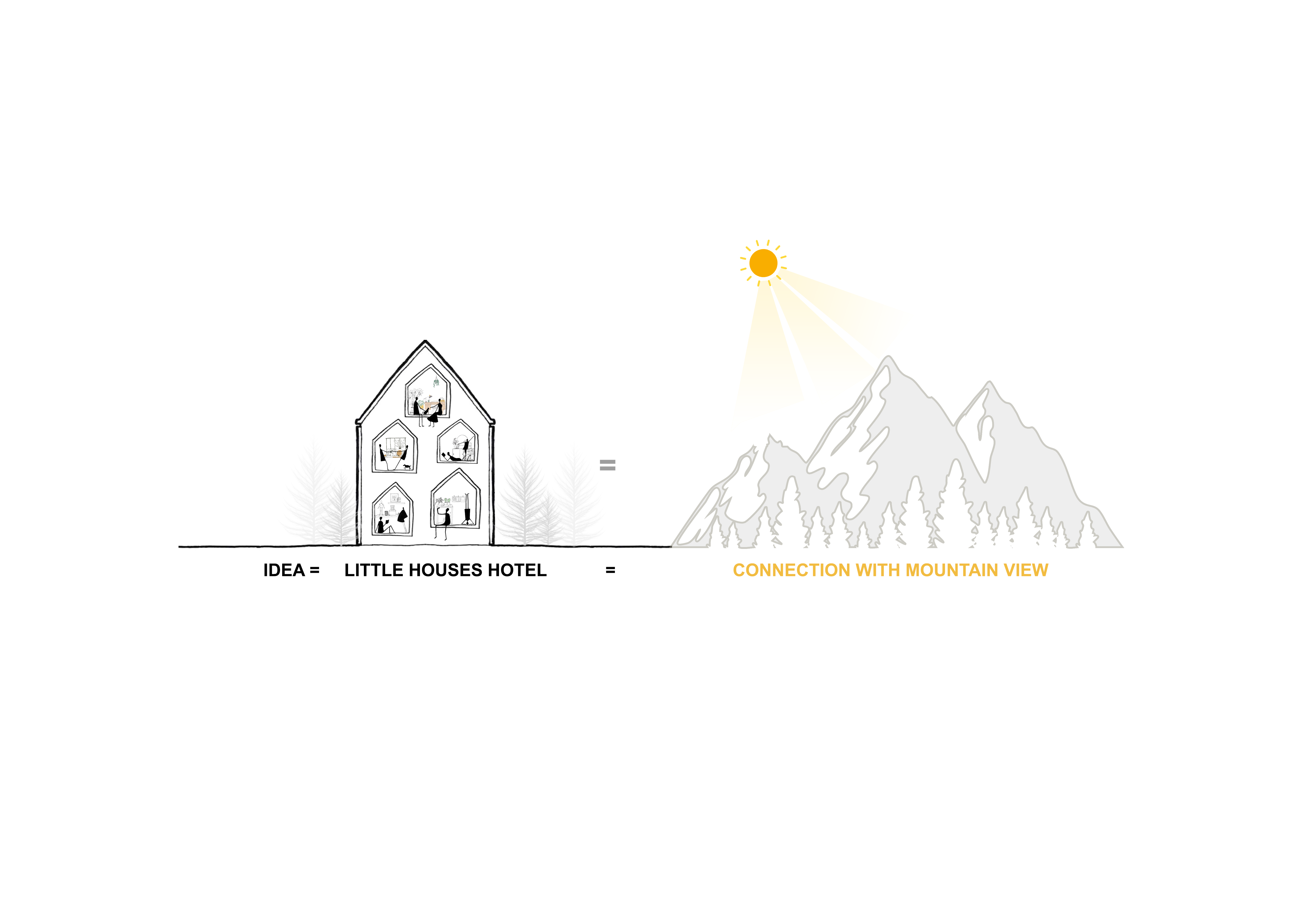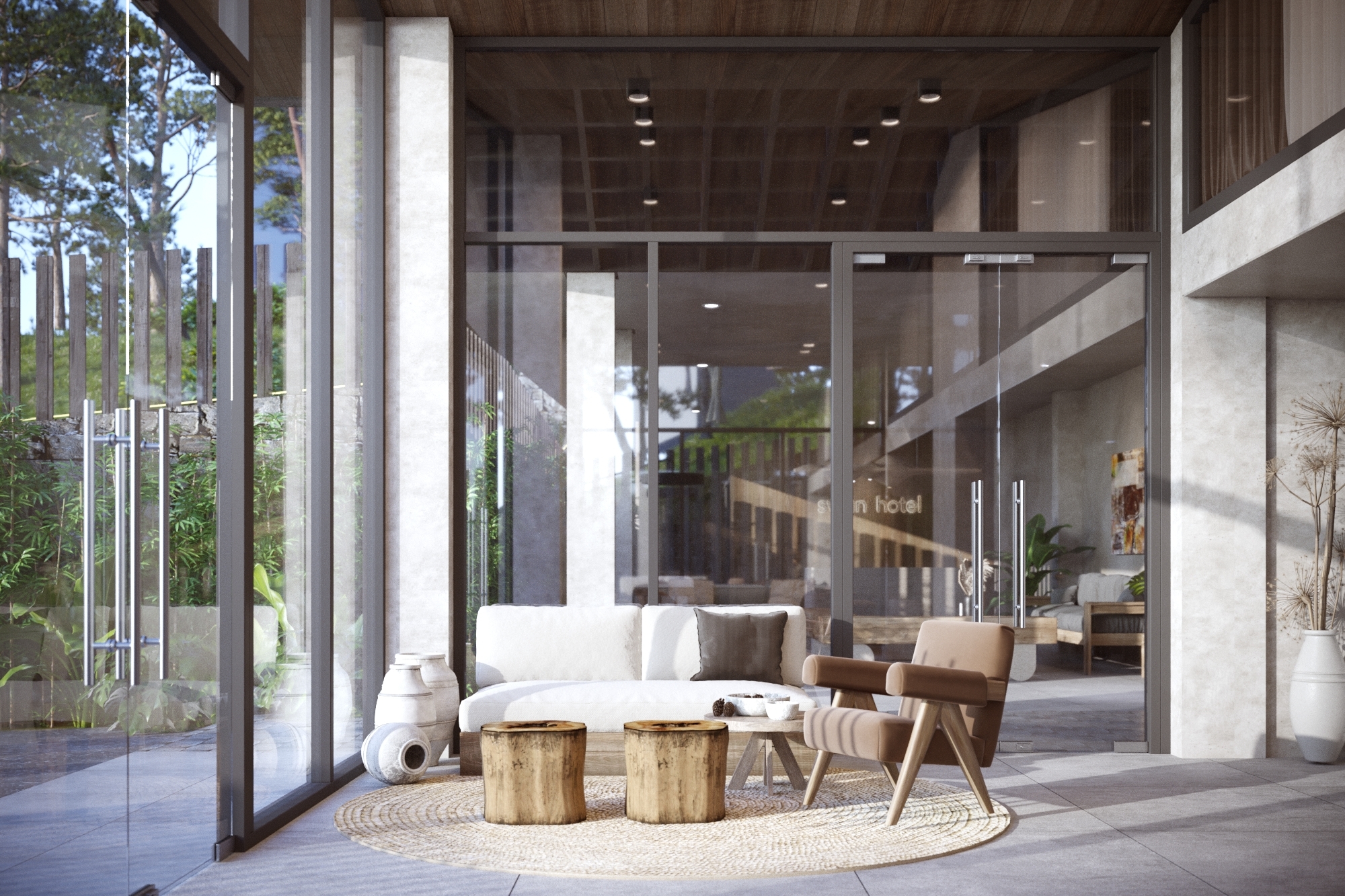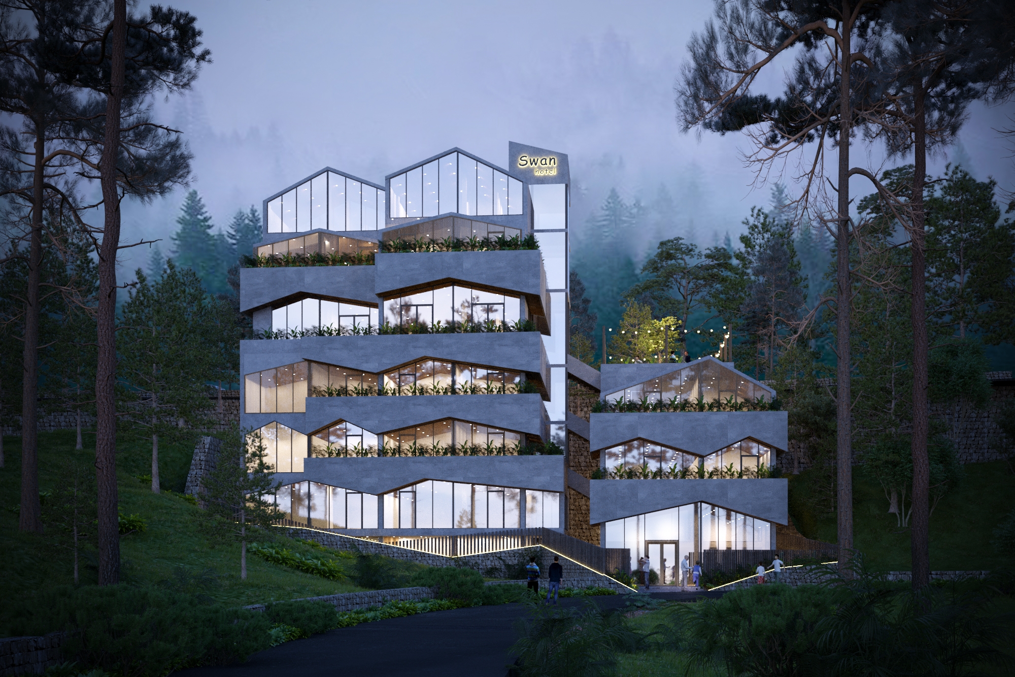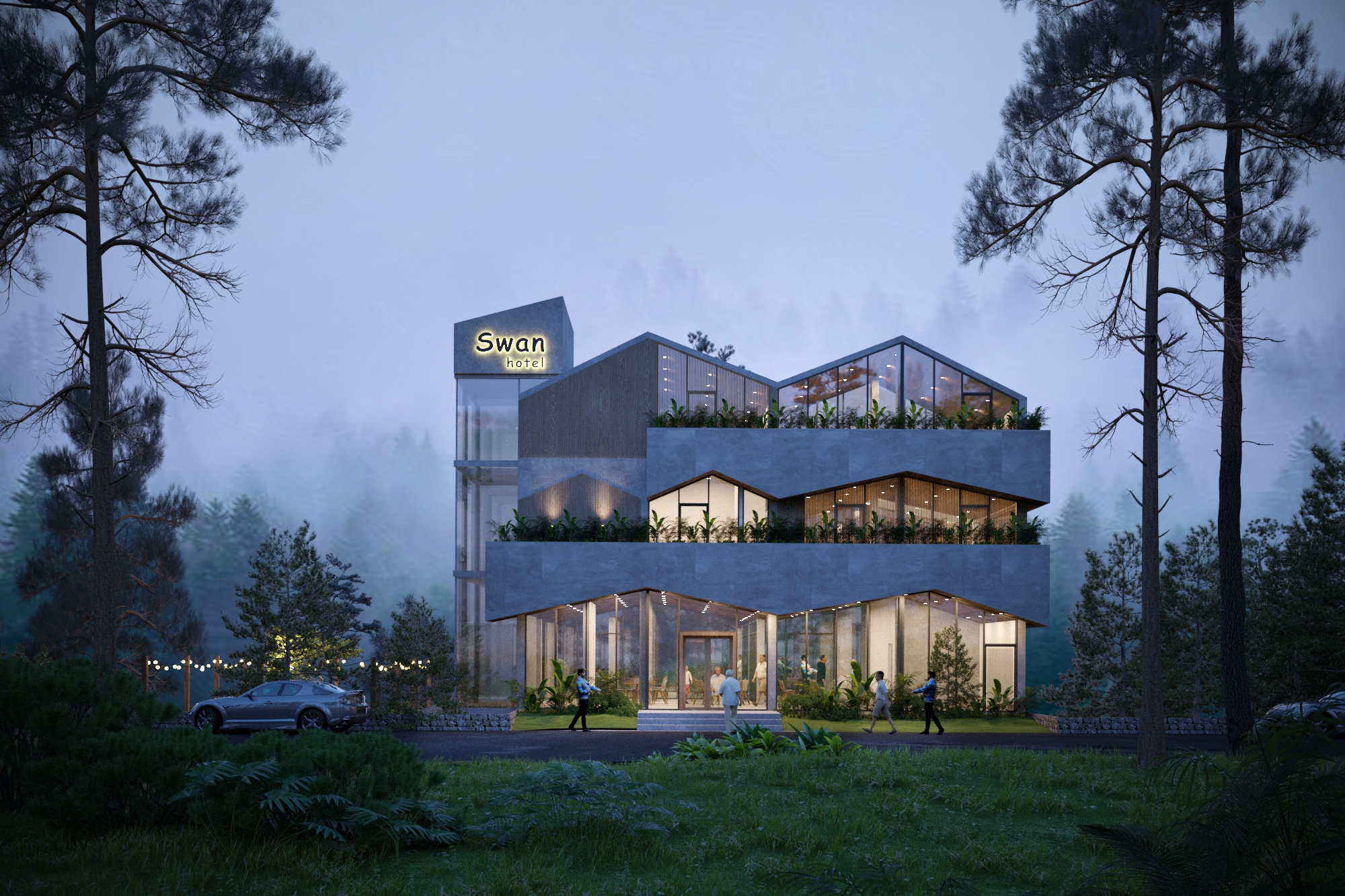 Our design intent focuses on harmonizing with the natural context of Da Lat, seeking a design that retains its identity and is trendy at the same time. Since then, the hotel has had a strong identity while also meeting all legal requirements. The main inspiration of the project is the image of a combination of stacked houses. We want the hotel to be not only a temporary accommodation for our guests, but also a home for them to return to. By arranging the houses in a conventional way to avoid the grandeur and massiveness that a typical hotel often brings, the building volume is calculated to be subdivided to become closer.All these combinations create a project that has both the old features of Dalat tiled roof houses and a modern breath.