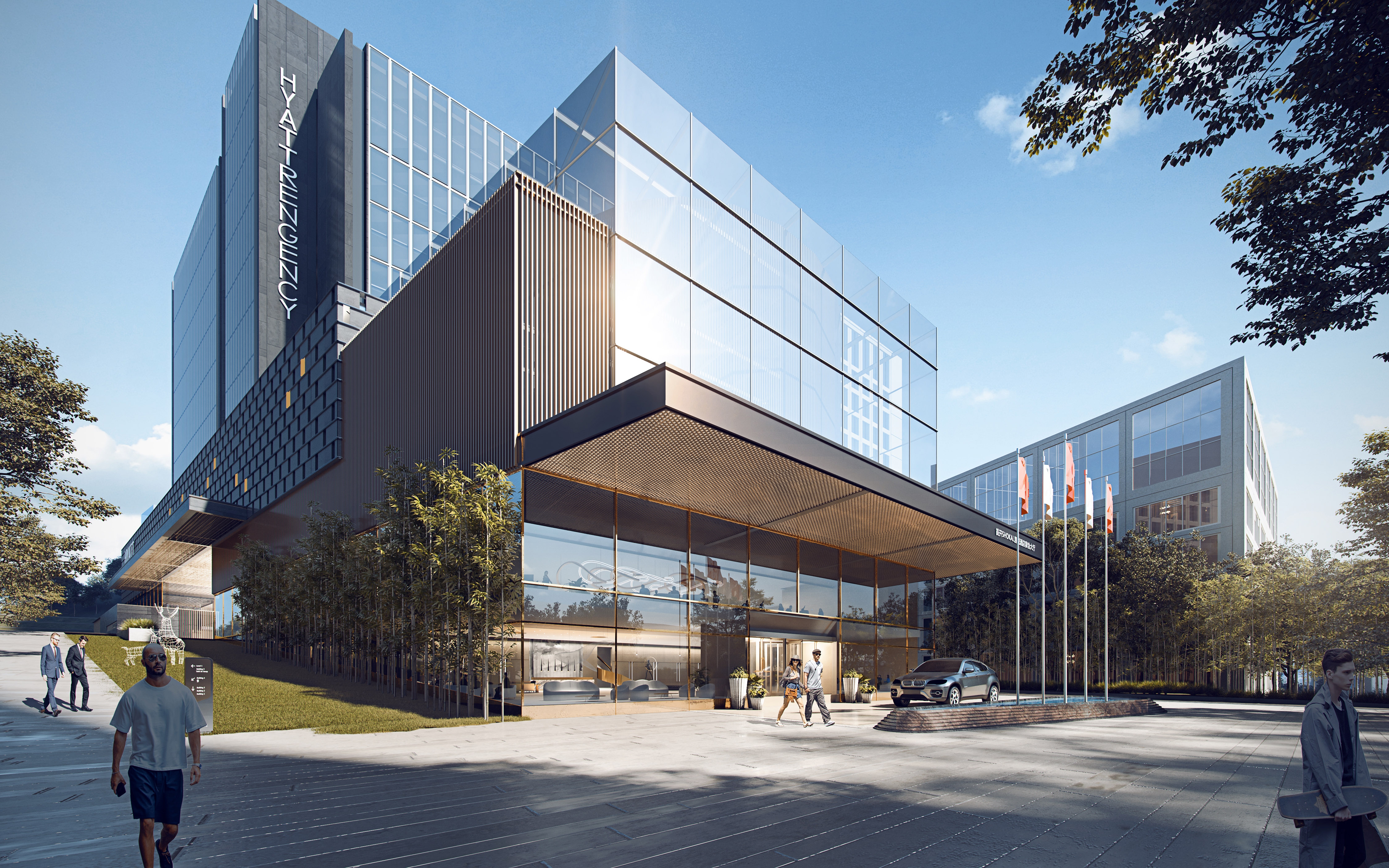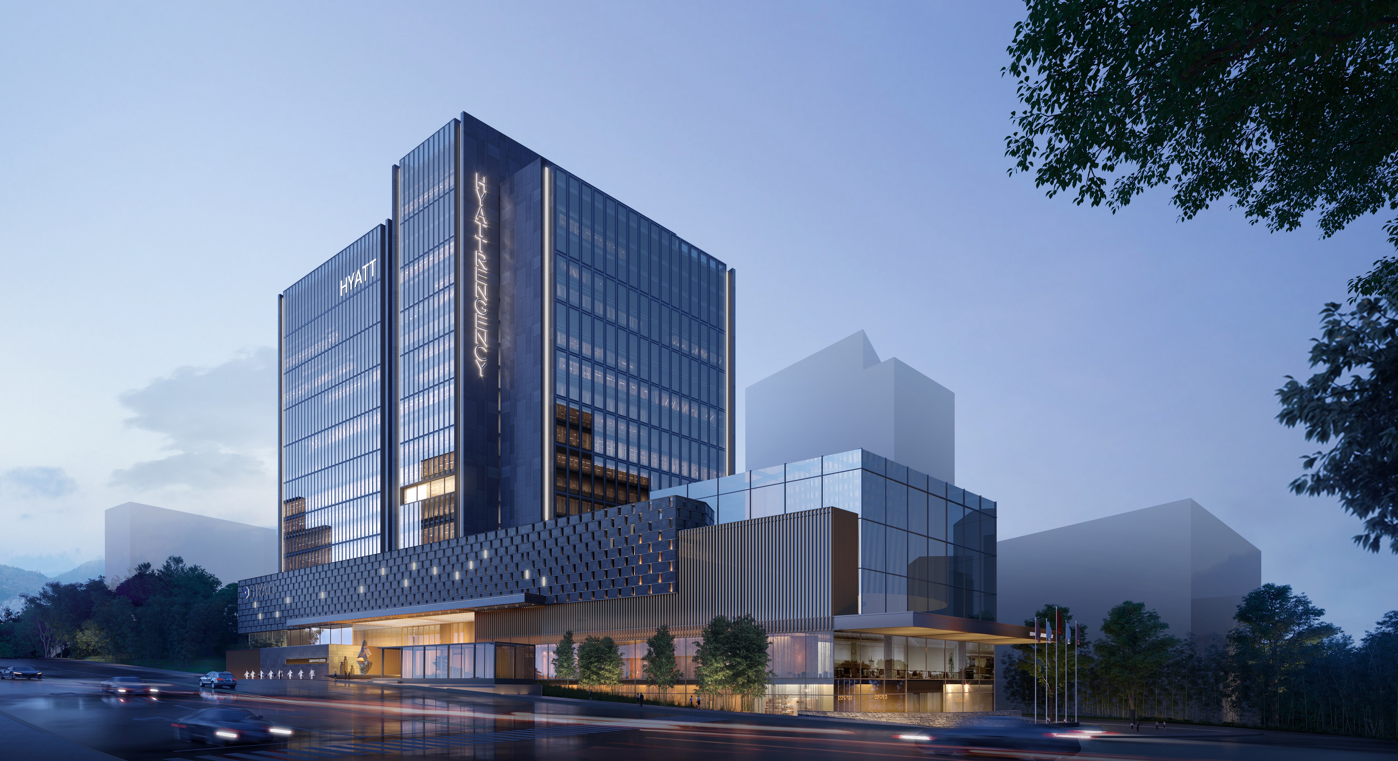This project excavates the characteristics of traditional dwellings in Guiyang that prefer the layout around mountains, and carries out the general layout with the design concept of “living around mountains”. The tower is arranged around the hill on the north side, while the roof garden is integrated with the hill landscape, forming a sense of the residence surrounded by nature.In the facade design, we pursue clean block cutting, and the material color is dark gray, which submerges the glitz of the city, and at the same time, there is warm and comfortable wood color embedded among them. The entrance is more focused on the quality and luxury momentum.In detail, we emphasize the design principle of implied rather than revealed, simple and remarkable.