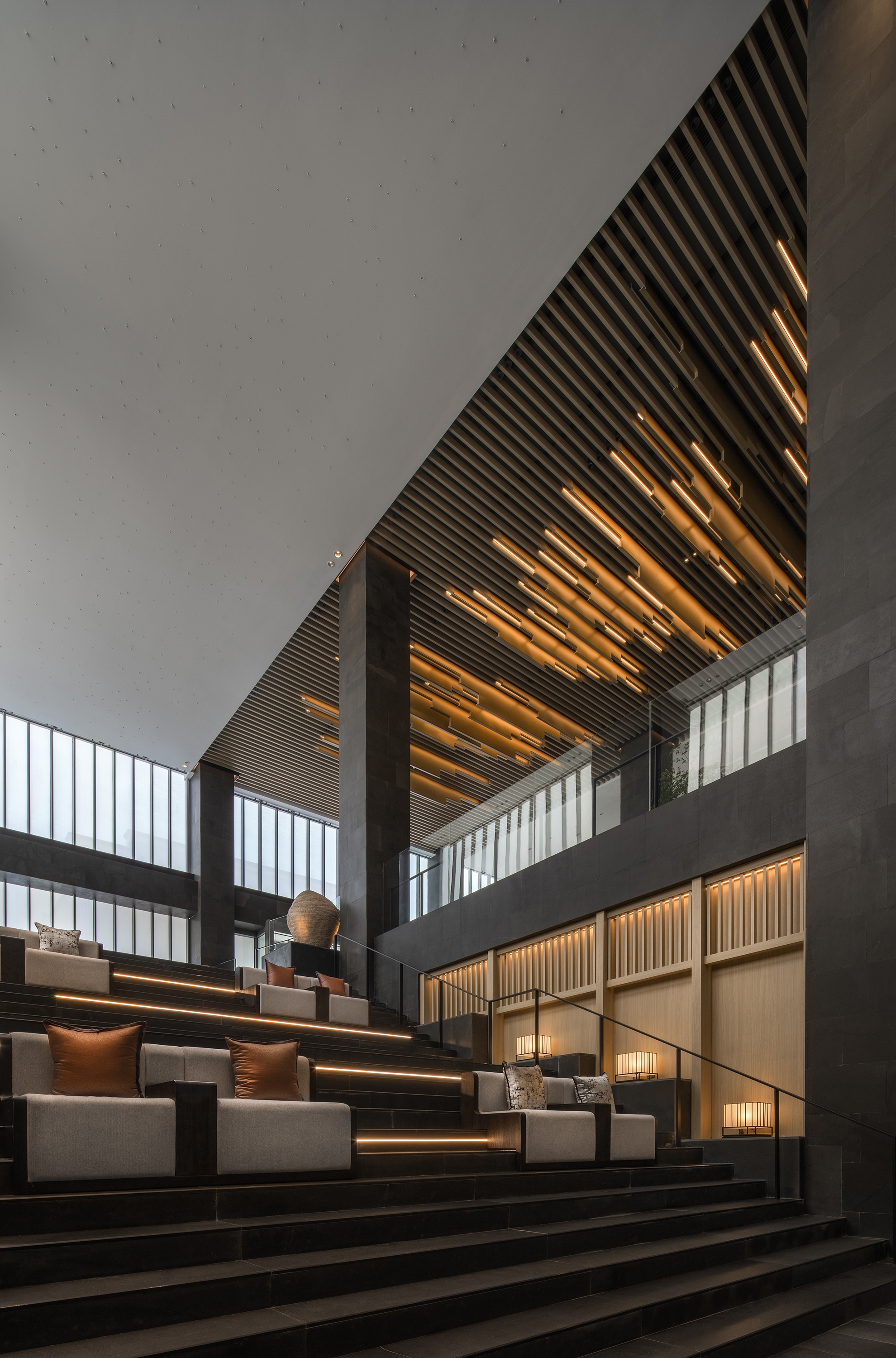 WYNDHAM DONGRONG HOTEL is located in the south of Yixian County, next to Zhangshui River. It is connected to the Hongcun Tourist Attraction in the east and Xidi Tourist Attraction in the south. There is no doubt that the location of the hotel has laid the cornerstone for subsequent operations. After in-depth analysis of the location and regional culture of the hotel, the designers put forward an integrated architectural, landscape and interior design solution that integrates localization and experience. They also put forward from the perspective of hotel business operations: "Hotels are not only on the way to travel the place of residence can be a destination for travel."