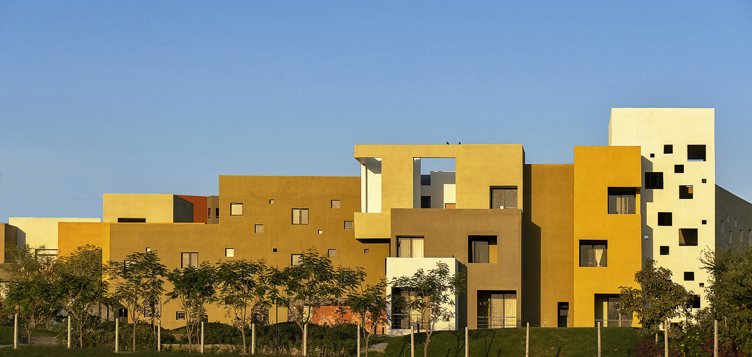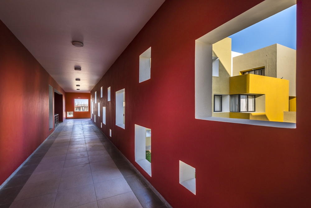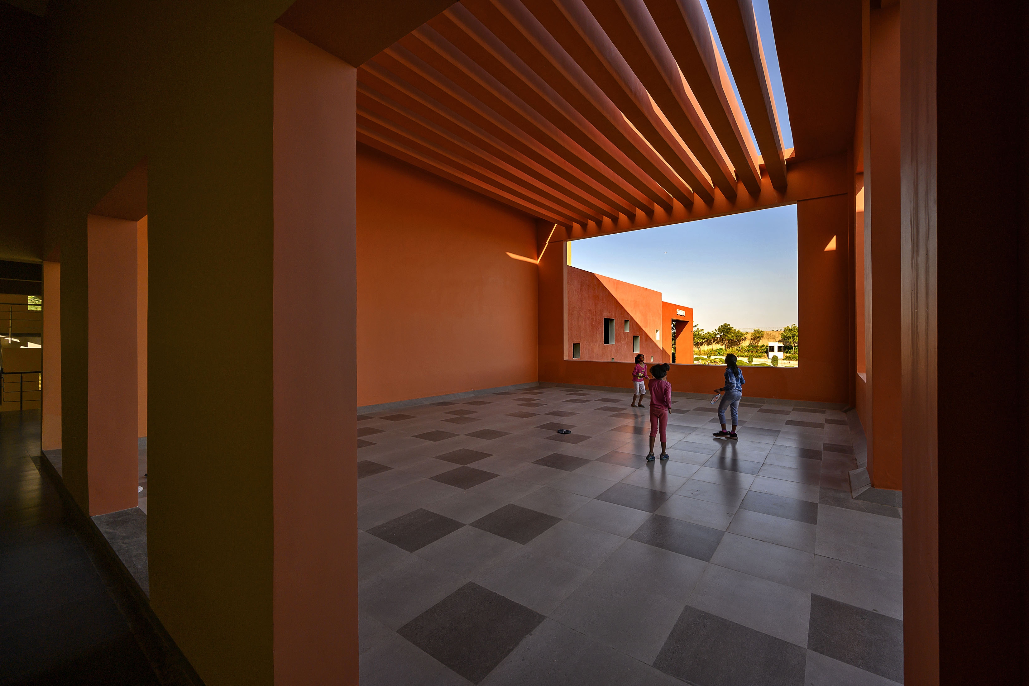 Ras houses follow the organic nature, interspersed within the existing contours, a series of low-rise interlocked built volumes amidst open courtyards and landscaped gardens create 61 guest-house, 47 hostels & 18 studio-apartments. Deeply recessed windows, open and sheltered courtyards, naturally & cross-ventilated circulation spaces & living spaces contribute towards reduced heat gain and naturally cooled interiors. Color plays an important role in differentiating volumes as well as identifying circulation spaces interestingly while alluding to the colors of the region.
