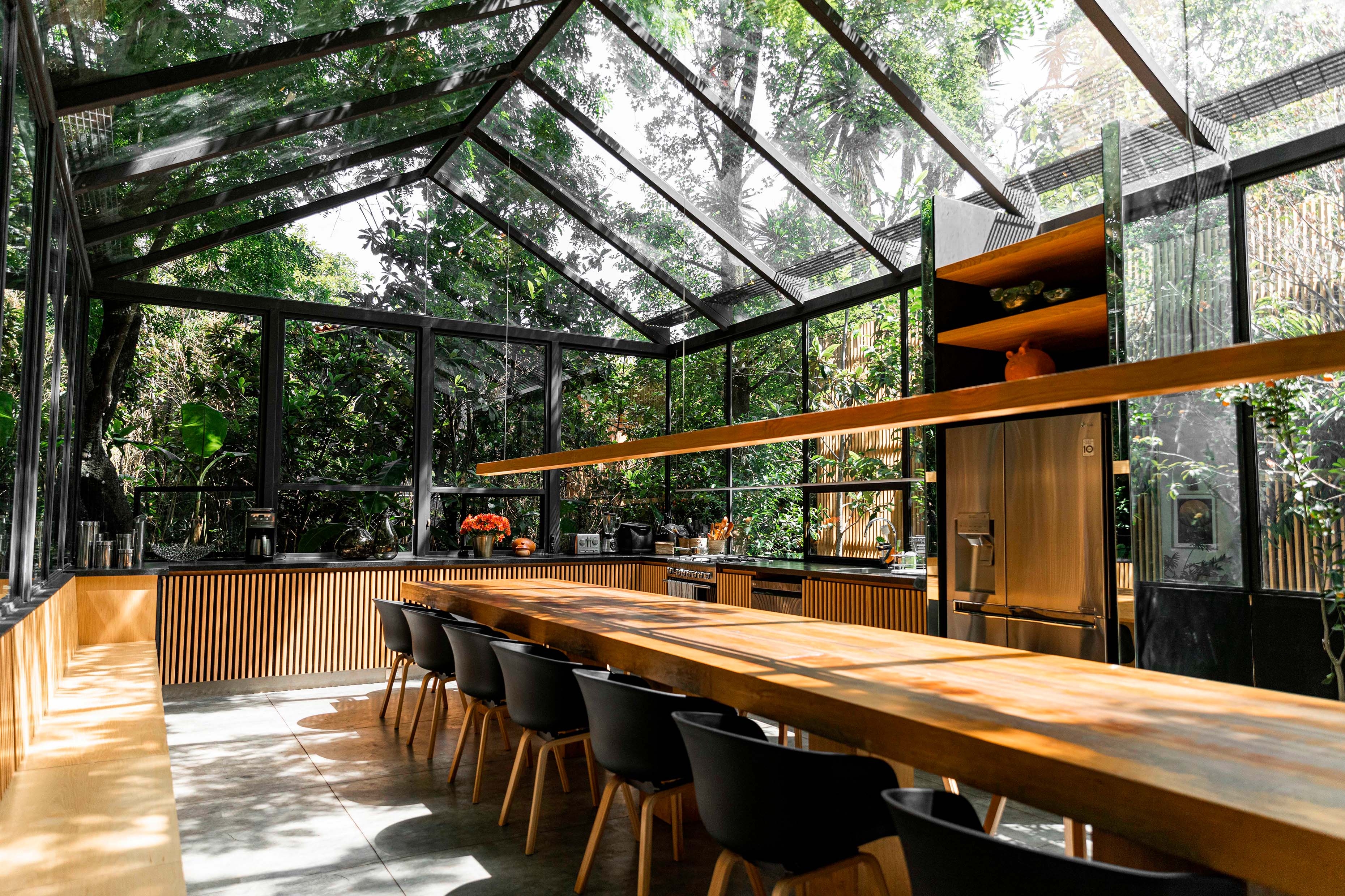Built upon a single story, the house is made up of a series of flexible volumes that are divided by open spaces including the main circulation, several terraces, and a large social area. In this way, indoors become outdoors, achieving a lasting close contact with nature for residents.