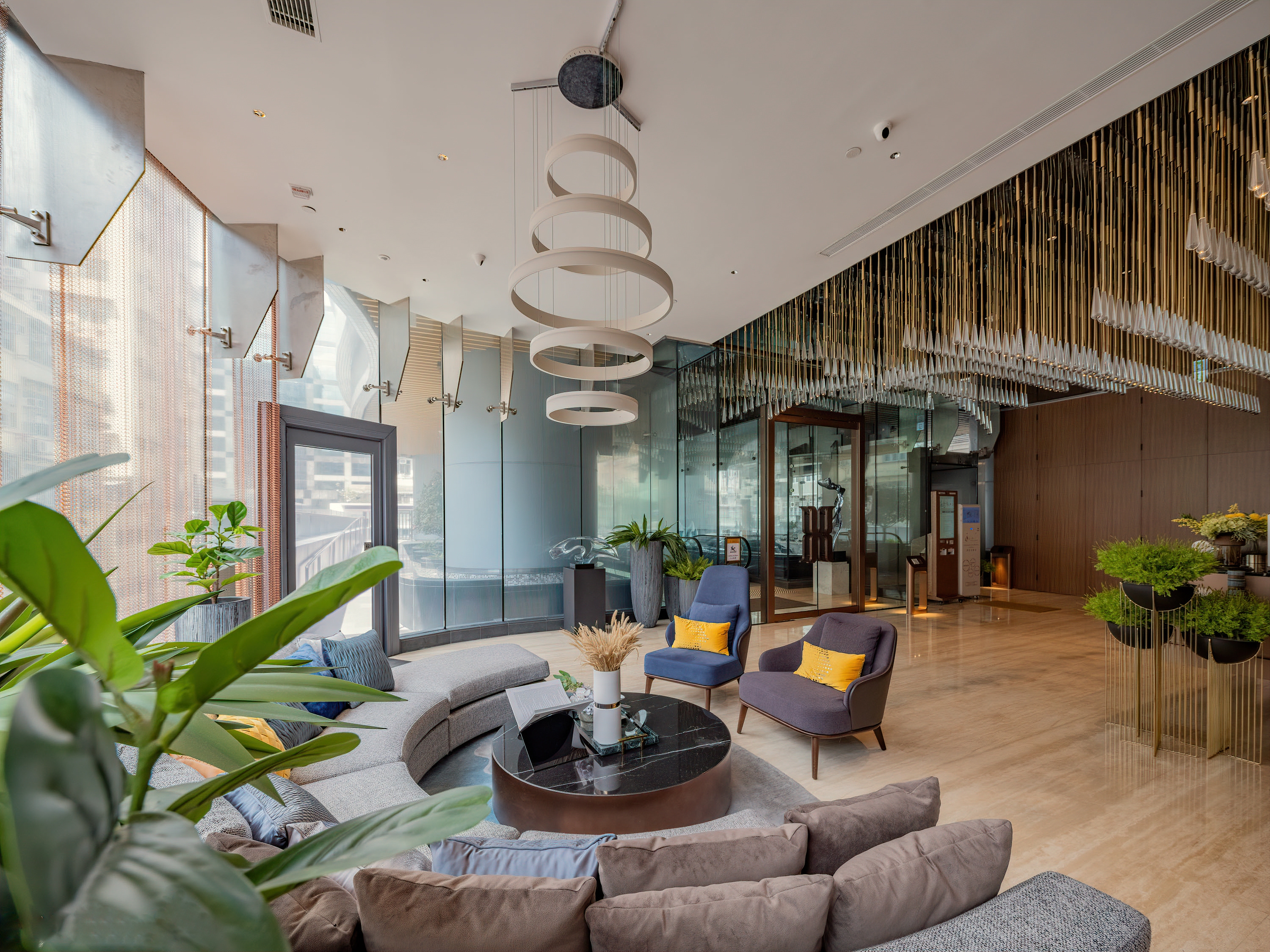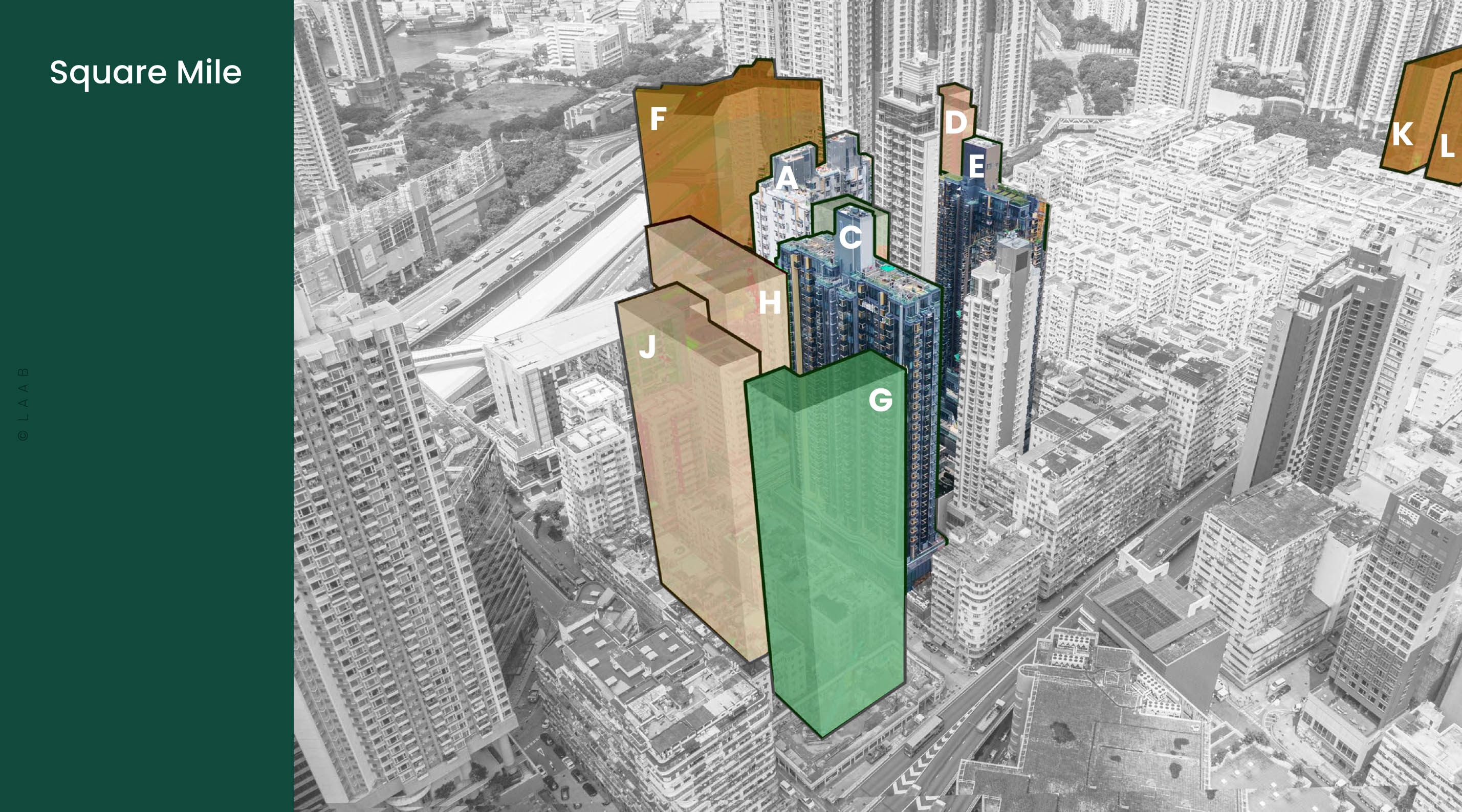 Square Mile is a major urban renewal project in Hong Kong, which is being developed in phases. At lower levels hosting most clubhouse facilities, it features a curvilinear architectural design.