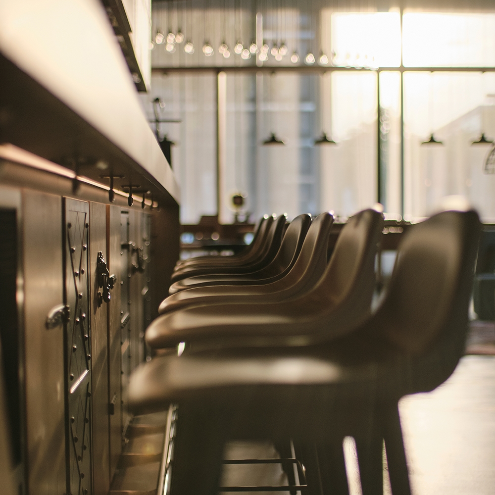 The bar is the heart of the open-plan public areas and also has a concept shaped by insider city knowledge. In Bern, many clubs are below ground rather than street level due to architectural and historical circumstances. Access is gained through old basement trap doors on the street, creating clandestine appeal for nightlife fun. The Moxy bar’s cladding replicates typical trap doors, while natural finishes support the ambience and quirky accents reflect the brand’s personality.