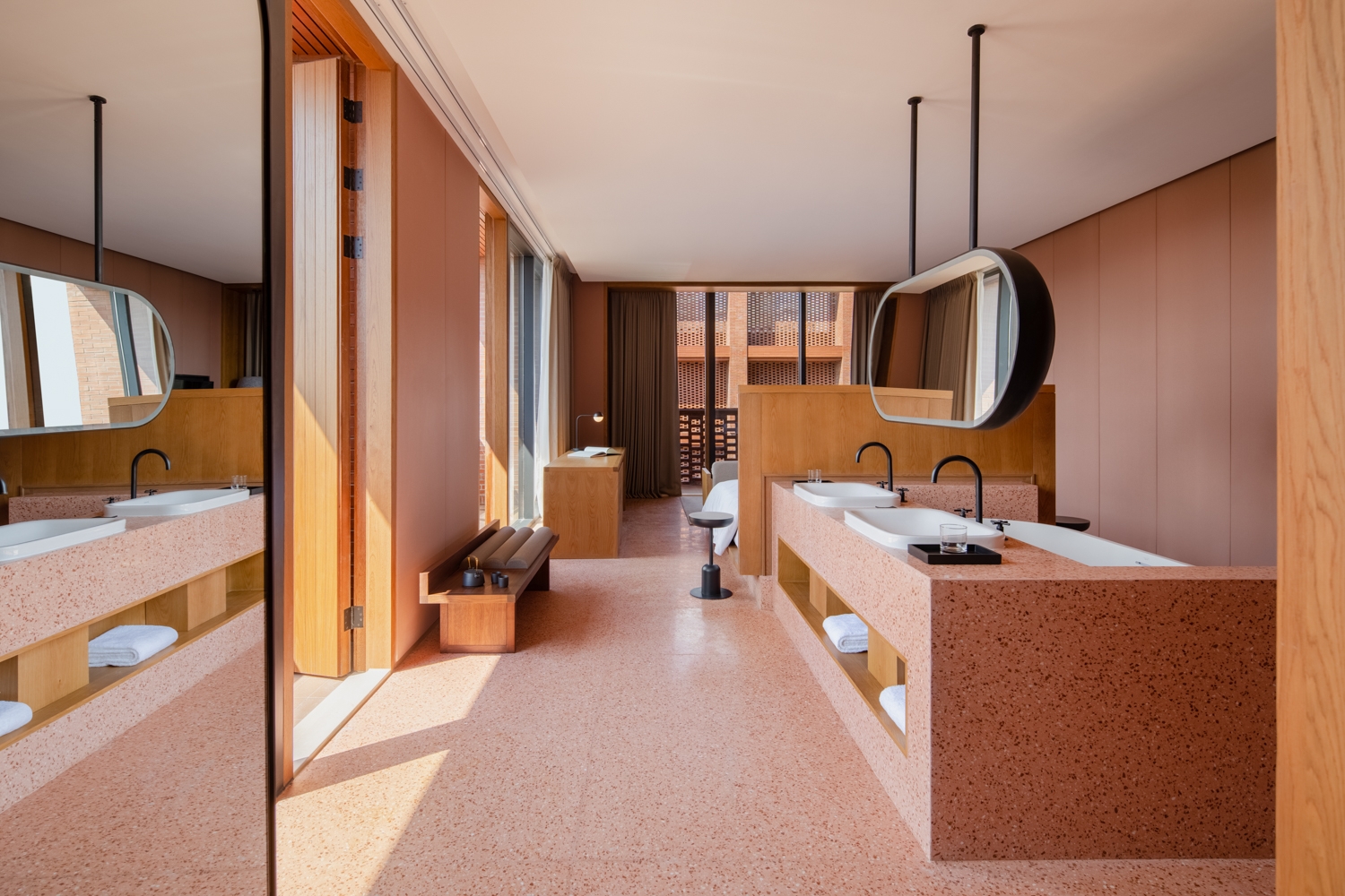 The project, named “The Road of a Fascination,” is a story of a journey: Like the long and fascinating life of porcelain, a journey toward the unknown, the unexpected, an urge to find the truth, and all the encounters in between. With this in mind, the physical spaces are divided by themes that feature the porcelain journey from China’s origin, eventually spread and influence in the broader world, and return to its native home. The different spaces are the origin (Lobby), the creation (Lounge), the discovery (Ballroom), the fascination (All Day Dining), the appreciation (SPA & Pool), and the return (Guestrooms). Each space explores and uses ceramic differently, pulling out different colors and textures. Each area is a piece of the journey.