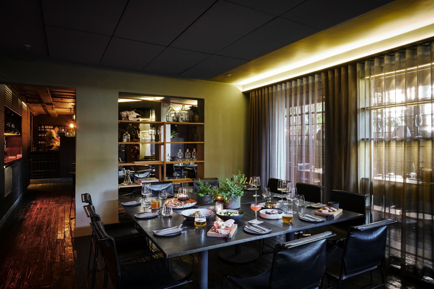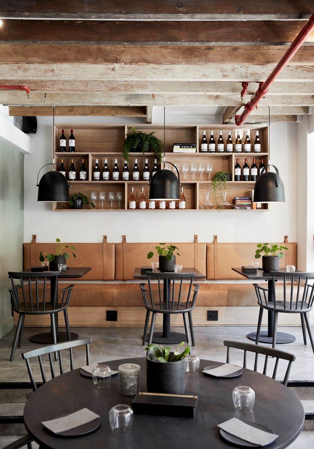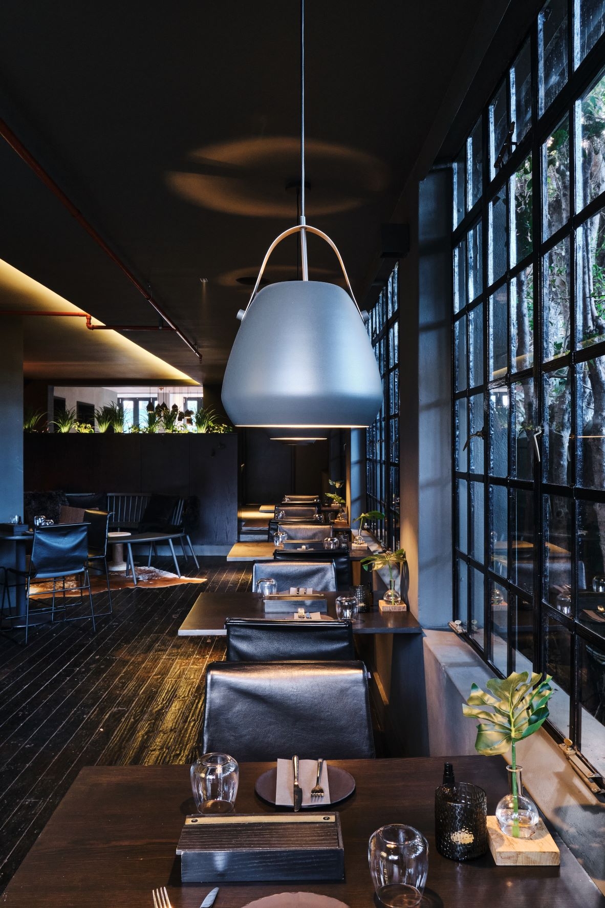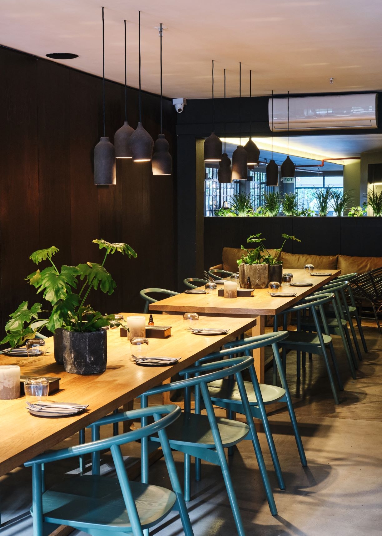 Taking its cue from minimalist Scandinavian design, ëlgr is dressed in a soothing palette of charcoal, black and pops of sage green. It’s an ultra-instagrammable visual feast that takes it up a notch by integrating different dining hubs within the restaurant. There’s a straight-off-the-street, sun-filled spot with leather banquettes and easy-on-the-eye curated displays, then diners are drawn deeper into the moodier heart of restaurant past beautifully dressed tables with slate tableware until they emerge into a light-and-plant filled courtyard, complete with a bar, corner sofa, café chairs and tables and a pizza oven. It’s urban, ultra-social and oh so easy on the eye.