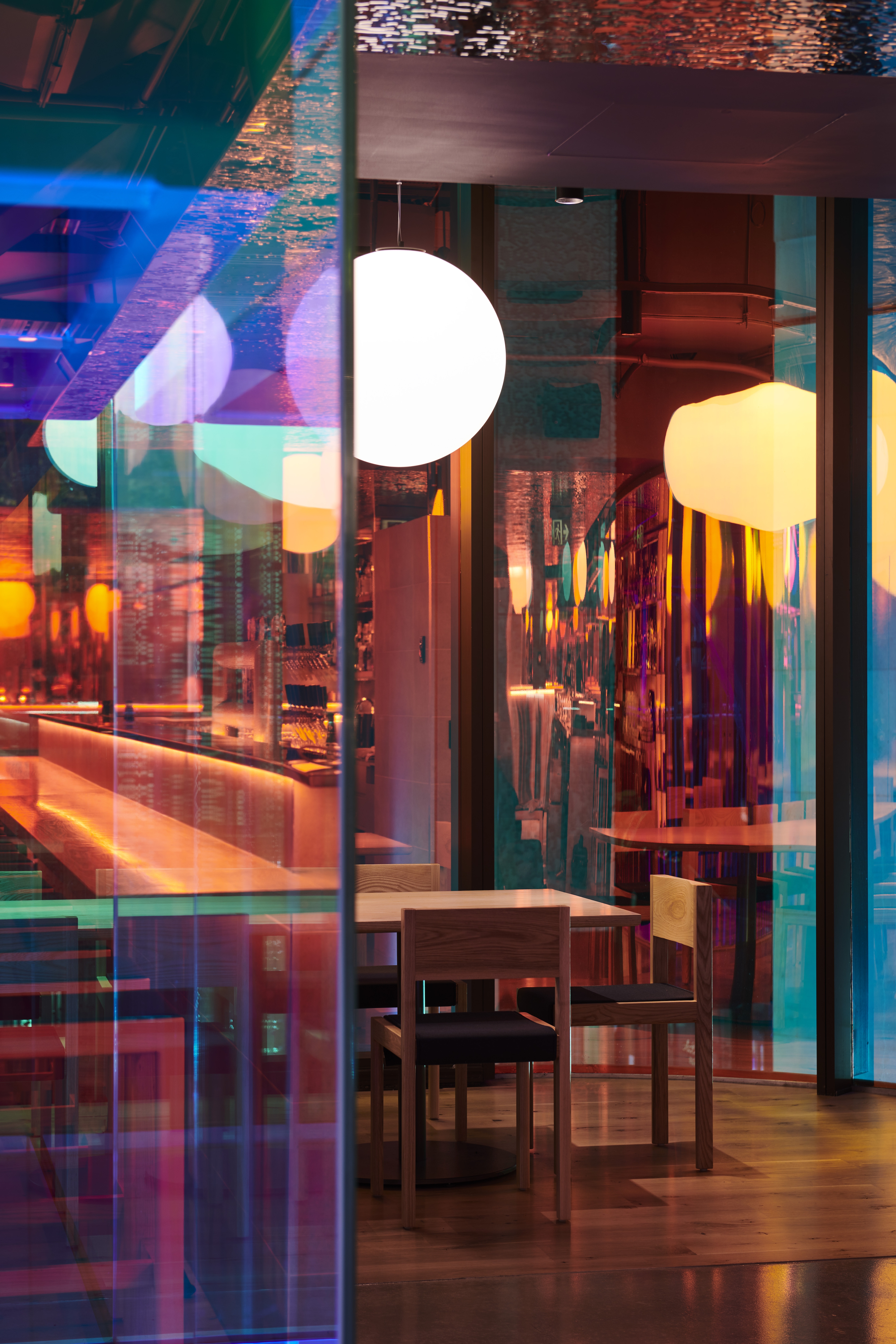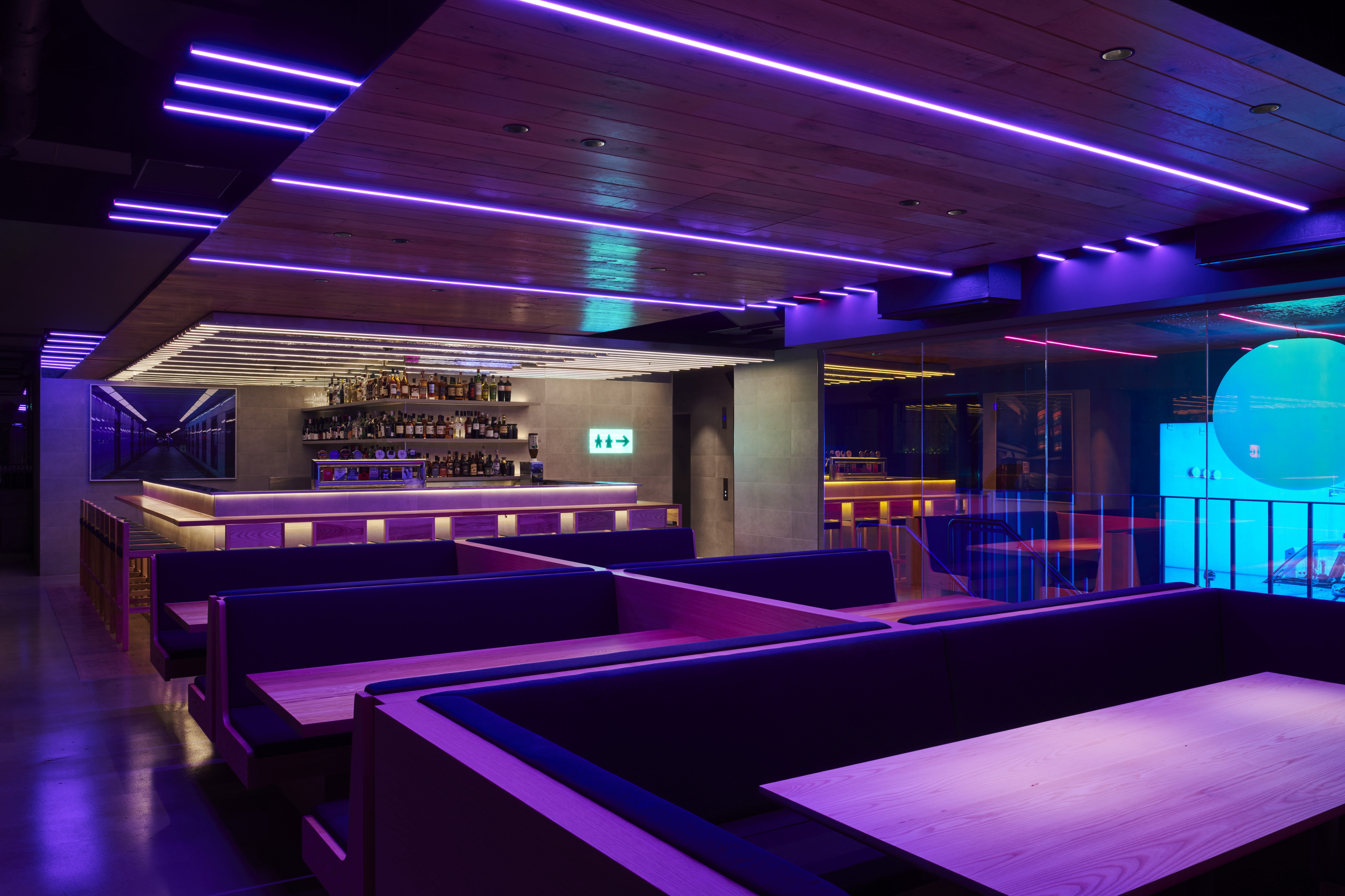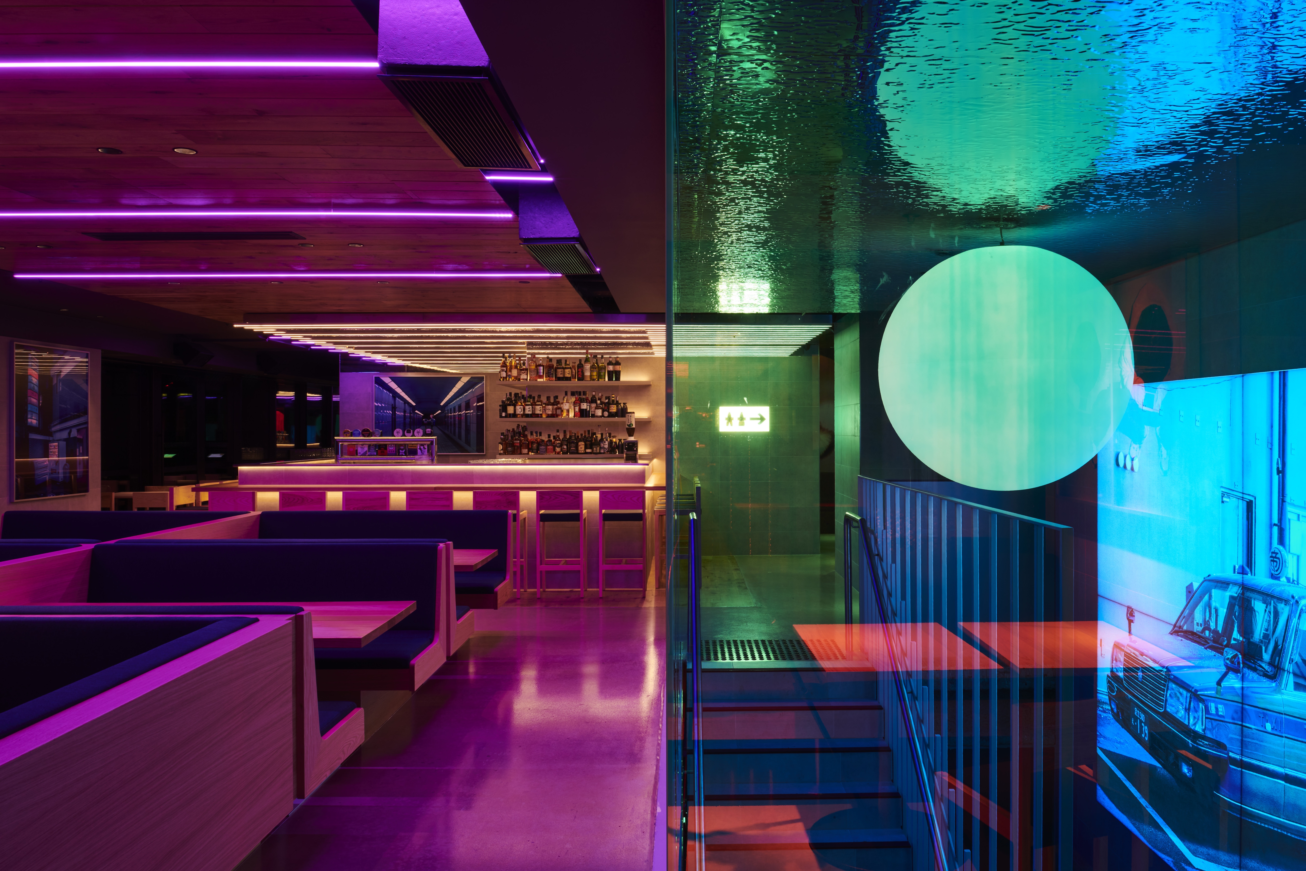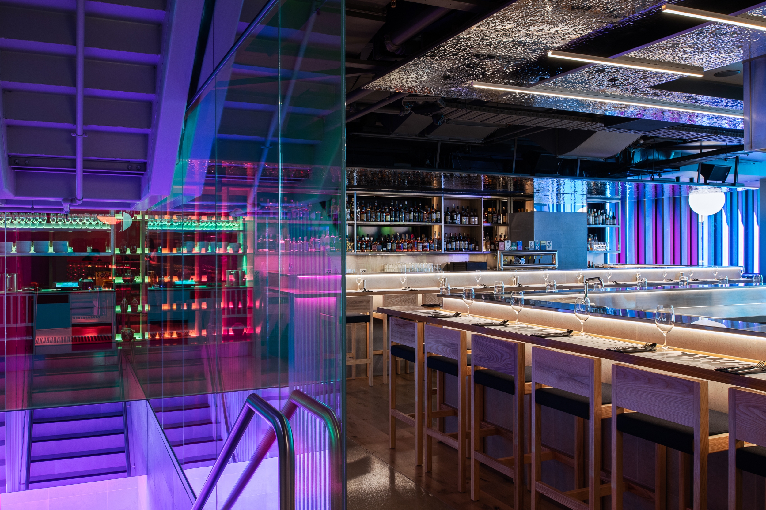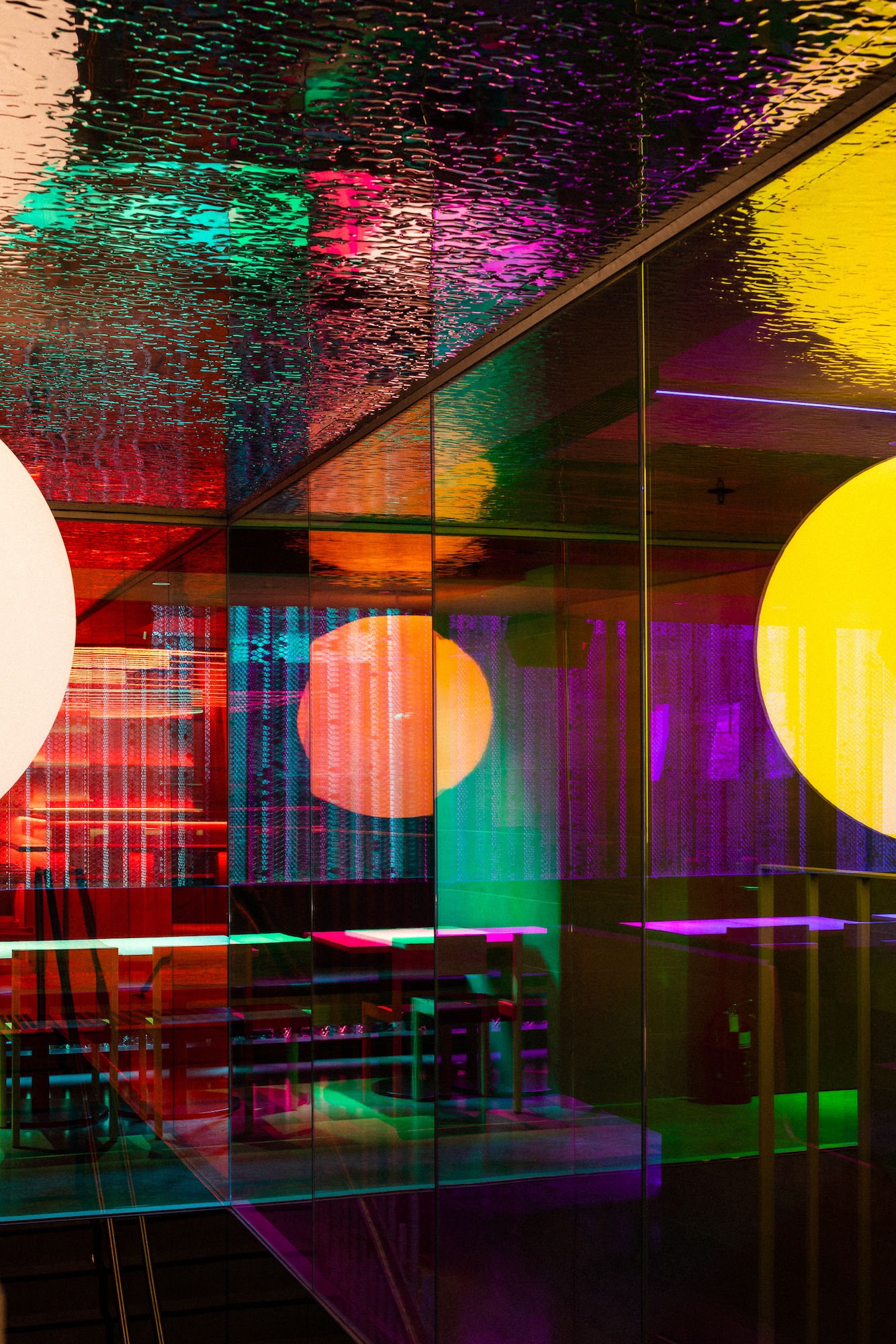 Your sense of disbelief is suspended from the moment you enter the restaurant on the ground floor, from it’s provocative and LED and neon lit entrance to the assault of sound and light. This restaurant is all about energy.