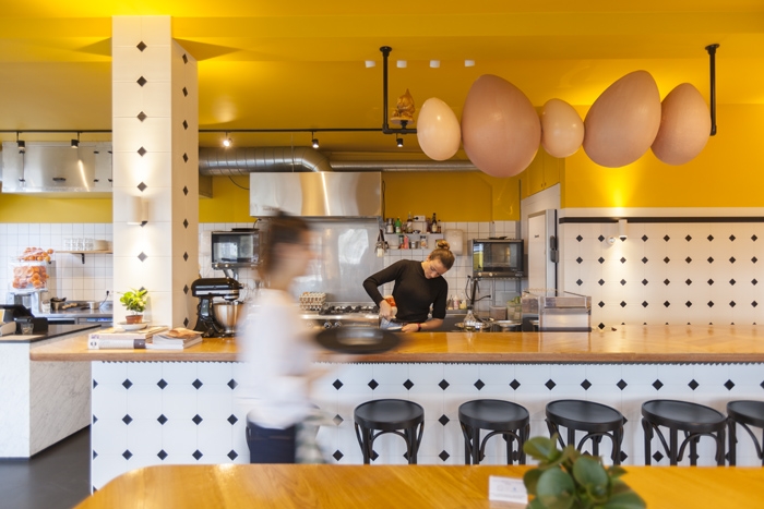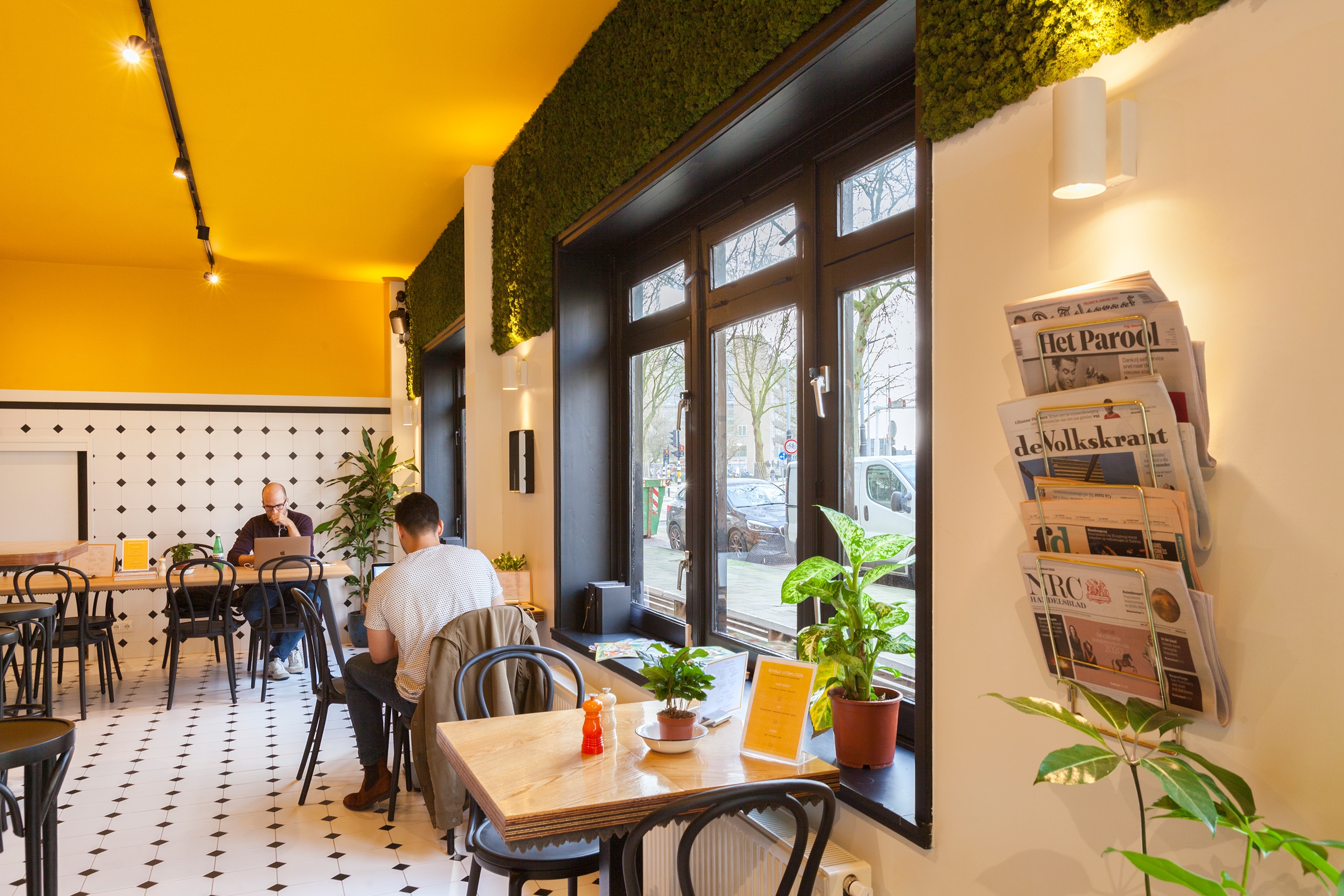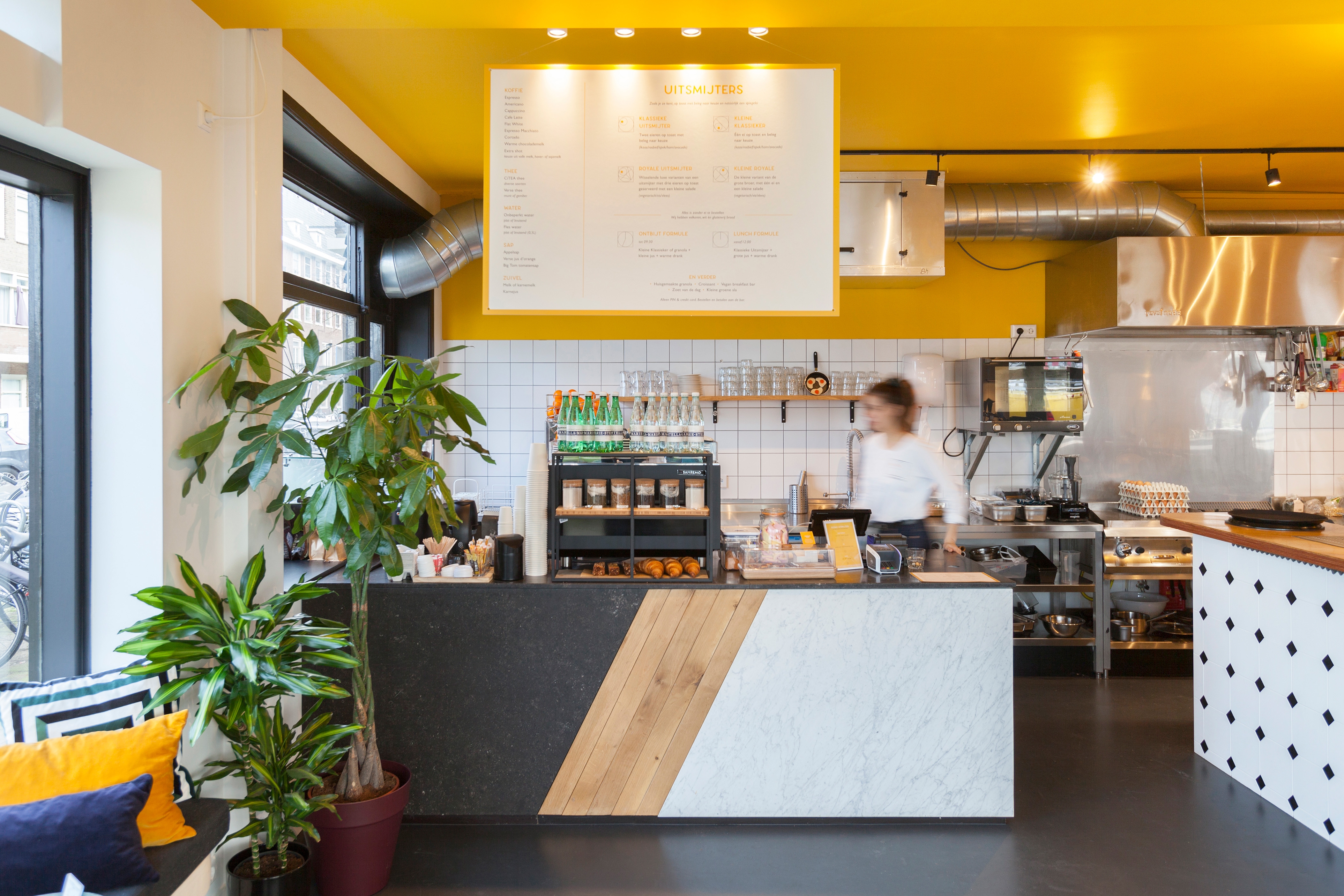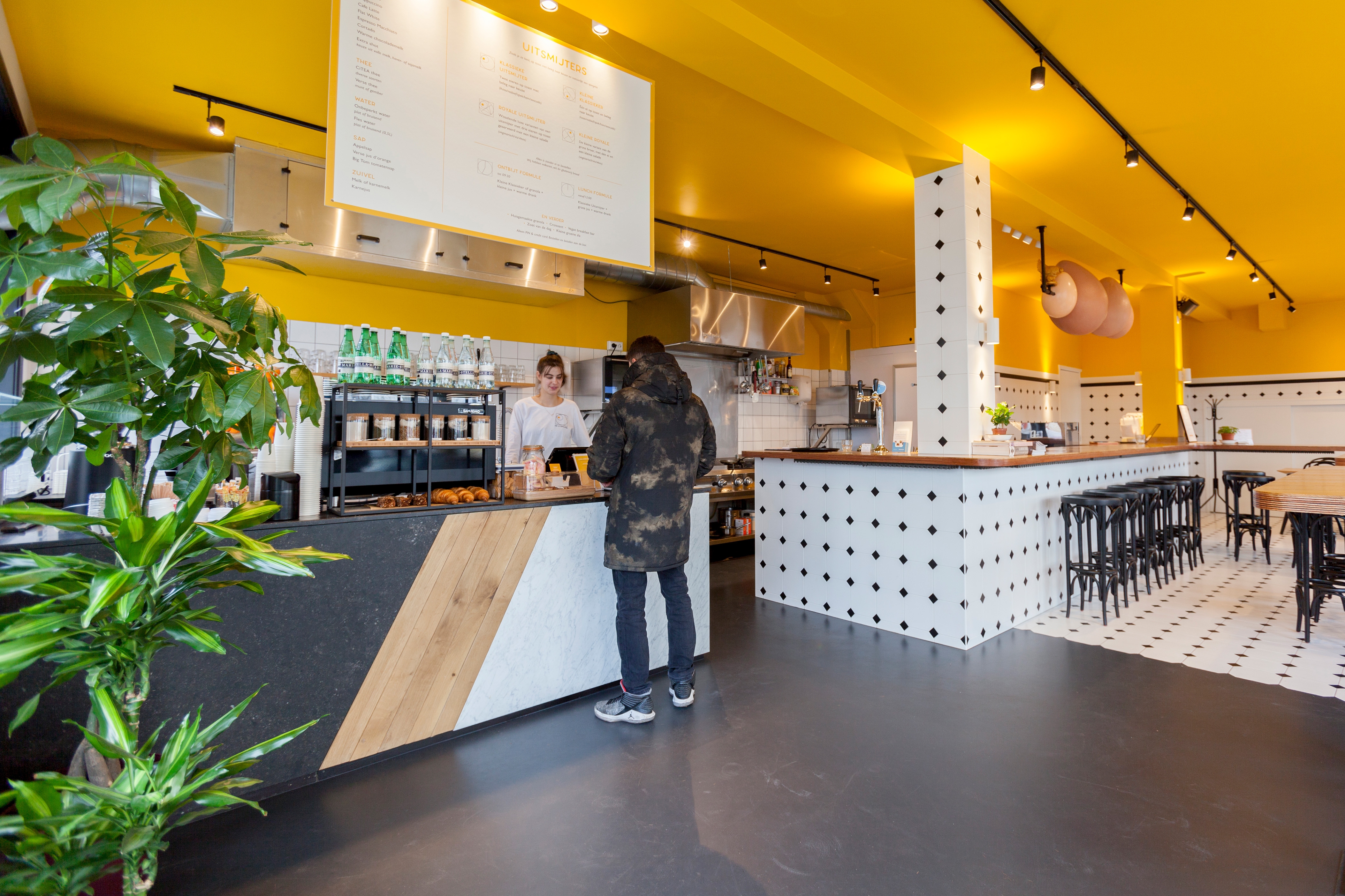 Order at the bar and pay directly. If you are in a rush, eat your uitsmijter standing at the bar, just like in France or Spain. If you want to stay a bit longer and watch some show cooking, you can take place in the ‘kitchen’. If you need a bit more quietness you can walk into the back part of the café. Work, meet or relax. Just eat at your own pace, it’s up to you!