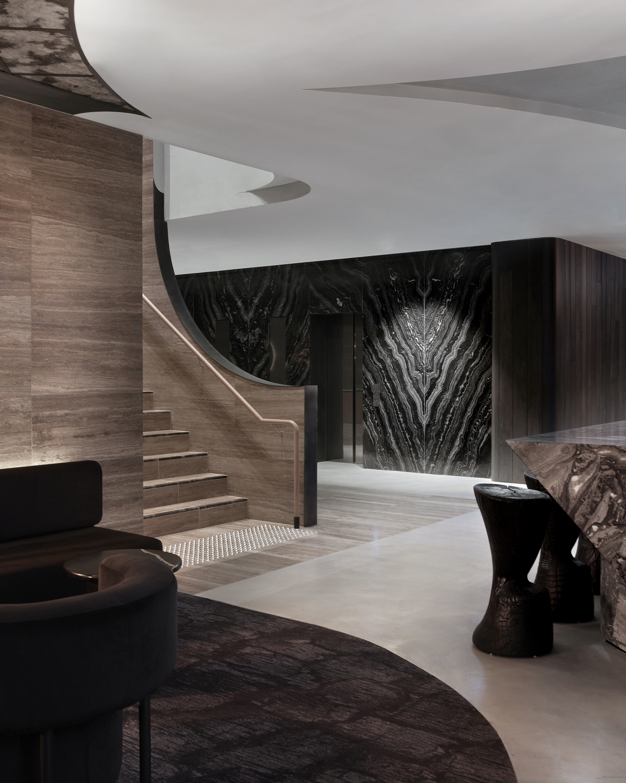 The design merges a variety of aesthetics from art deco, art nouveau, mid-century & brutalism to create a future contemporary design language of luxury & timelessness.