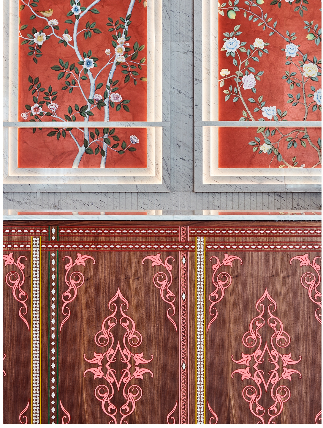 The multitude of elements that make up the space, majestic, grandiose or understated and discreet, operate in separate lanes, merging frequently into one immersive ensemble to create the Nisrine experience.