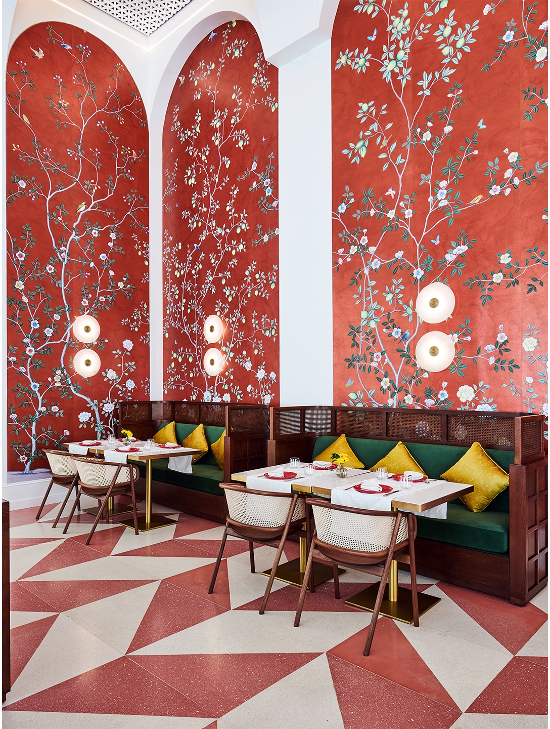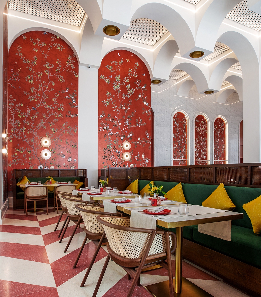 Nisrine forms a narrative arc through the visual representation of nostalgia, family traditions and the velvety warmth of Lebanon. We designed the space in the likeness of our enchanting country on the Mediterranean, its dreamlike shapes, welcoming curves and intense hues.