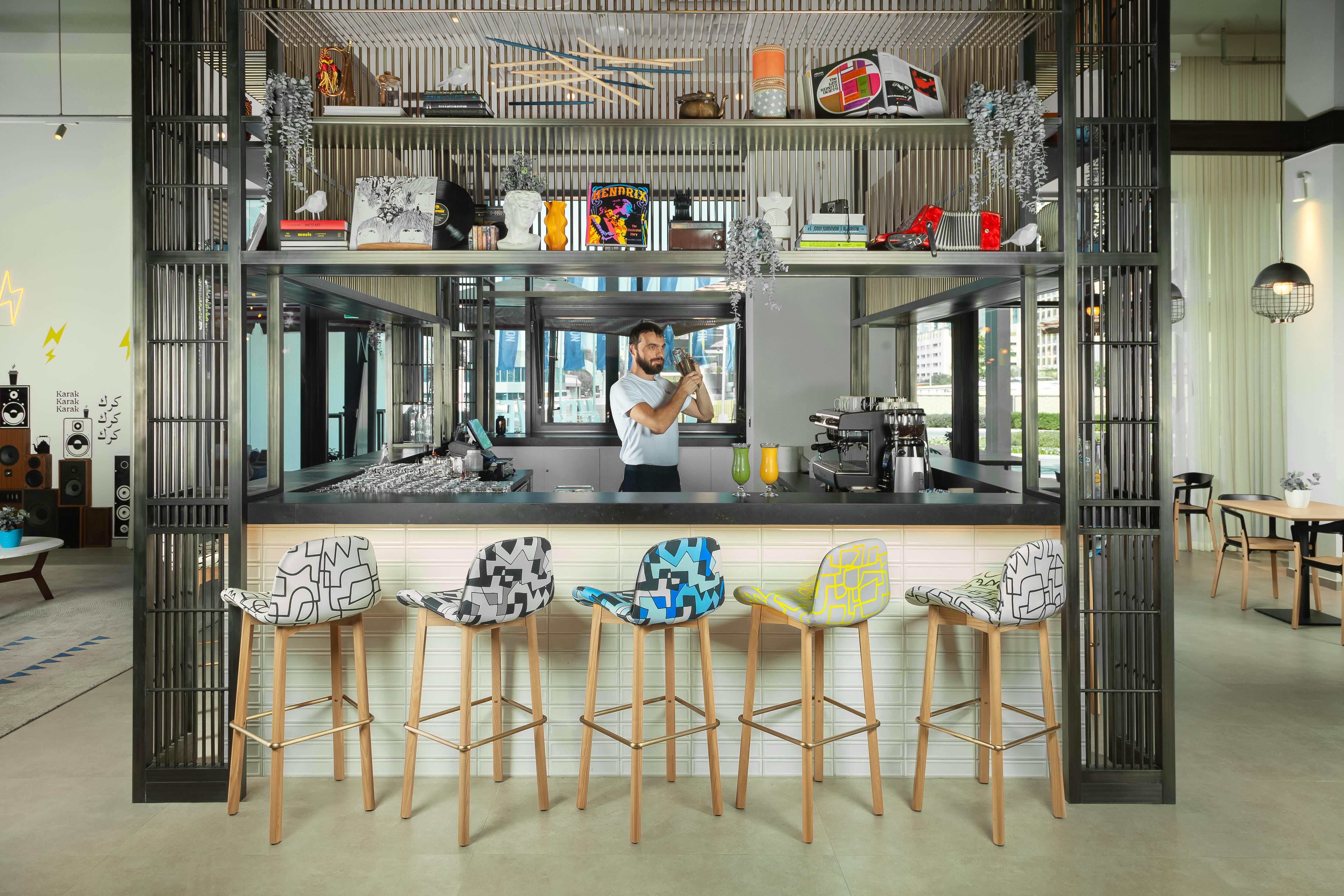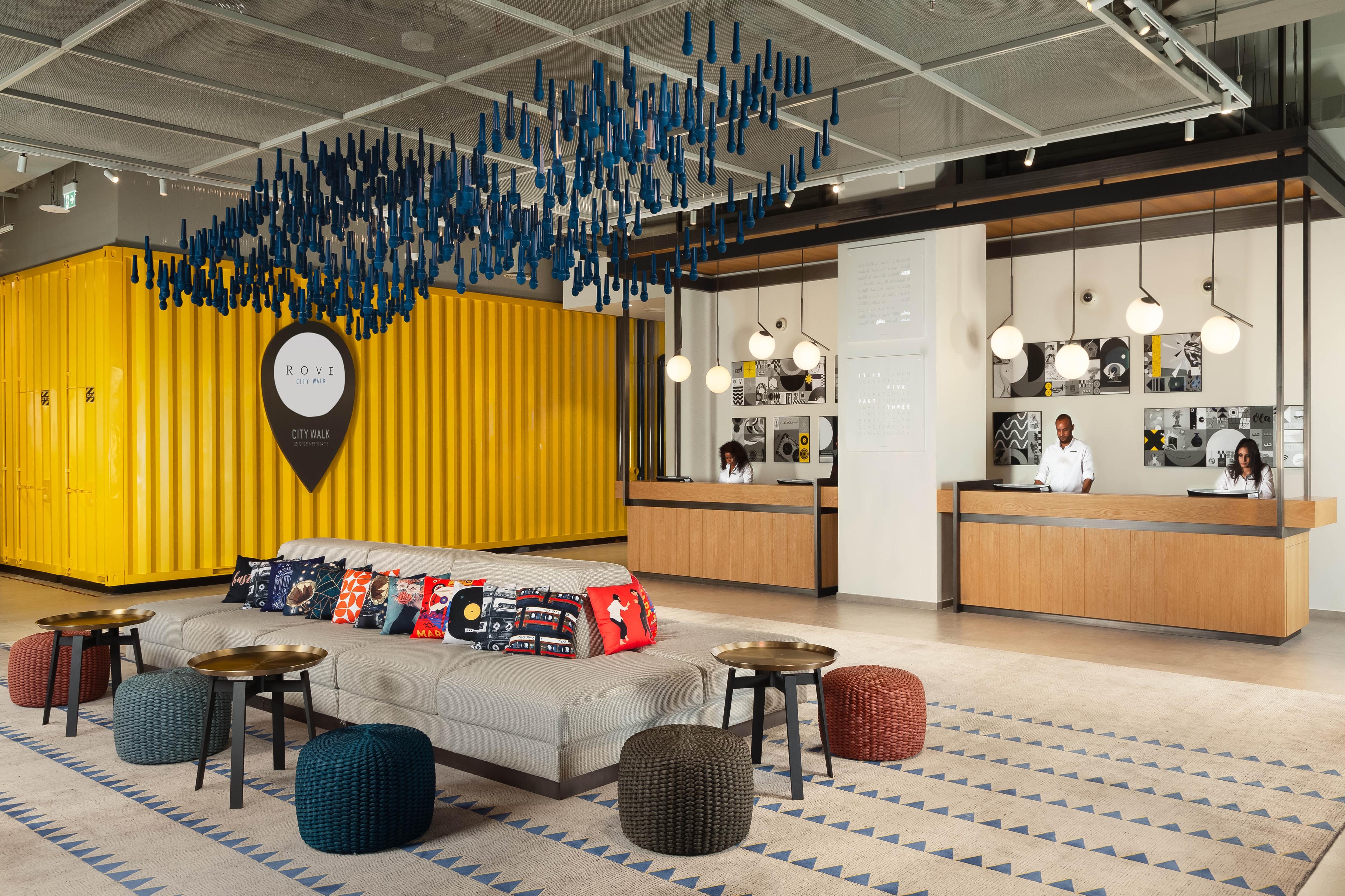 The second of 3 Rove Hotels with interiors by MMAC Design Associates opened its doors at the City Walk development by Meraas. This 3-star hotel carrying 566 rooms is perfect for anyone heading to a show in Dubai’s Coca Cola Arena. Taking from its location, the artsy theme was surrounded by music. MMAC took the brand brief and were inspired using instruments, a collection of vinyl’s, references to regional and international artists, both past and present. Creating a guest welcome experience incorporating a DJ truck at the entrance which gives local DJ’s an opportunity to showcase their talent. The unconventional bohemian tones of the seating elements are lined with eclectic cushions that capture the playfulness that is associated with the Rove brand. Oversized wall graphics, accessories and quirky art pieces pair with polished concrete floor, the chalk white brick and the blackened steel for the perfect balance. “At Rove, we believe in offering Rovers, the modern global nomads, a fun, fuss-free and affordable accommodation while respecting our planet. By cleverly designing our latest Rove, MMAC Design has helped us make our much-loved accessible to all in one of Dubai’s most premium