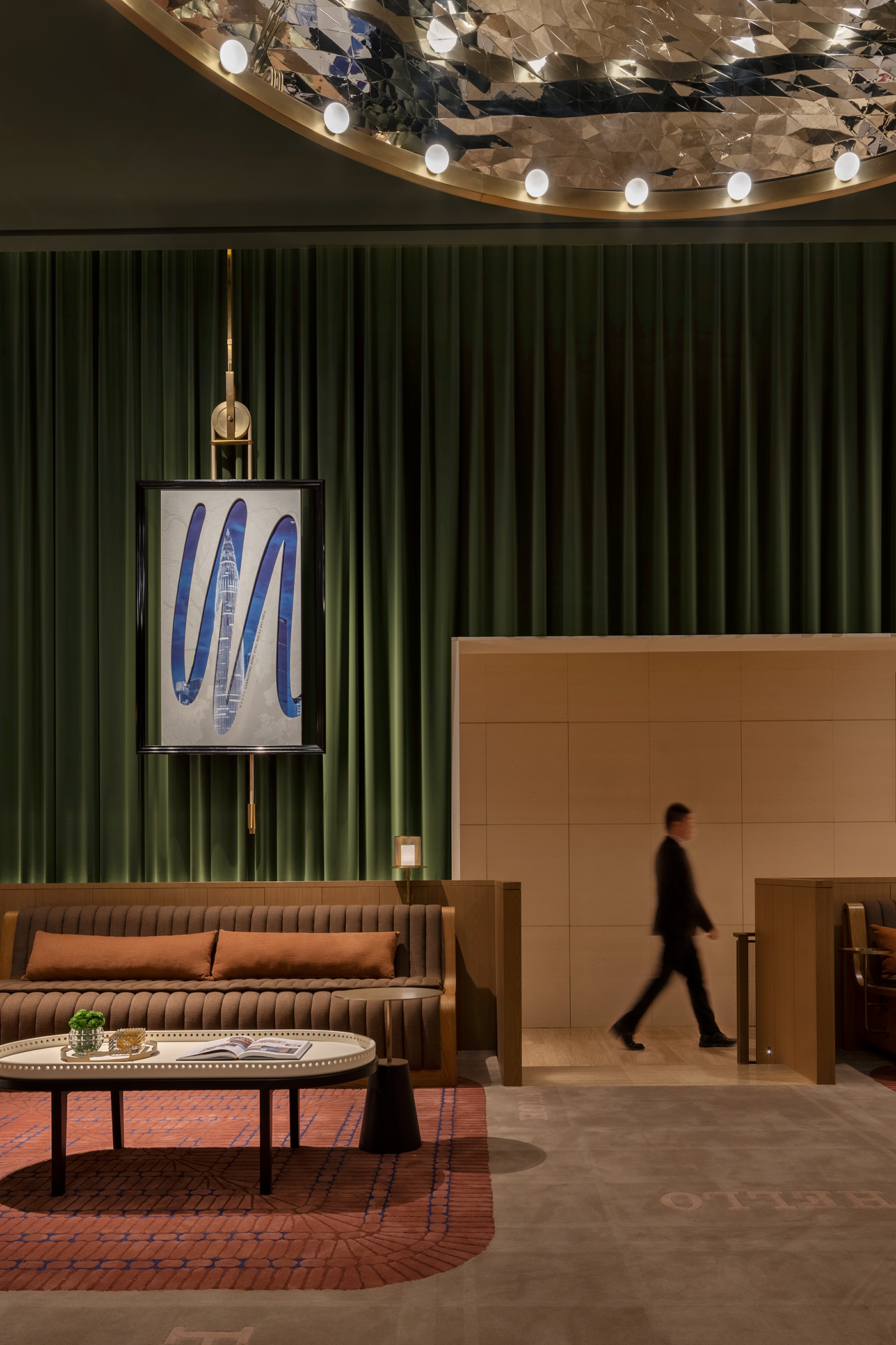 The design of the hotel combines the positioning of Shenzhen as an international metropolis and the brand culture of the hotel, and extracts the lifestyle of Shenzhen. Taking "Metropolitan Theatre" as the theme, the hotel creates an environment different from the busy work scene in the office building during the day, and creates a happy and modern Metropolitan Theatre with the colorful life scene in the city. Through the capture of theater atmosphere to present a space with emotional infection, extract the classical elements of the theater, gather props and light and shadow sets to build a sense of story and scene, and create a dramatic experience space. Modern art and interesting drama blend, the space will combine the passionate theater atmosphere and brand culture, transformed into story clues into a situation in the city center, staged a happy song and dance drama about the colorful life of the Greater Bay Area.