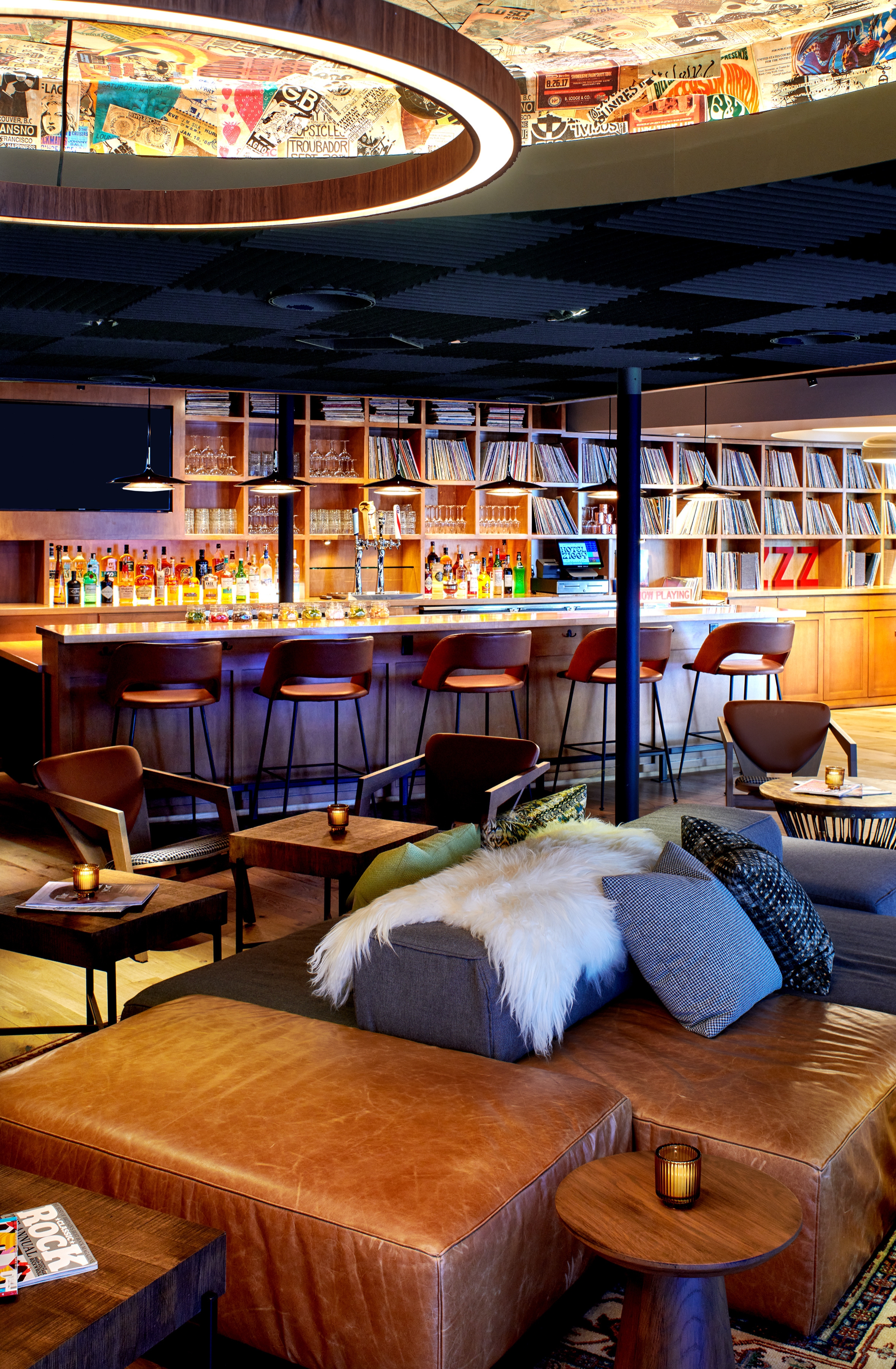 Hotel Ziggy and its modern counter-culture spin where music, grit and creativity, along with more than a little rock and roll history come to life. Embracing differences and challenging conformity, the hotels unpretentiously informal attitude encourages both guests and locals to come and hang out with a friendly mantra of ‘just be who you are’. The last standing rebel on and infamous Hollywood block, Hotel Ziggy is a fusion of cocktail lounge, pizza joint and lobby where the hotel guest’s check-in is a friendly and inviting bar lined with hundreds of vinyl albums. A garage door with glass windows partially closes off one end of the lobby for private events and to serve as a live music ‘pop-up’ venue to support local musicians, inviting them to come and share their sound and offering them a space to rise above the noise. The commission was a complete repositioning of the hotel’s public spaces with the addition of 7 speciality suites and designed to celebrate the music legacy of the Sunset Strip.