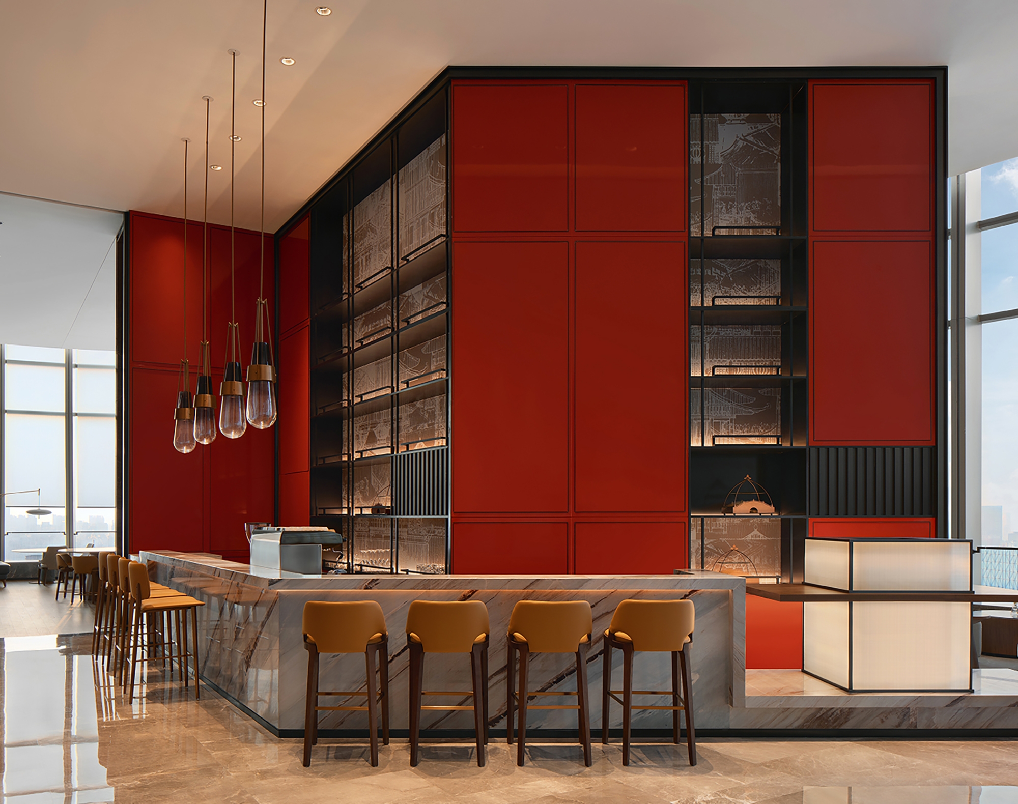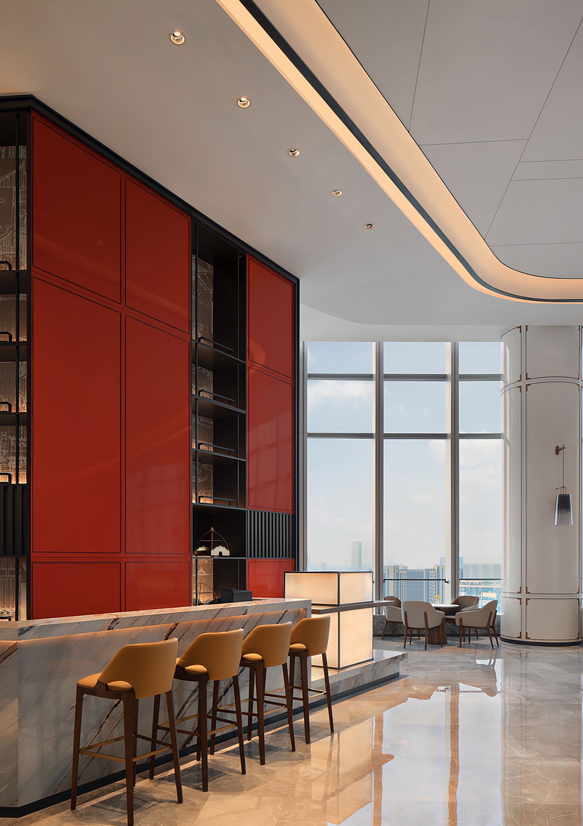 The hotel was designed by Interscape Design Associates and is located at the center of Hunan Financial Center in Changsha New Riverside City. The 241-meter building stands along Xiangjiang River, marking as one of the new landmarks enjoying the best waterfront view in Changsha.