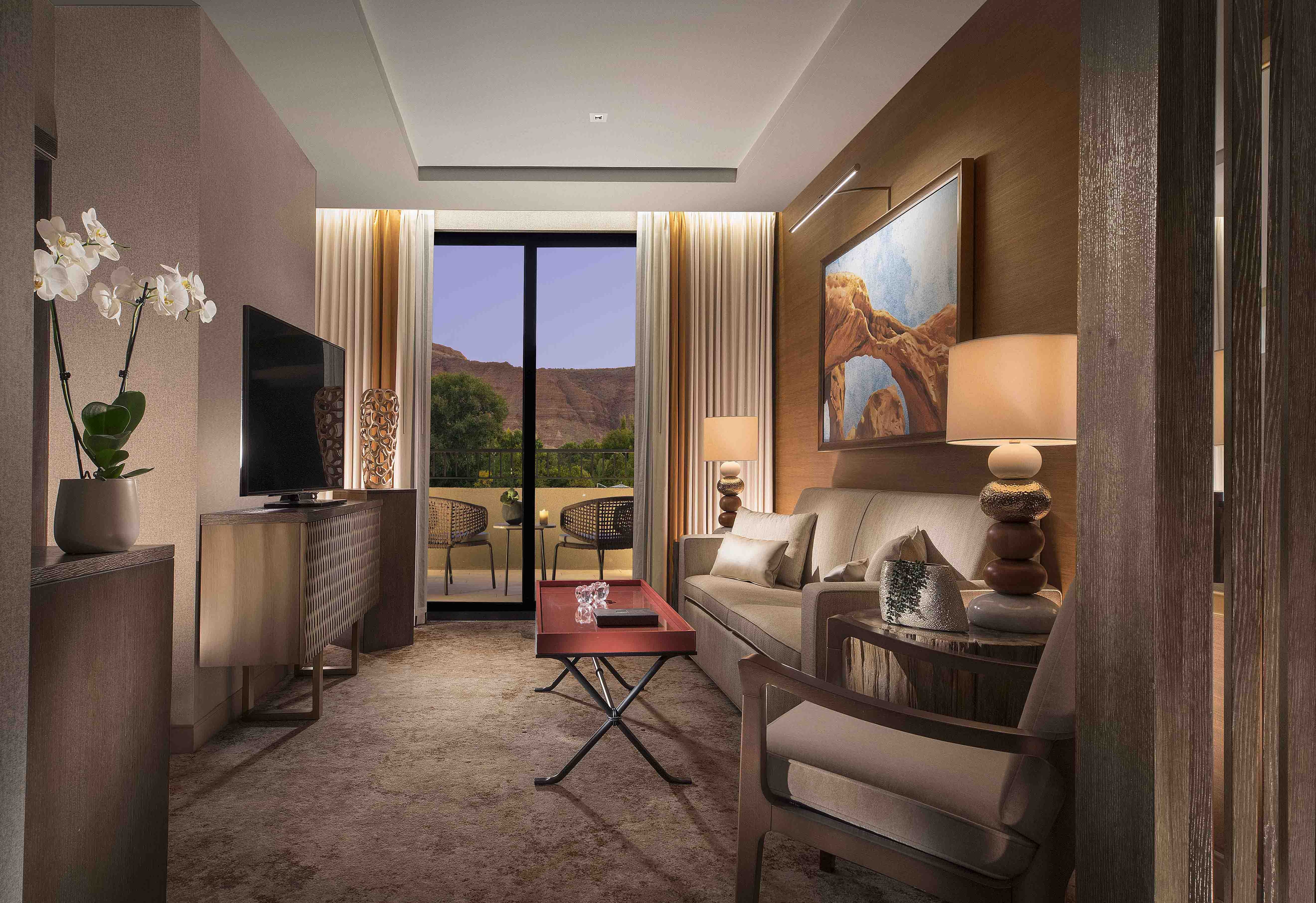 As the uranium capital of the world, Moab’s remarkable historical and geological era is on display. Sandstone walls and columns, derived from surrounding hoodoo rock spires, is the backdrop. A dramatic décor of elegant burnt hues, refined reproductions of petroglyphs, cerused oak finishes, and the pristine beauty of nature, becomes a retreat in this spectacular setting.