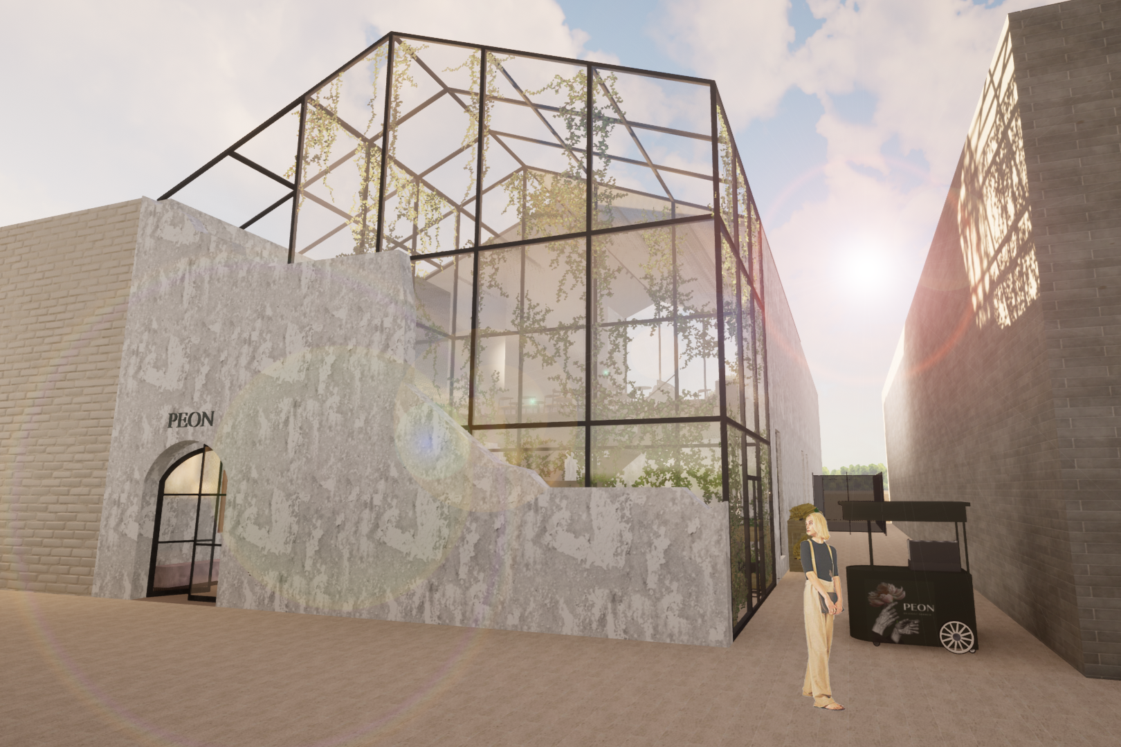 Ronnie Boekel is a true-blue Peony breeder from regional Victoria and a close family friend of the Bakker’s. I was struck by Ronnie’s charming down to earth nature while scrolling Joost’s Instagram page, where he frequently uploads spontaneous videos of Ronnie. The juxtaposition between Ronnie, a weathered Aussie farmer, and the soft delicate blooms that he breeds, was the concept behind my design. I brought this to life in both the exterior and interior design of a greenhouse, restaurant, and bar named Peon.