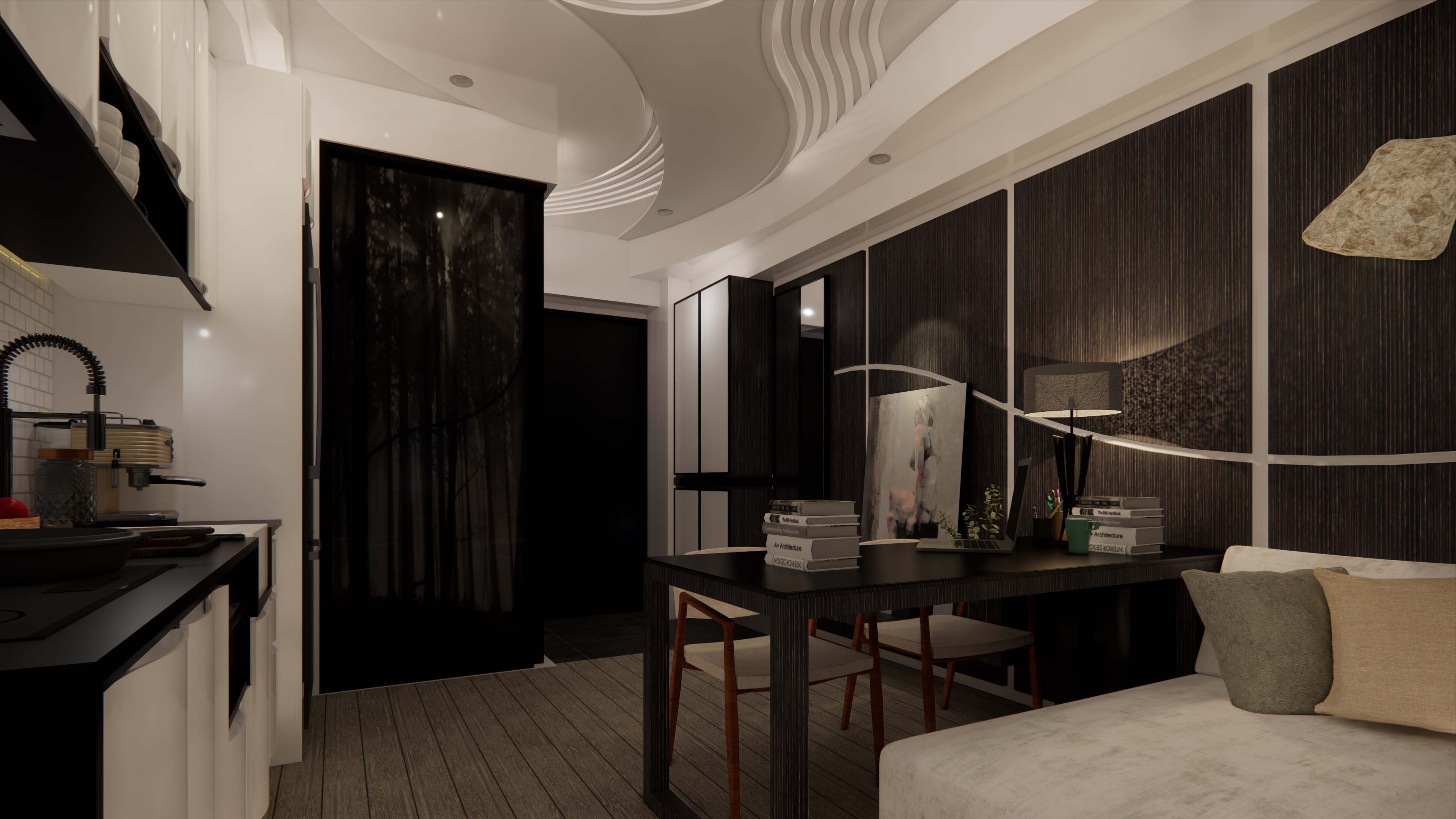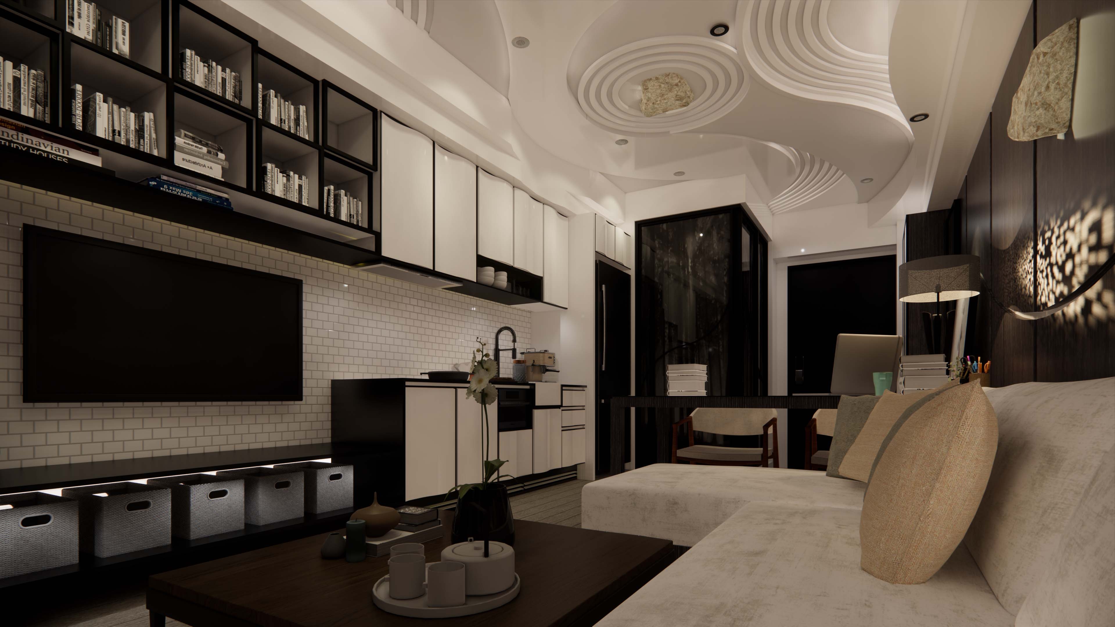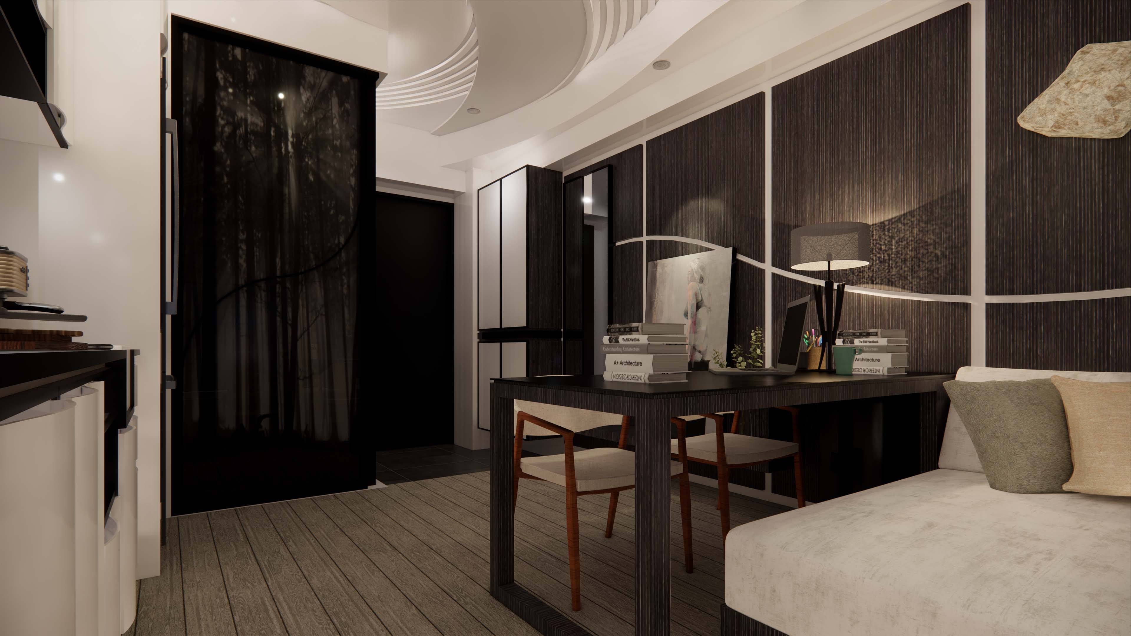 The artistic conception of Karesansui(Japanese Rock Garden) is not the exquisite beauty of ordinary Japanese gardens. Monks can stare and meditate nearby in the indoors. In this miniature world constructed by the concept, it combines with nature to design the situation of Karesansui as the theme.