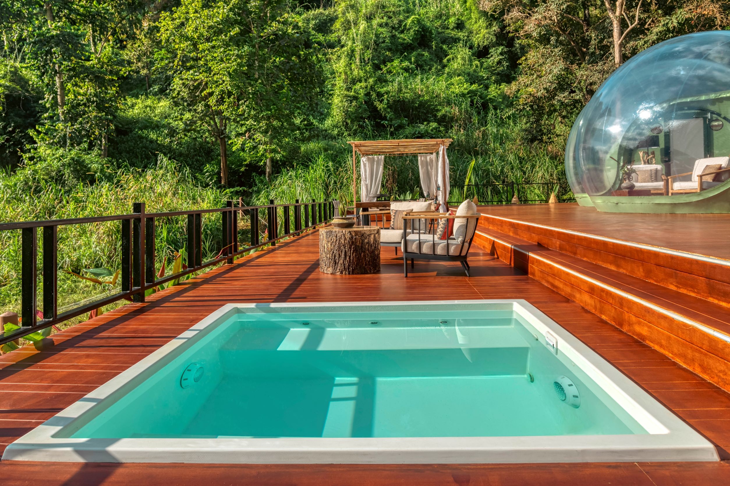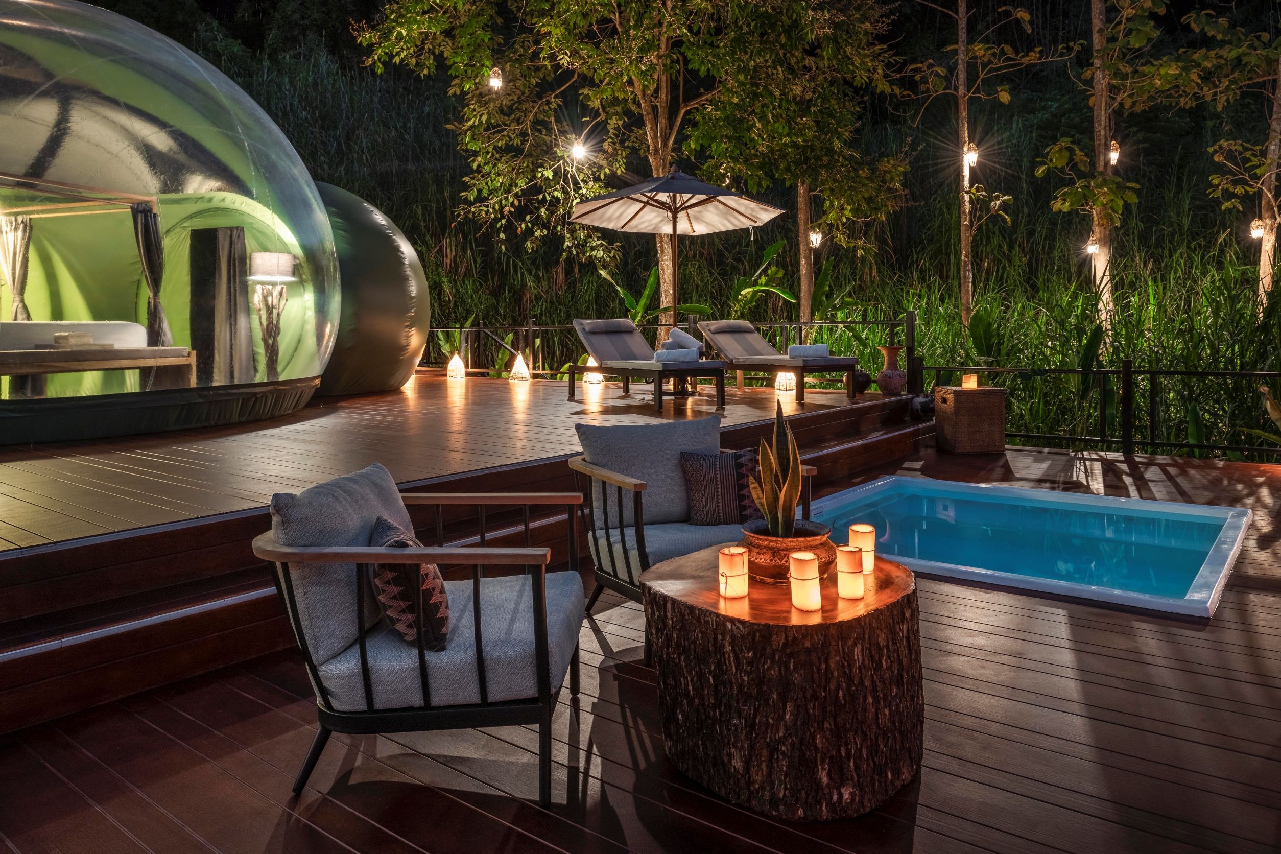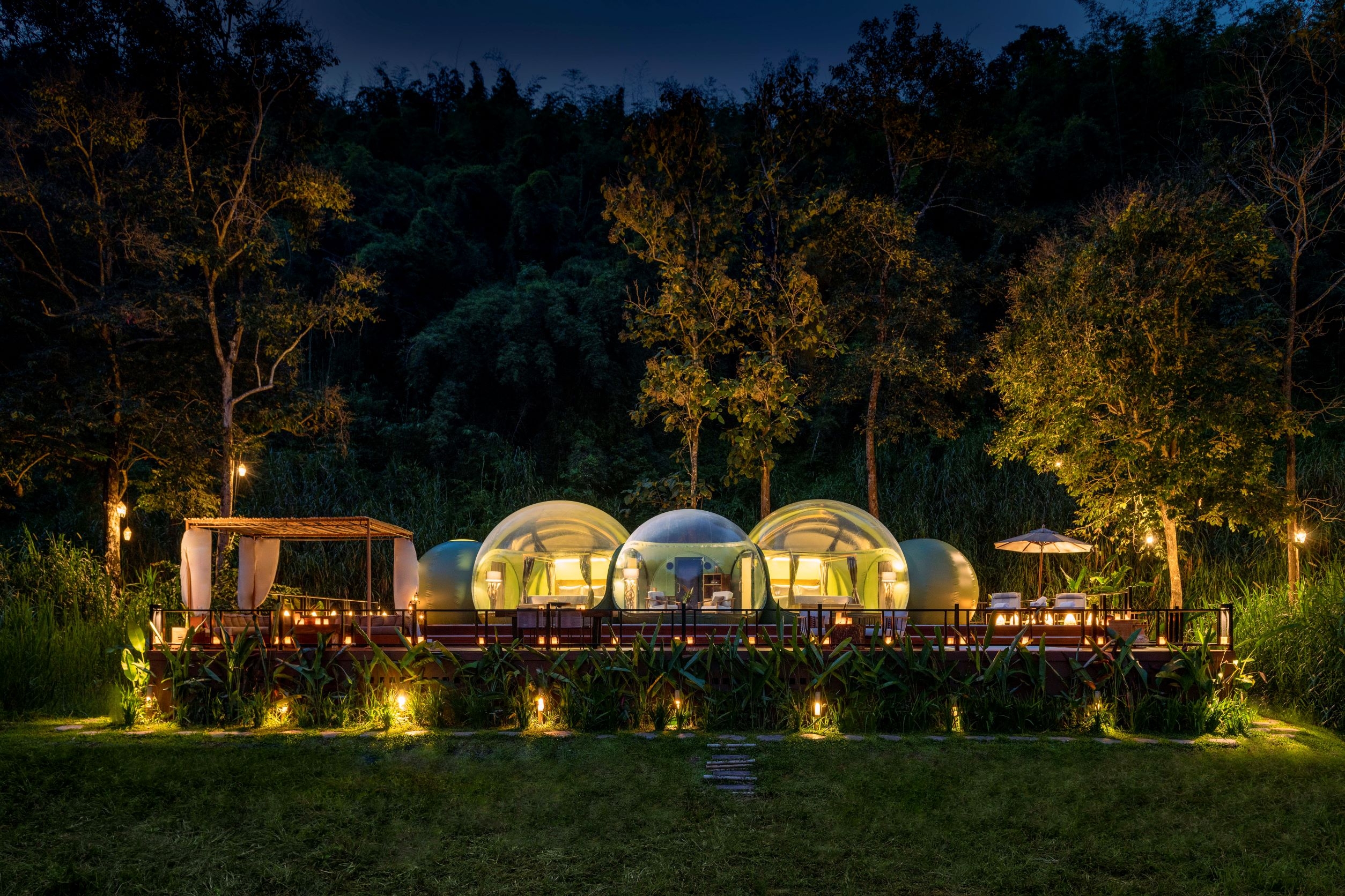 Guests at Anantara Golden Triangle Elephant Camp & Resort can spend the night observing Thailand’s majestic elephants in their natural habitat while staying in a unique transparent two-bedroom Jungle Bubble Lodge.