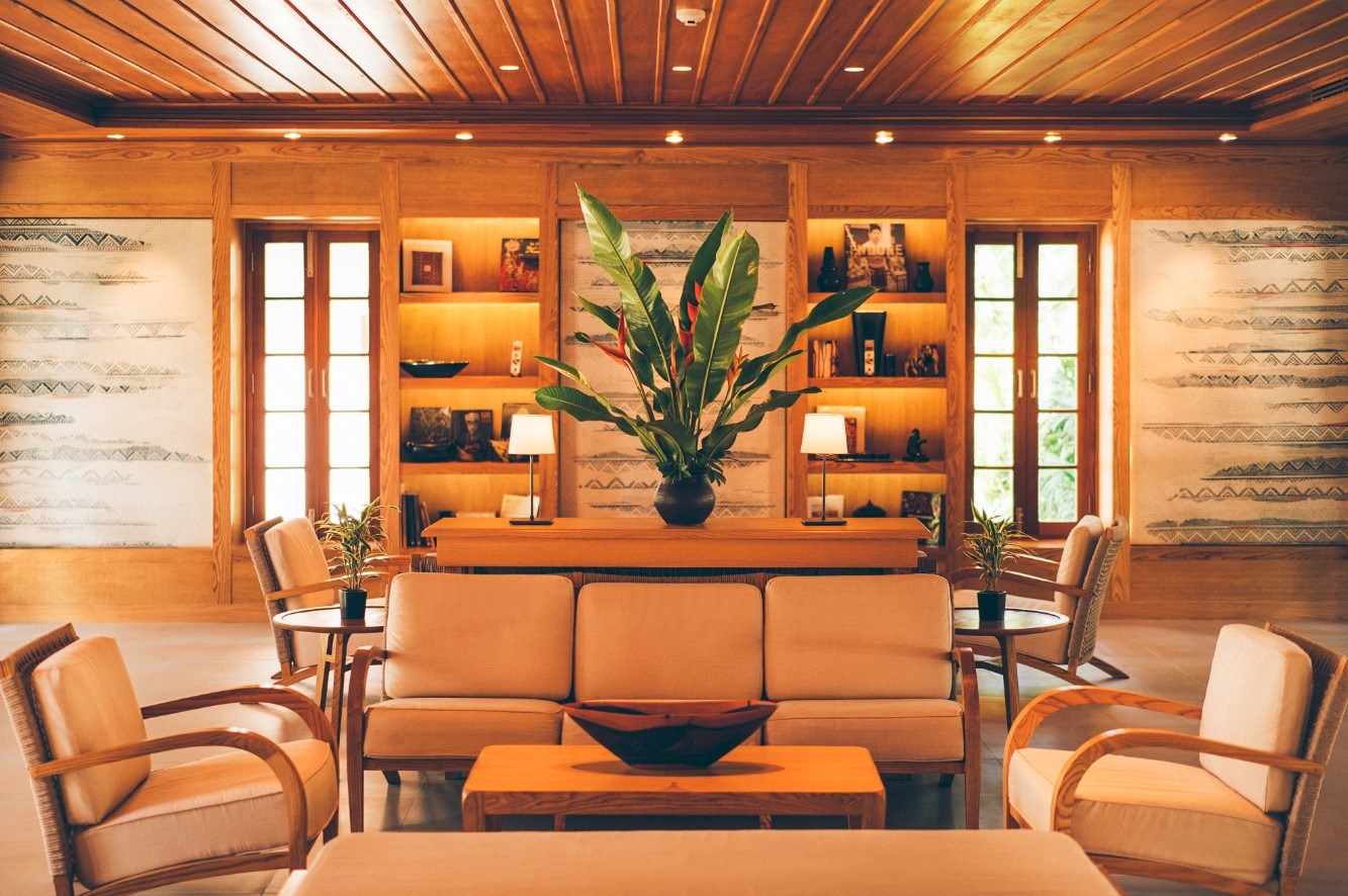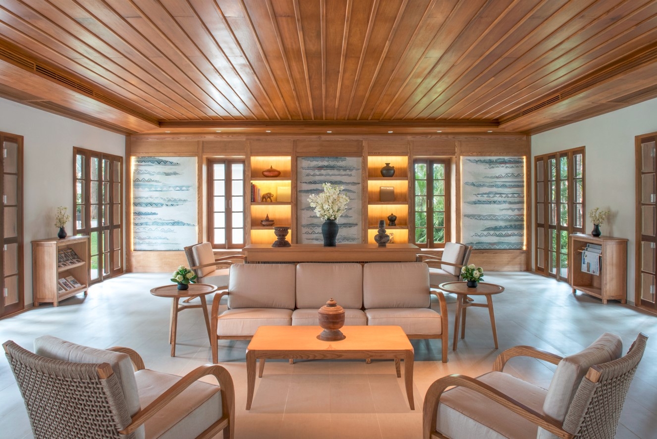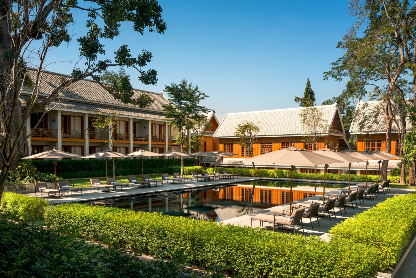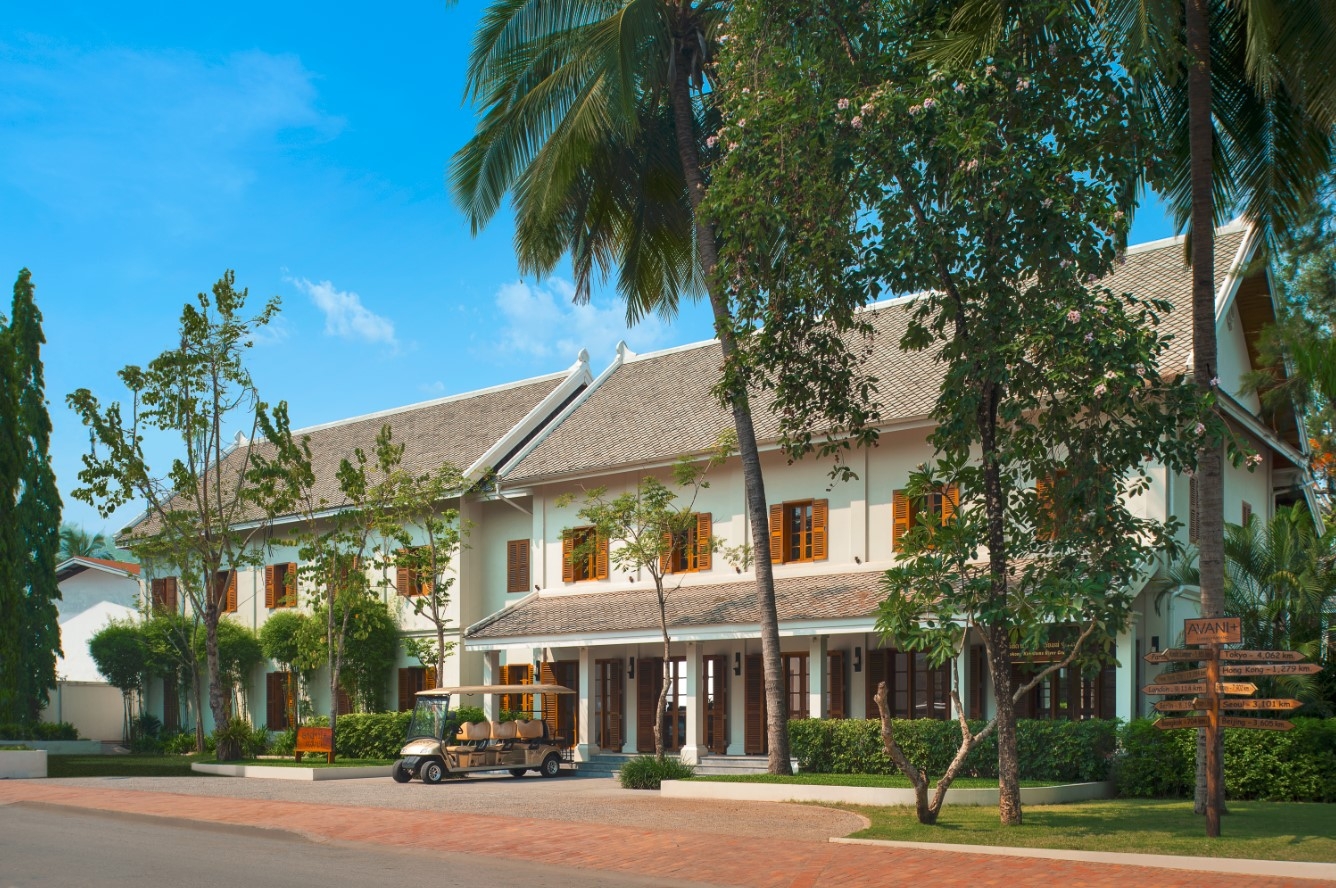 What makes this project stand out is the architect’s desire to ensure complete harmony, not only with the town, but also with nature. At the centre of this hotel is an ancient Banyan tree. It has been lovingly preserved and stands proudly by the 82-foot swimming pool, its deep roots undisturbed. Although new trees have been added to the neat courtyards and walkways that span the property’s 2.5-acre enclave, this has been done to compliment, rather than replace, the existing flora and fauna. This sentiment is echoed throughout with heritage at the forefront. Instead of fencing or high brick walls, low plants and shrubs have been used to border the property, almost bowing in welcome to guests and passersby. The design cleverly allows privacy, whilst maintaining an openness and strong connection to the neighbourhood. Culturally, this is of great importance as it allows guests to offer alms to the orange-robed monks who ritualistically pass by. The building itself is converted from a bungalow built as French officer quarters in 1914. Maintaining the authenticity of the UNESCO Heritage Town, it has wrap-around verandas, high ceilings and a symmetrical design, typical of the era.