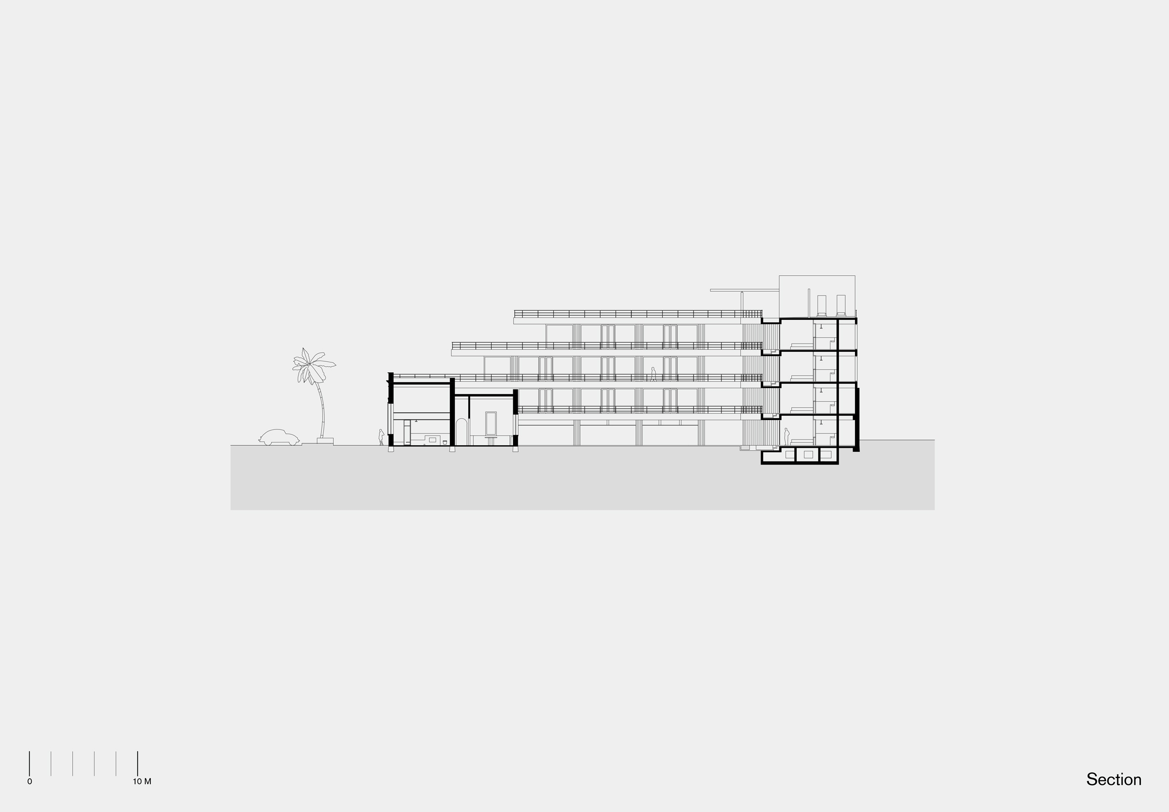 The tiered massing of the extension reduces its visual bulk and provides generous terraces enjoying panoramic views of the Bay of La Paz, once the setting of John Steinbeck’s novel The Pearl.