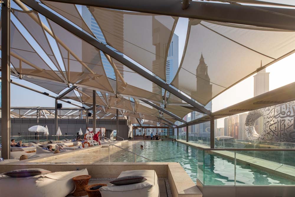 The design team, led by Hopkins who have been working extensively in the region for over 20 years, worked collaboratively with the client throughout the process, to develop a bespoke and contextual project from concept to fit out. Visiting other 25hours Hotels in Europe they immersed themselves in the company’s culture and ethos, evolving the original 4 star brief into a 5 star hotel which combines architecture, identity and brand to create a vibrant new offer, unlike anything else in Dubai.