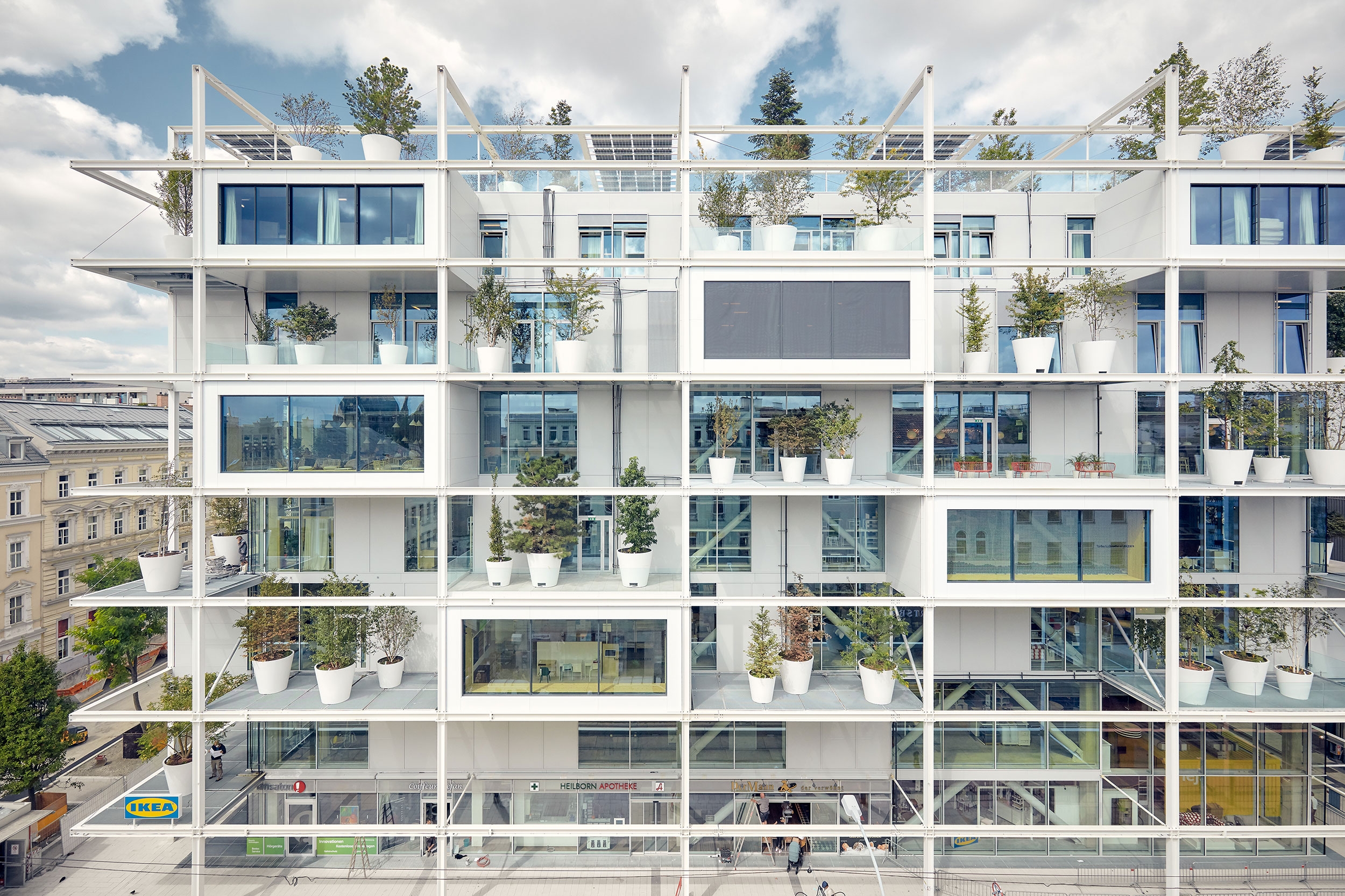 The hostel is placed in a special building, which makes it additionally outstanding. It's on the top levels of the city IKEA store at the Viennese Western Station. About 160 trees are planted on the external grid of the building and on the public roof terrace. All the rooms of the hostel offer green view and/or a great view above the city too.