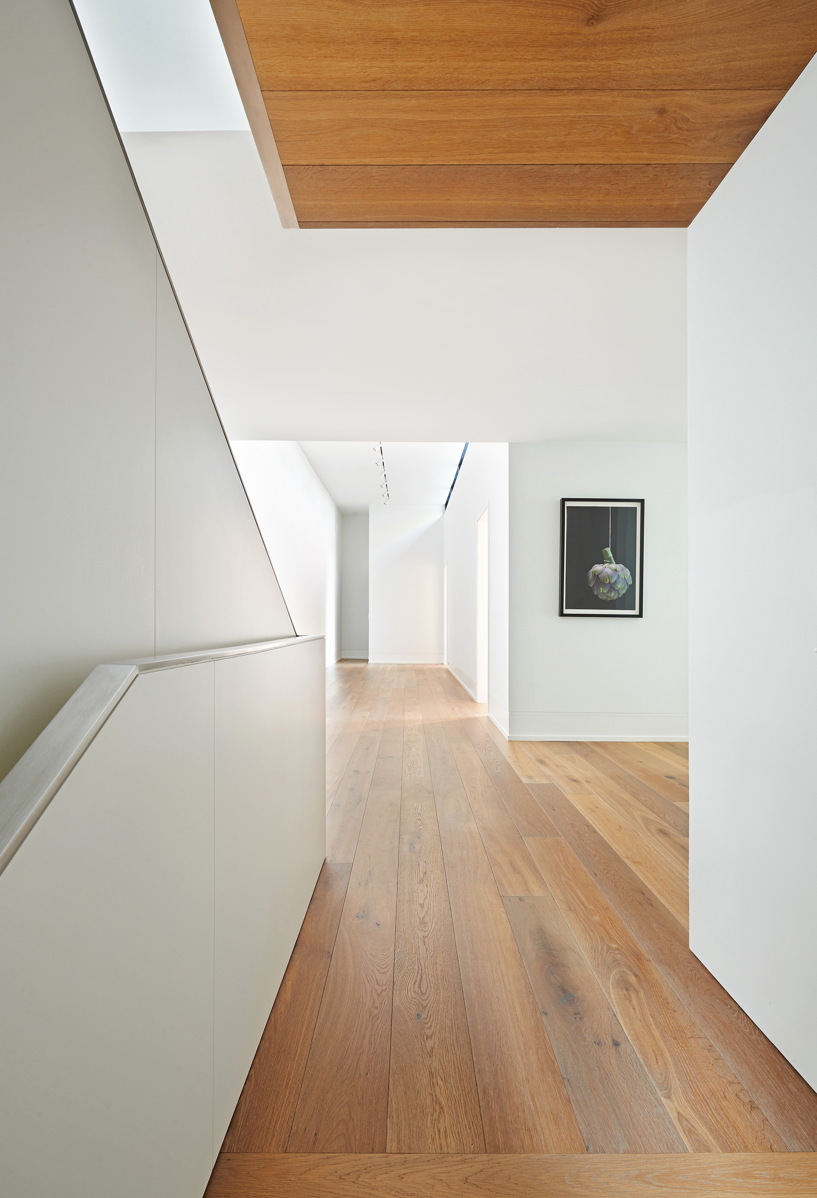 Hosting multi generations, the design accommodates modern living. The second floor features a gallery where clerestory windows provide diffuse light for artwork. The third floor, fondly known as the treehouse, captures a large cottonwood tree in full view.