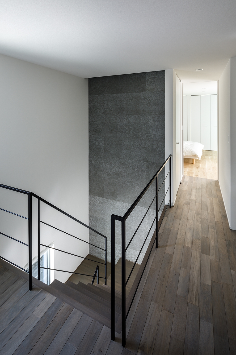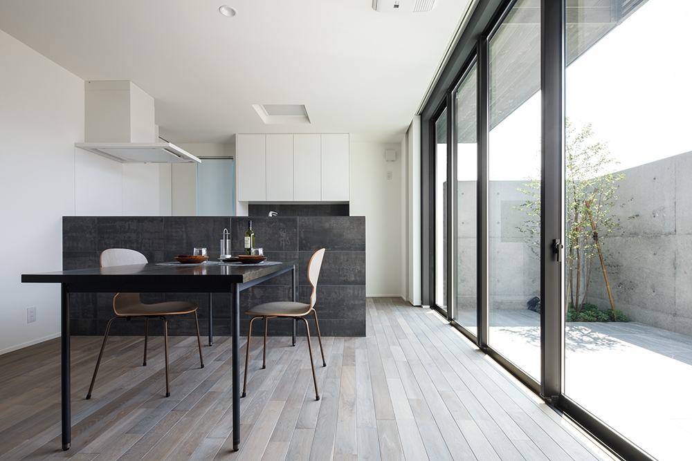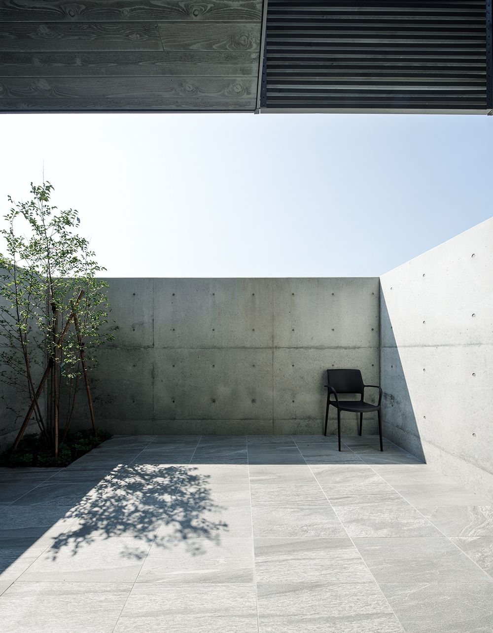 On the first floor, we created a courtyard surrounded by a concrete wall.