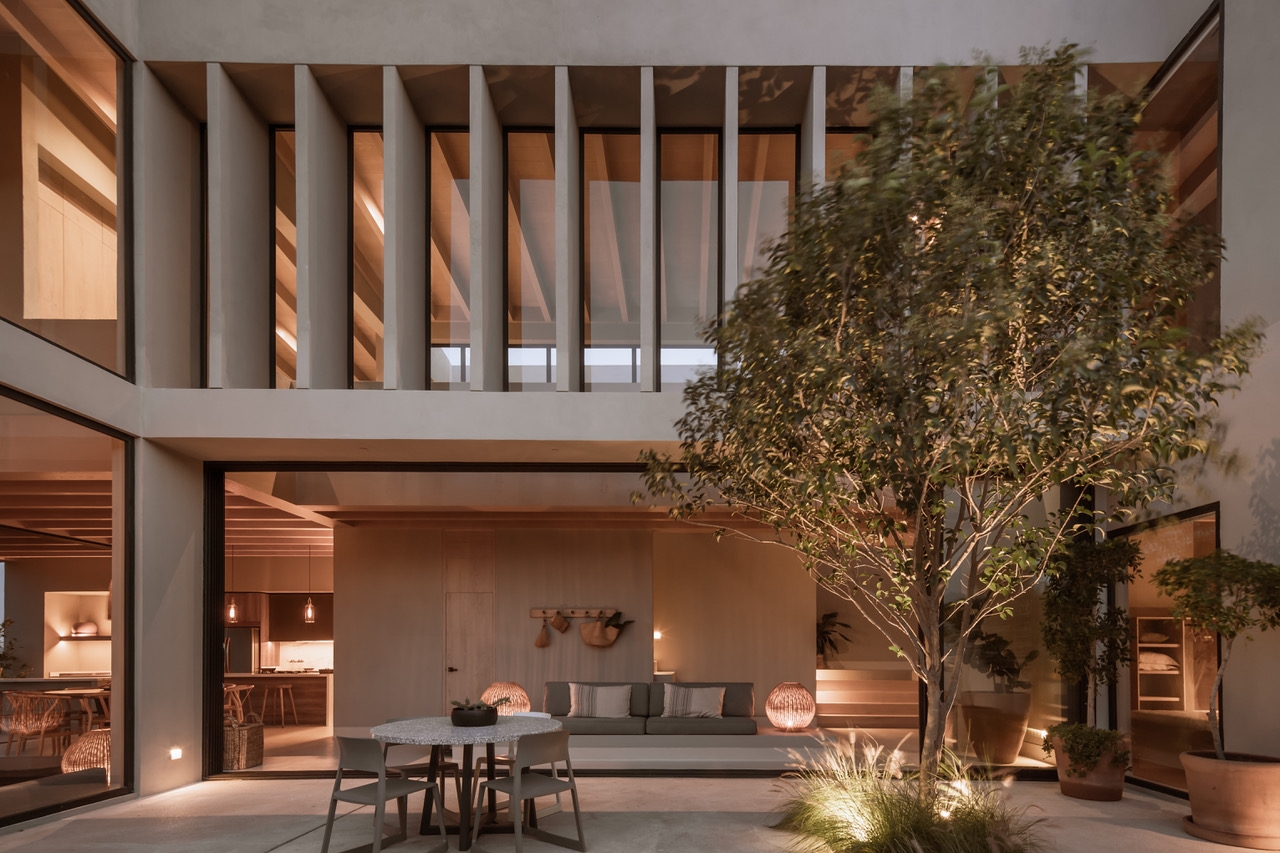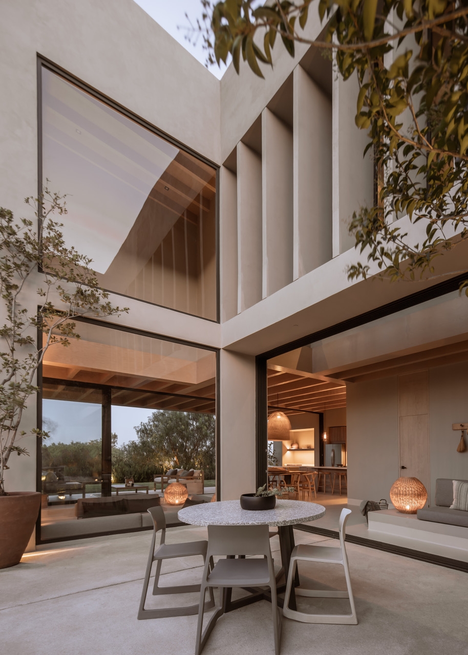 Casa Camelia is projected under the premise of having a weekend house that would have all the essential elements that, in our experience, these recreation spaces should have, so that the entire house can literally be opened towards its four coordinates, generating entrances of very important light and air, with views of the golf course and green areas that surround us. The finishes in this house are sustainably low-maintenance and we use mostly native and neighboring regions, with neutral colors, natural textures and friendly to restful coexistence.
