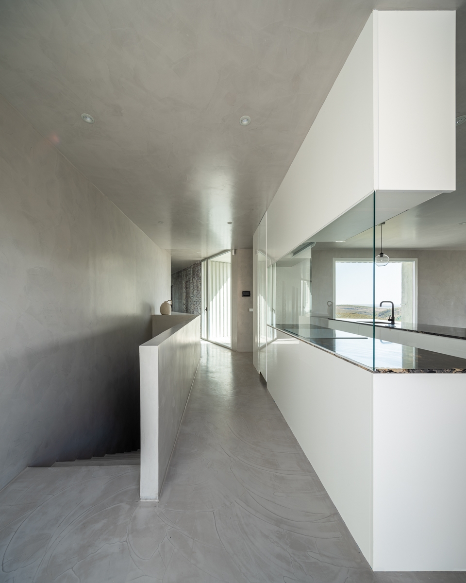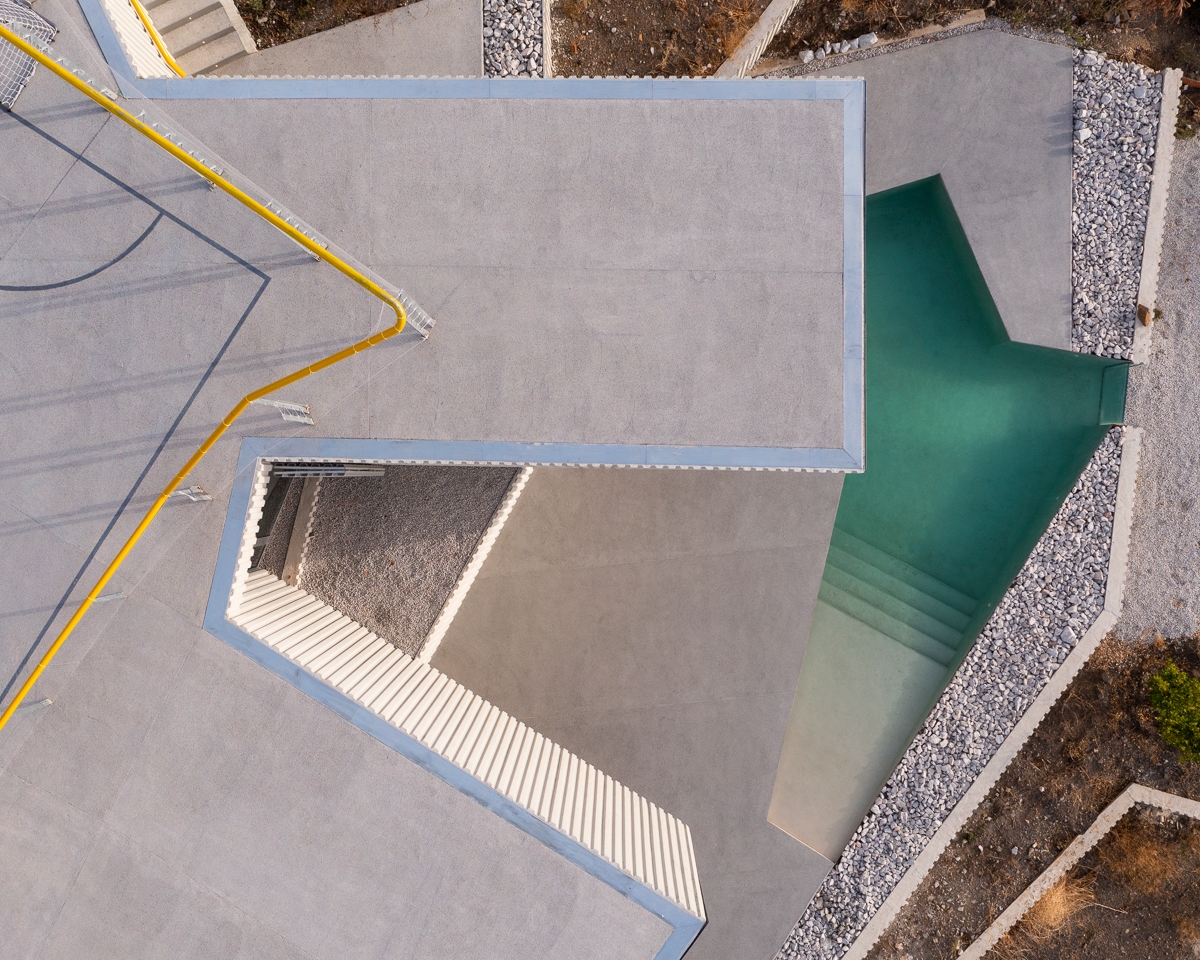 The requirement of a large outdoor space and a preferably separate sports court converts the project into a sequence of retaining walls and terraces to make horizontal platforms possible, between which there are two interior habitable levels. The upper one, more dedicated to the cold seasons, houses the fireplace and is more exposed to the sun, and the lower one, for the summer periods, is sheltered within the ground and opens up to the views and to the pool space protected in all its op
