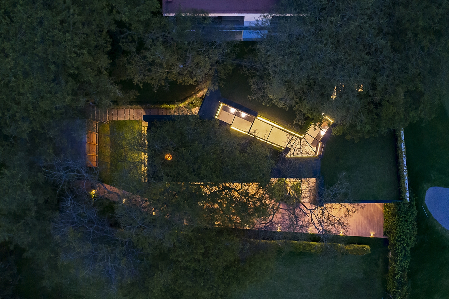 The project is developed by molding the geometry and positioning itself among some pre-existing endemic trees. Respect for nature and the mimetic location produce a symbiotic harmonic space where users live in an ideal ecosystem. Vegetation and architecture merge and enhance each other, generating spatial relationships and unique sensory perceptions.