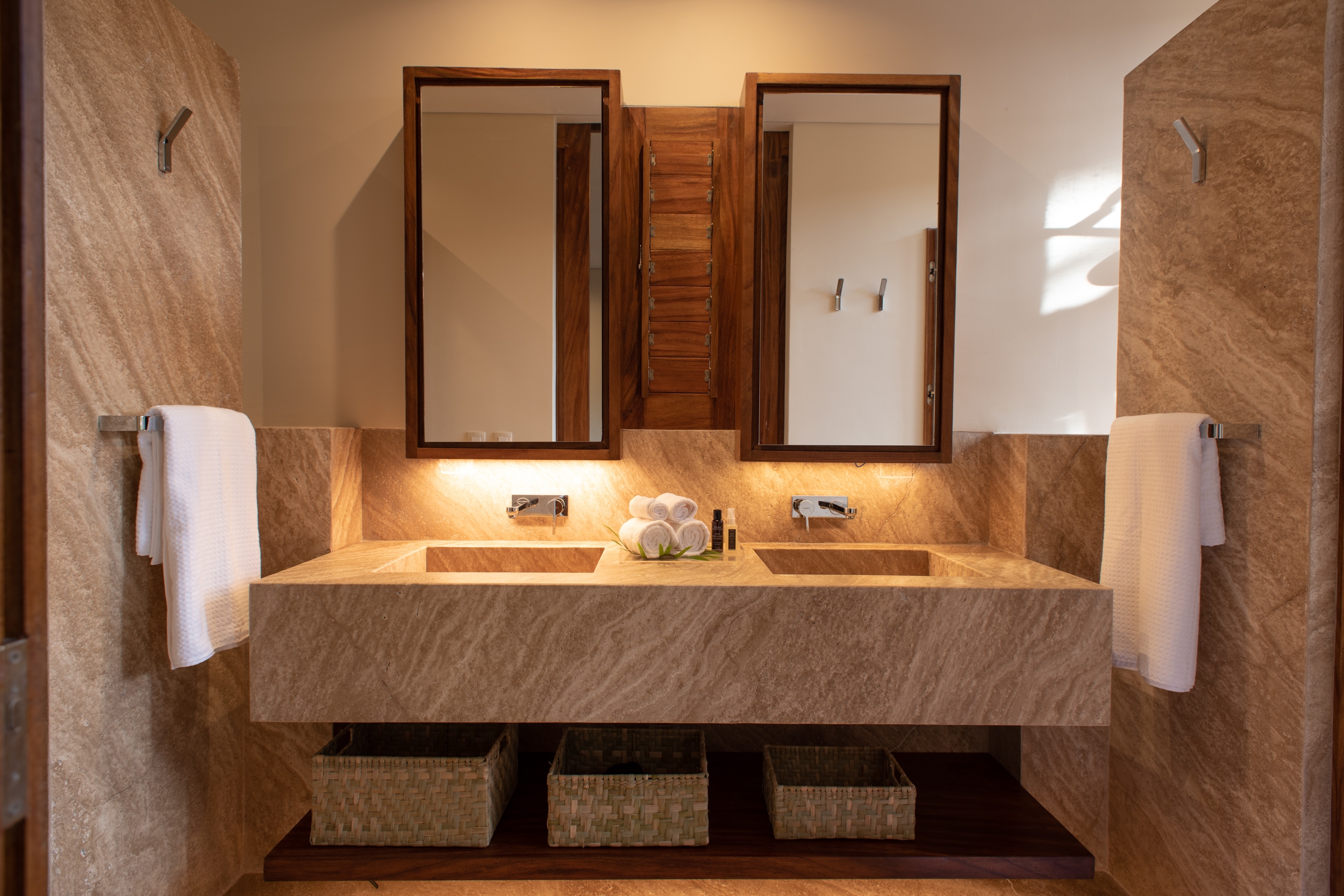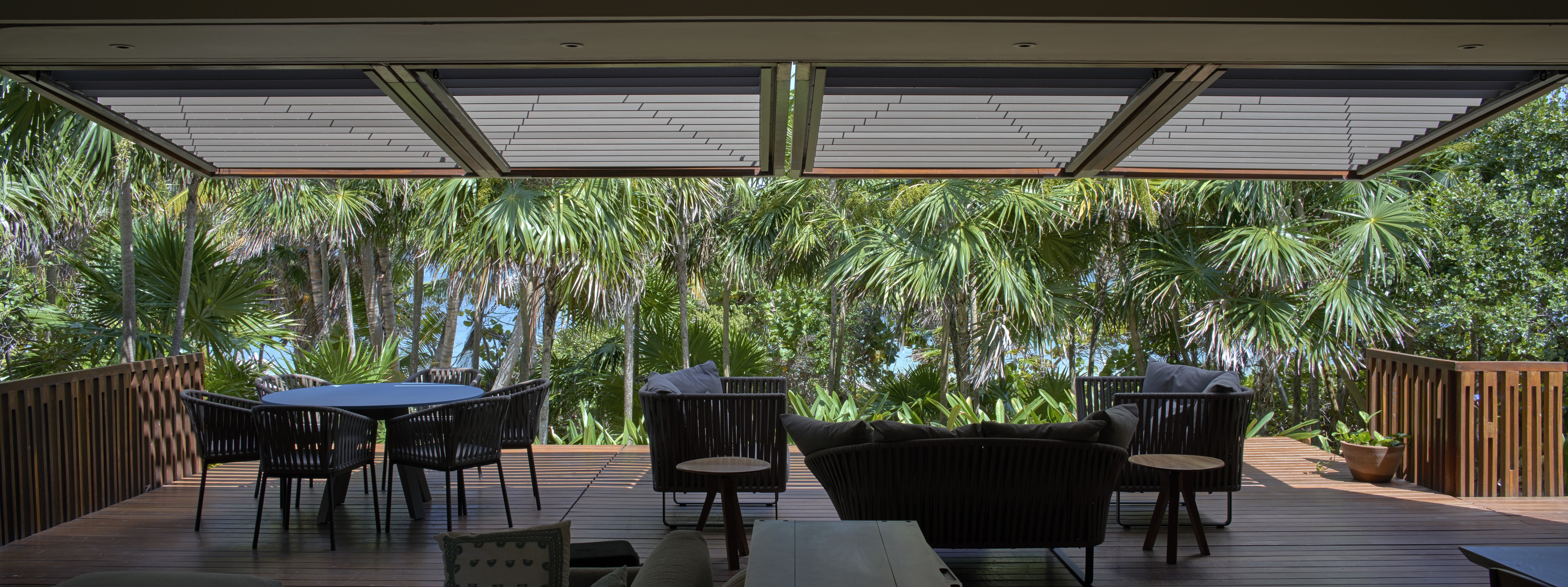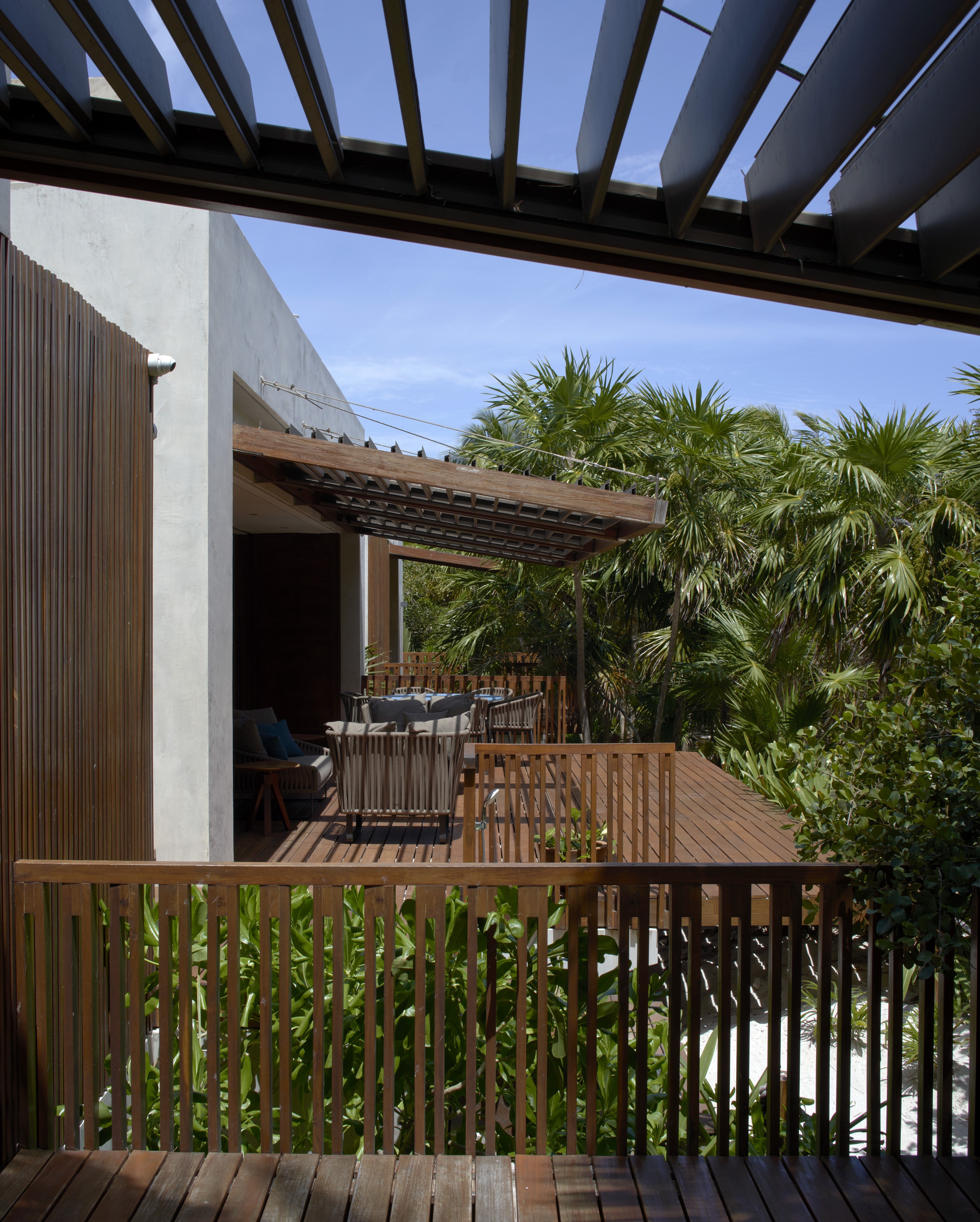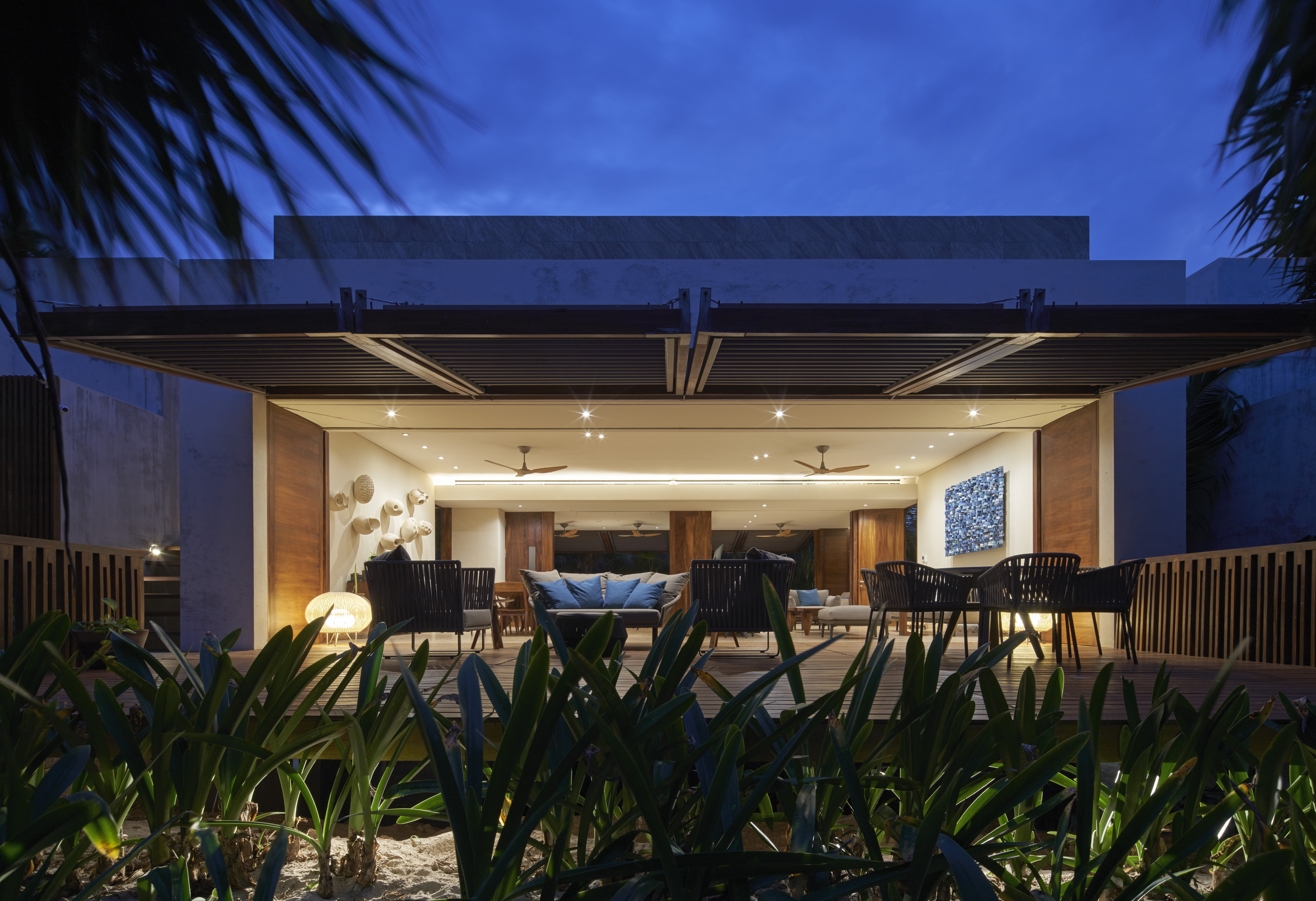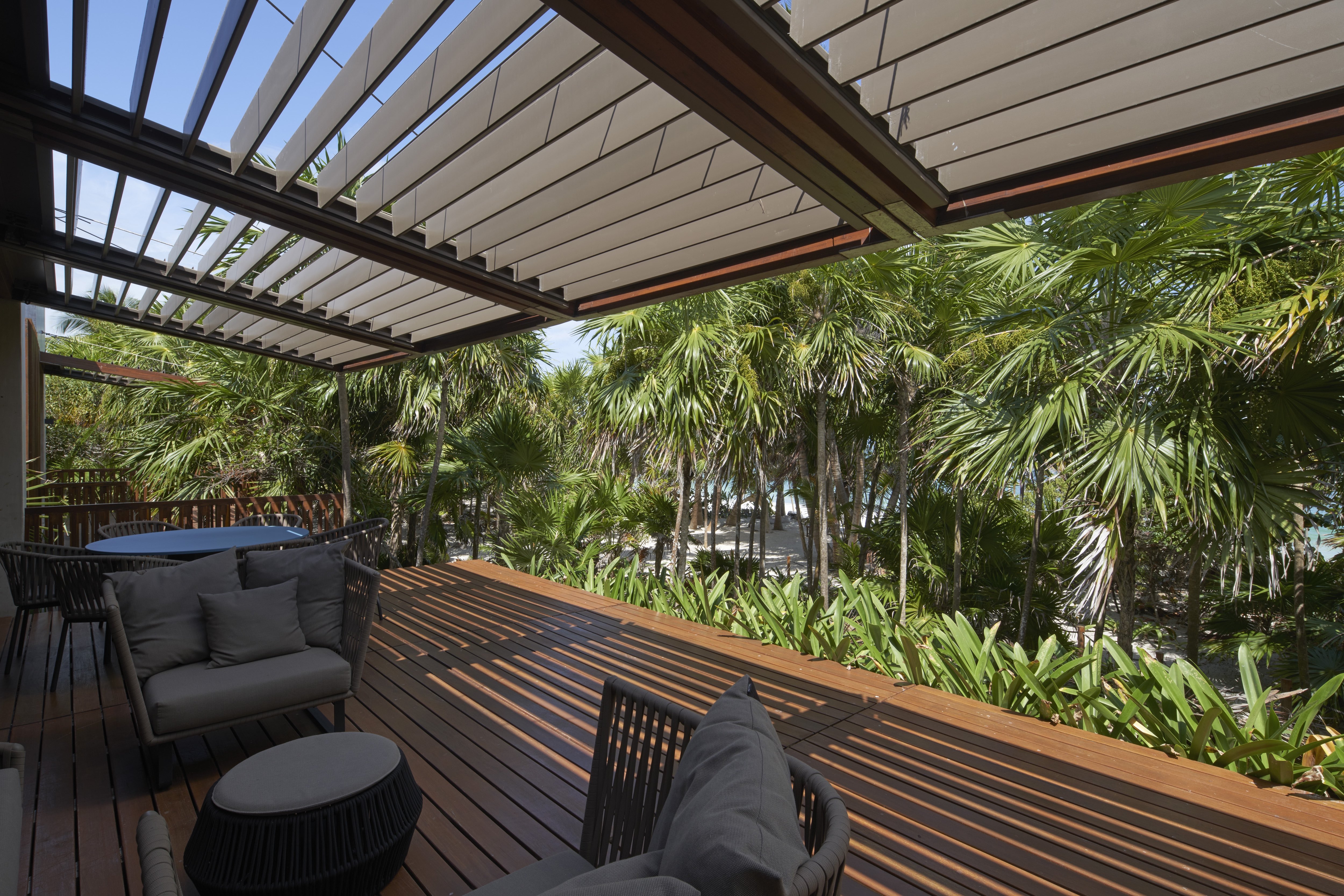 Nestled amidst the lush tranquility of Sian Ka'an Reserve lies Casa Uh K'aay, a beach retreat of grandeur and grace. Designed to embody high-end hospitality, its symmetry invites one to bask in the comfort of two master and two junior suites that sit gracefully either side of a central living abode. Raised aloft amidst the rustling palms and tropical trees, this haven seems to float upon the gentle sea breeze. Decks of wooden majesty stretch forth from each room, inviting one to fully immerse in the lush vegetation that surrounds. A rooftop terrace of breathtaking beauty awaits, offering views unrivaled - of the sea, jungle and the estuary that lies beyond. In adherence with the strict, low-density regulations, this property spans 2 hectares with a mere 400 sq mts of construction and 100 meters of beachfront. As the Reserve lies untouched by the conveniences of electricity and fresh water, the dwelling was crafted with self-sustenance in mind. Solar panels and wind turbines generate power, stored in a battery bank for use, while rainwater from the roof is captured and stored in tanks below. A harmonious blend of luxury and eco-consciousness, Casa Uh K'aay is a true gem.