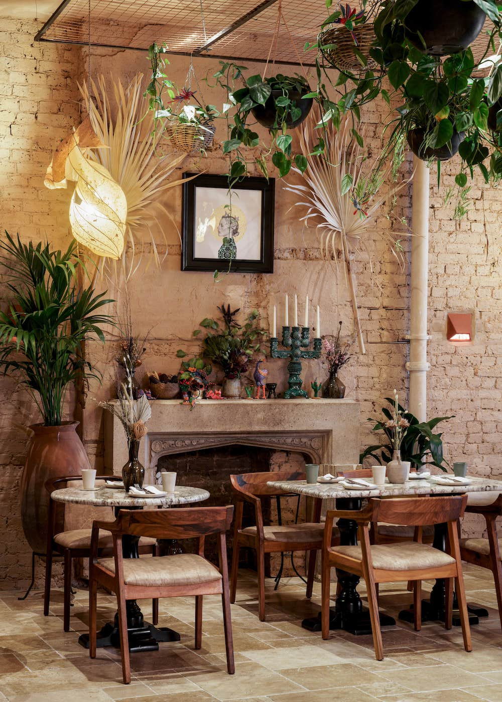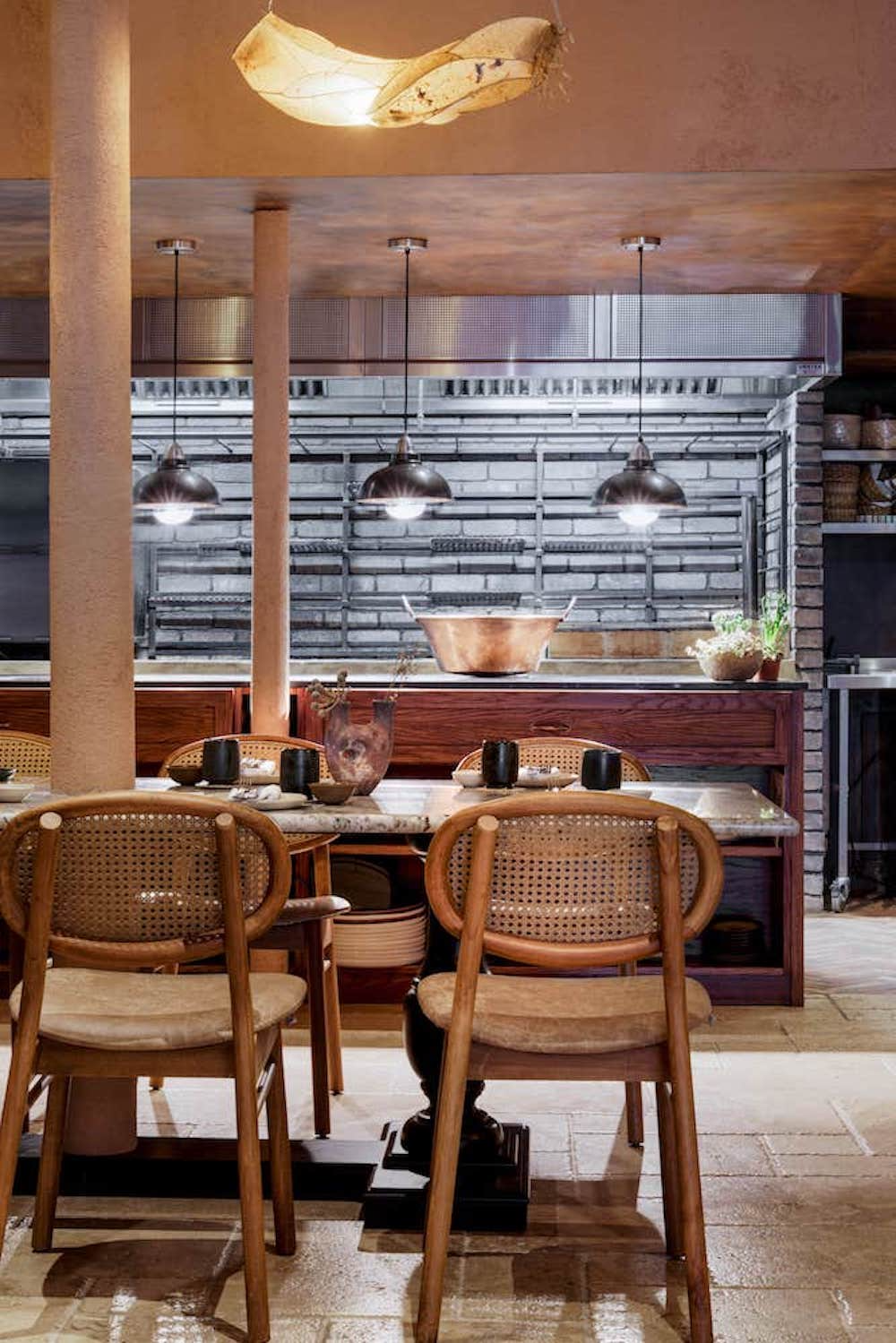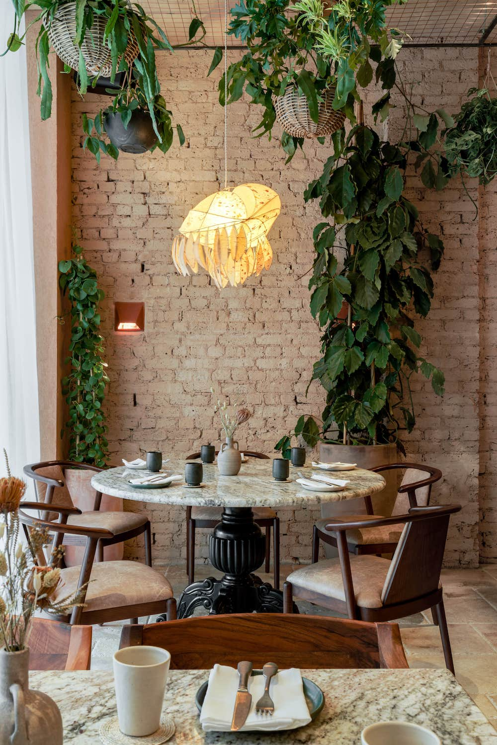 Cavita had to look under-designed, welcoming, and lived-in while feeling unique and sophisticated due to its Central London location. The search for suitable materials and suppliers was extensive; they had to be as sustainable as possible, with products that highlight the beauty of natural materials. Over 30 different items have been sourced from vintage or bespoke suppliers including hand carved sinks, bricks from India and KA Iluminacion, a small producer in Oaxaca, who we commissioned to create Cavita's lamps. The 8 different lamp designs represent some of the chef's meaningful things, for instance, the heart tattoo on her arm, cocoa fruit, and the agave plant.
