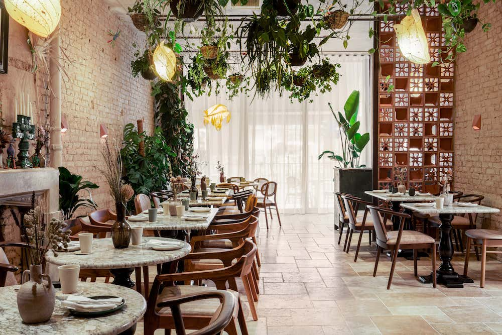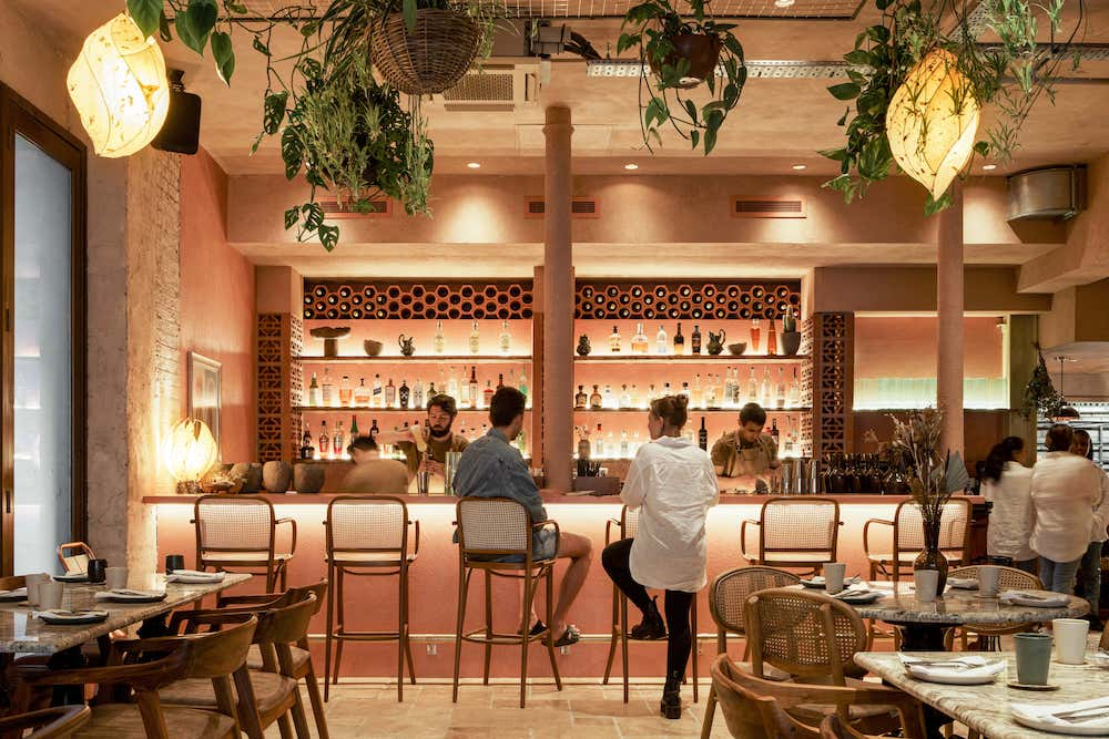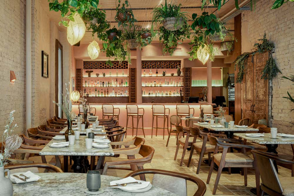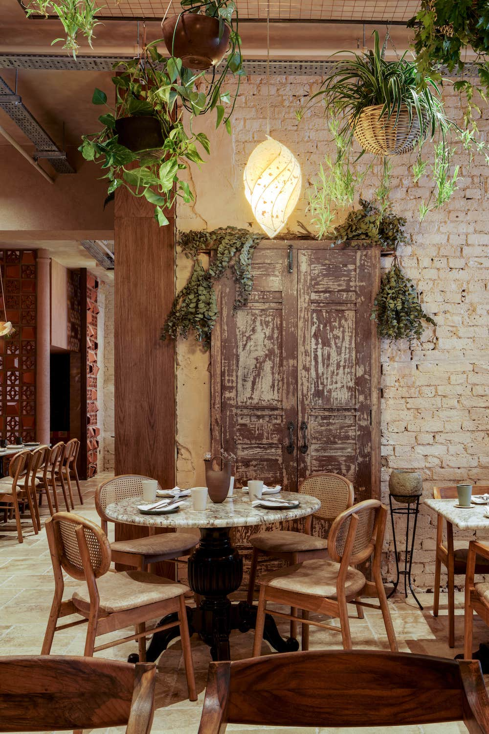 Cavita had to look under-designed, welcoming, and lived-in while feeling unique and sophisticated due to its Central London location. The search for suitable materials and suppliers was extensive; they had to be as sustainable as possible, with products that highlight the beauty of natural materials. Over 30 different items have been sourced from vintage or bespoke suppliers including hand carved sinks, bricks from India and KA Iluminacion, a small producer in Oaxaca, who we commissioned to create Cavita's lamps. The 8 different lamp designs represent some of the chef's meaningful things, for instance, the heart tattoo on her arm, cocoa fruit, and the agave plant.