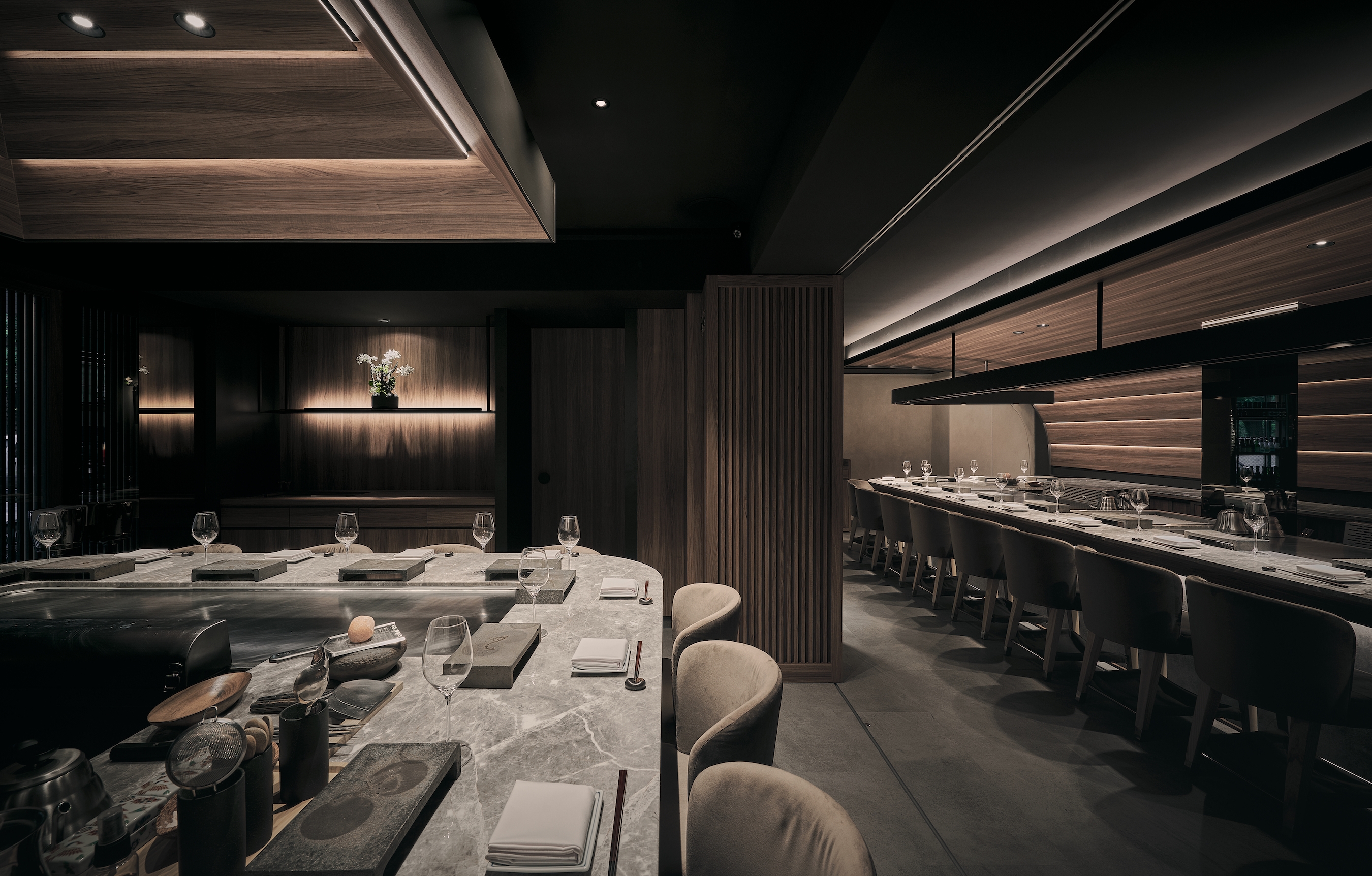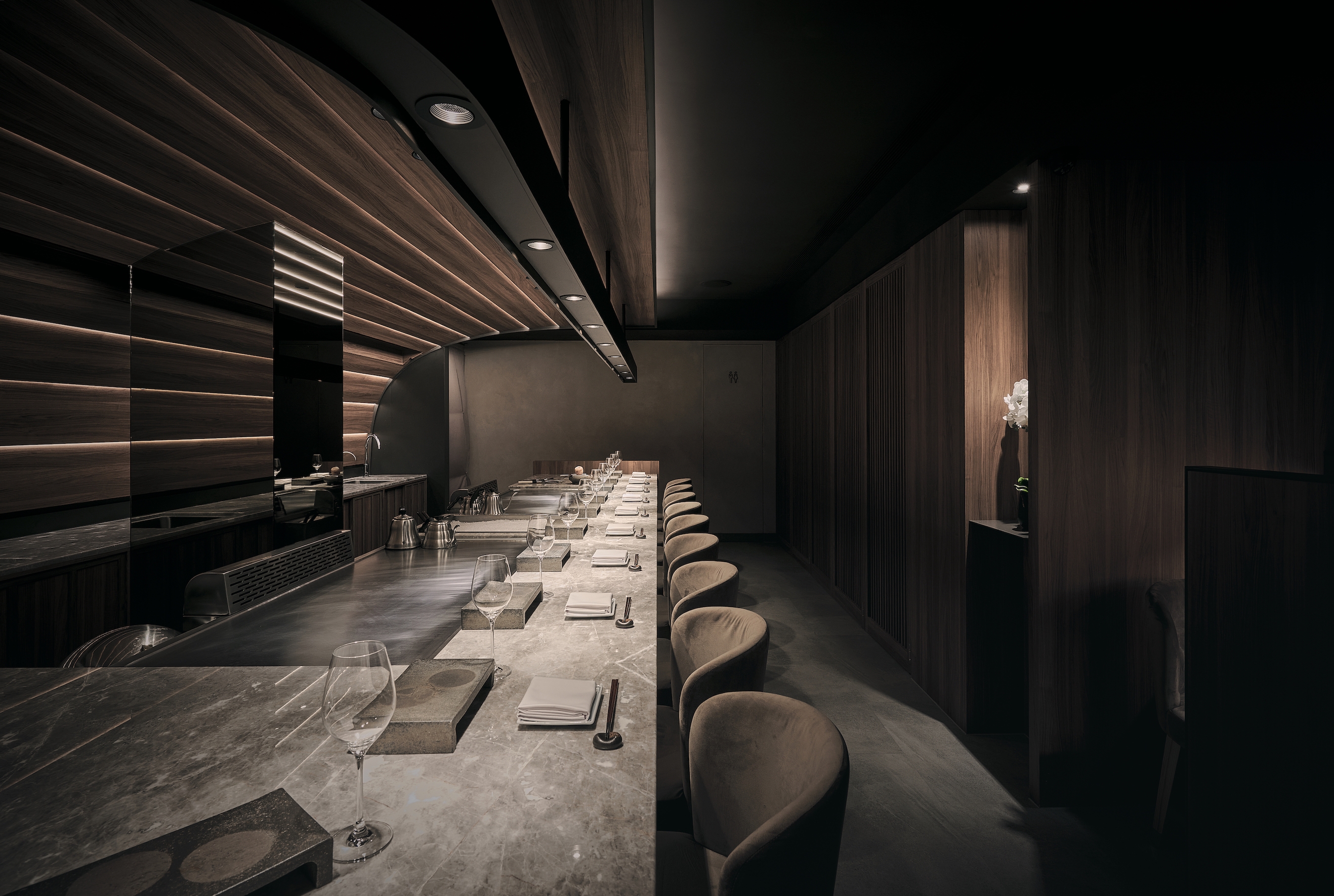 Lighting is focused on the visual height, with the table position as the focal point, leading patrons to immerse their five senses in the culinary feast from the visual.