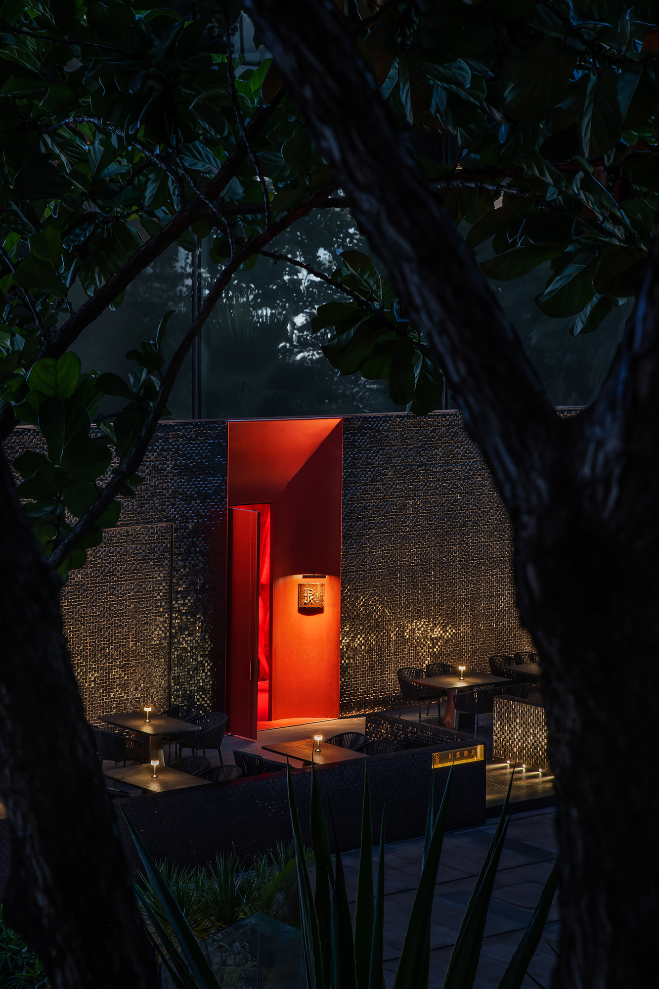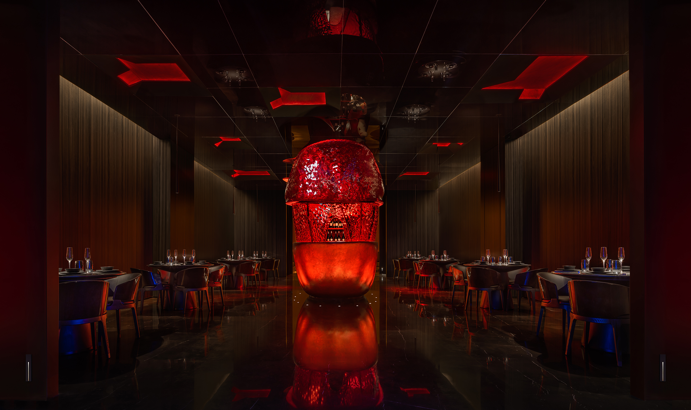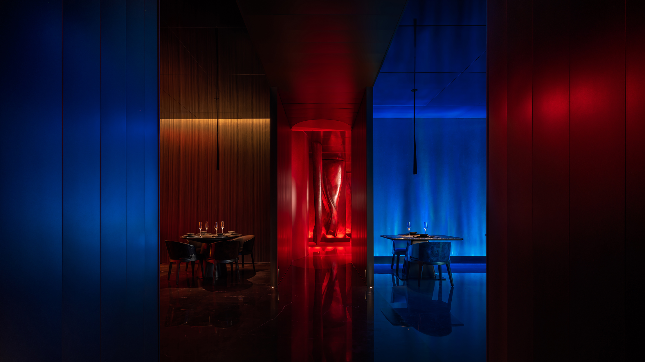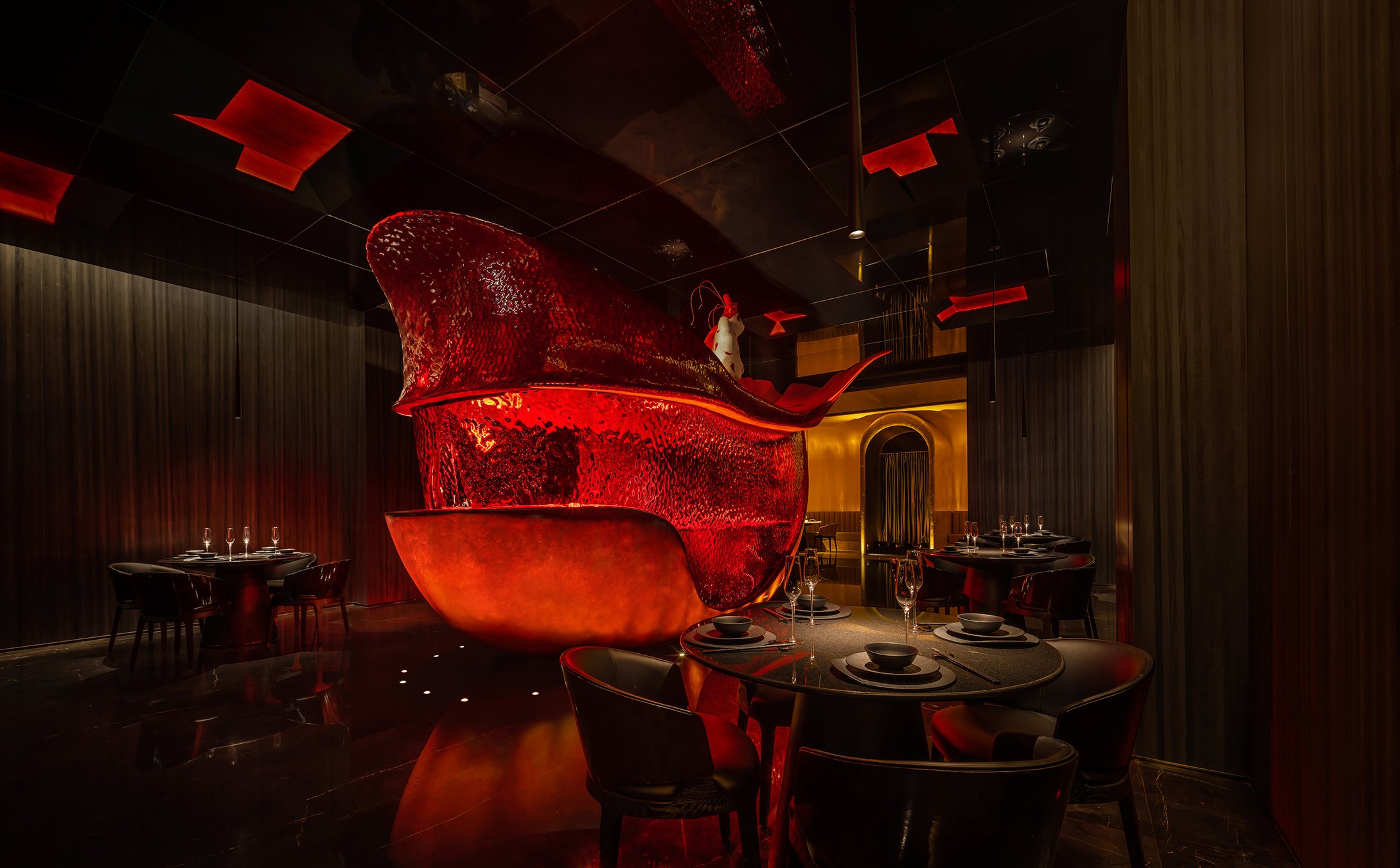 This is a leisure social "art museum" that can eat during the day and drink wine at night, which aims to create a leisure and relaxing artistic social place. The restaurant looks like a black "magic box". The restaurant uses the names and colors of tequila sunrise, black cherry, blue margarita and sunset martini as the theme and character of each dining area. The design is inspired by Chinese culture: the face of Sichuan Opera, the artistic treasure of Sichuan Opera, this restaurant is full of "collision" and "possibility", there is a collision between Eastern and Western cultures and aesthetics, as well as ancient and modern cultural collisions. It collides with highly saturated red, blue and yellow, collides with traditional culture and modern needs, integrates Chinese Sichuan opera culture and panda characteristics into the design, and collides with western materials and oriental elements. Designers capture the innovative forms of contemporary art, design the original national trend IP with panda as the content, and transform regional characteristics, culture, craftsmanship and materials into a unique visual language.